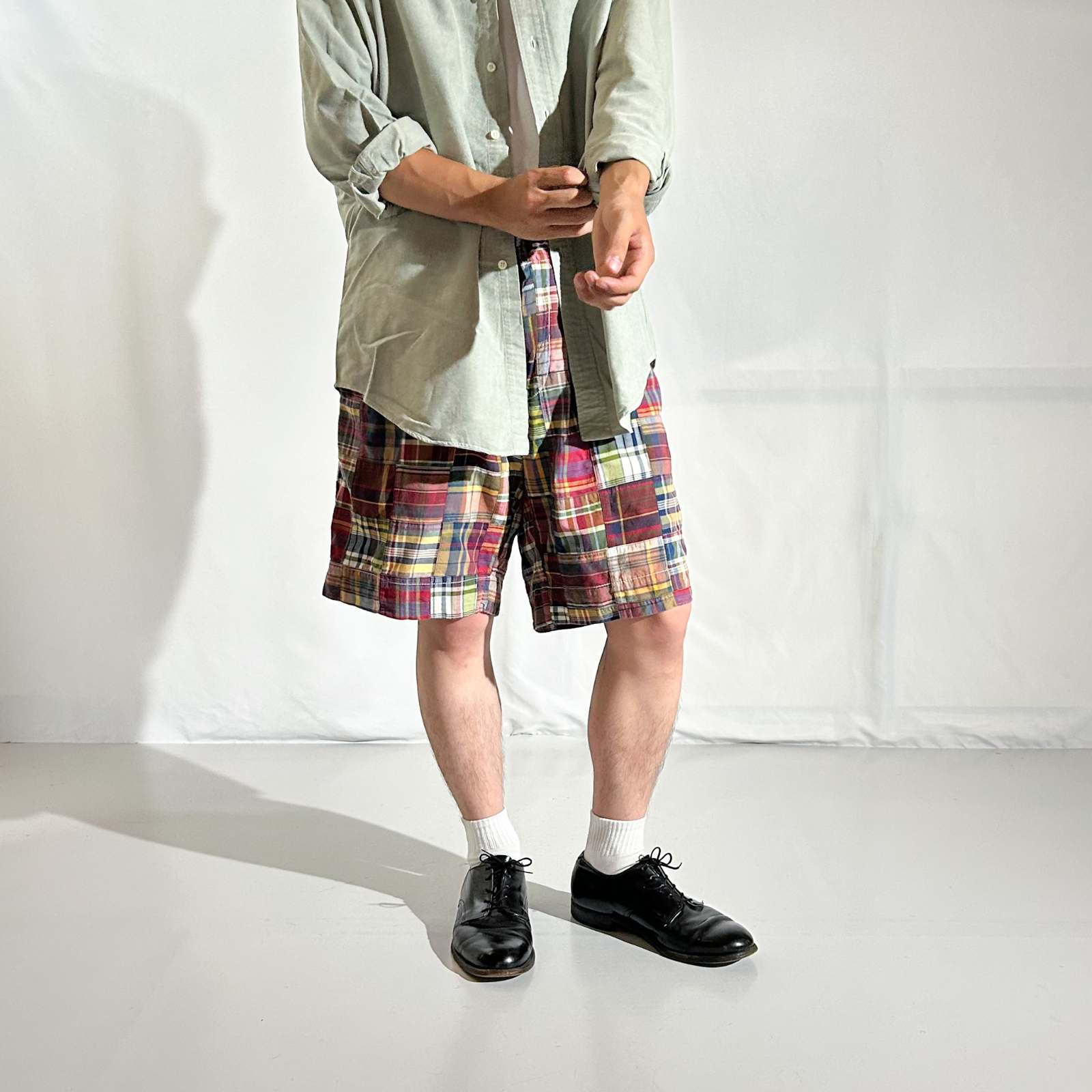 90's~ OLD RALPH LAUREN ドローコード パッチワーク マドラス ワイド ショーツ