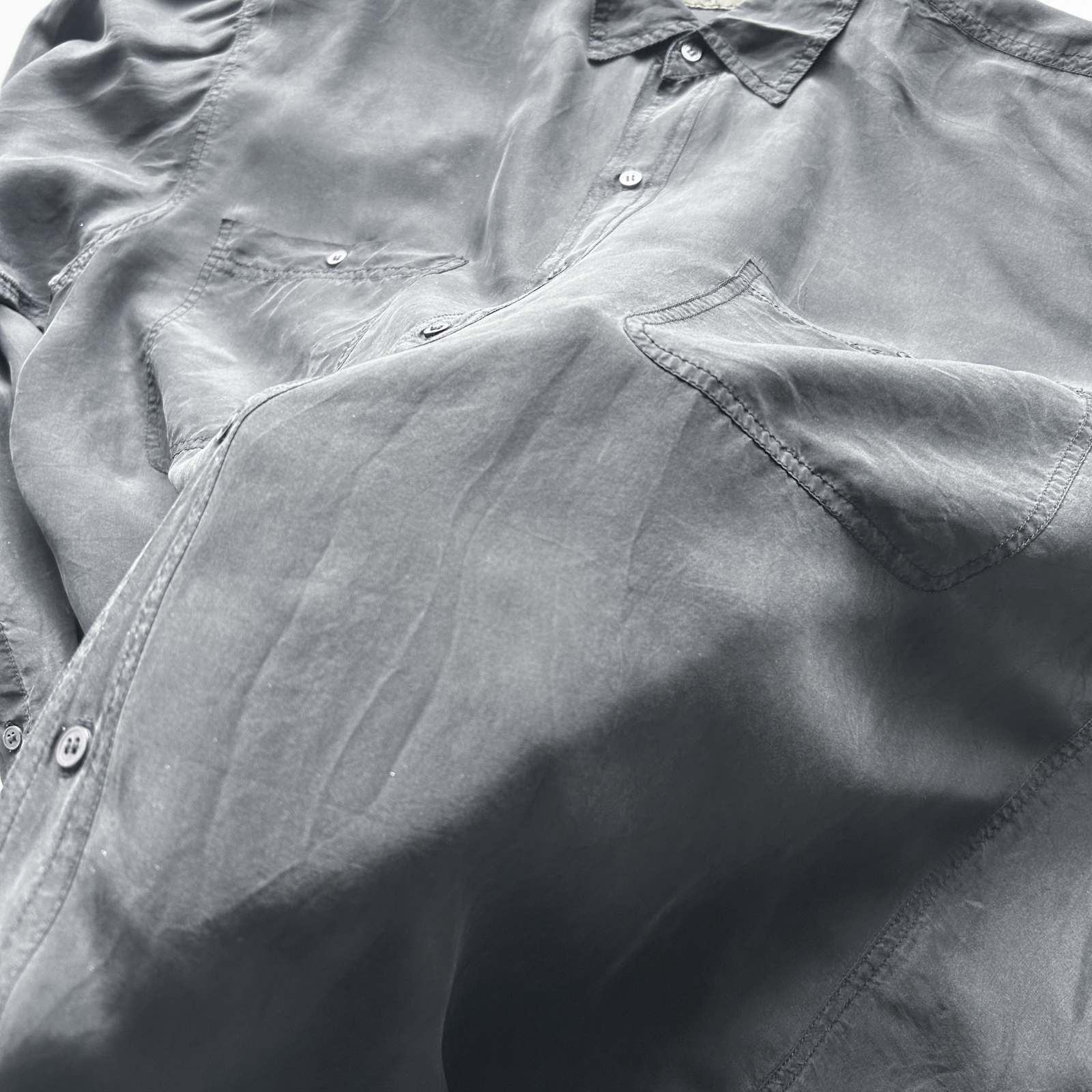 とろみのあるテロテロな質感が魅力のシルク100%シャツ。 こういった繊細な素材だとレディース仕様が多い中、これはしっかりメンズ開き(右前)なのが嬉しいポイント。 ワイドスラックスと合わせれば、モードな雰囲気にもハマる上品な一枚。 素材感で差をつけたい方、洗練されたスタイルに挑戦したい方におすすめです。