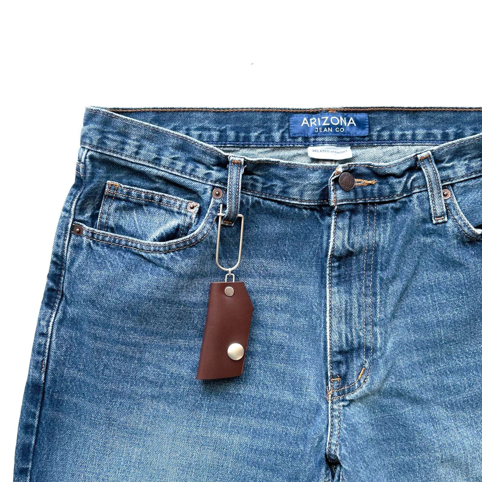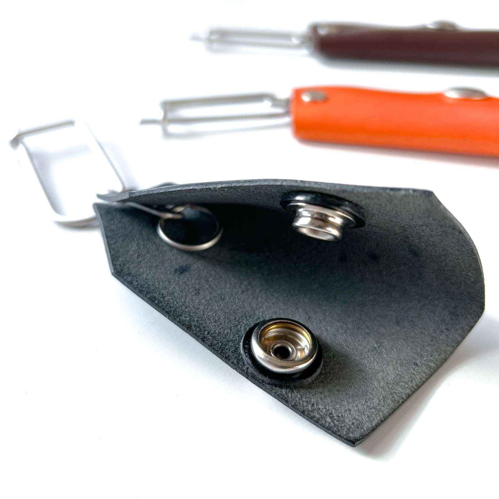 オリジナルフックでバッグやベルトループに引っ掛けられる仕様です。 内側には二重カンが1つ付き、鍵を最大3ヶ所に分けて収納できます。