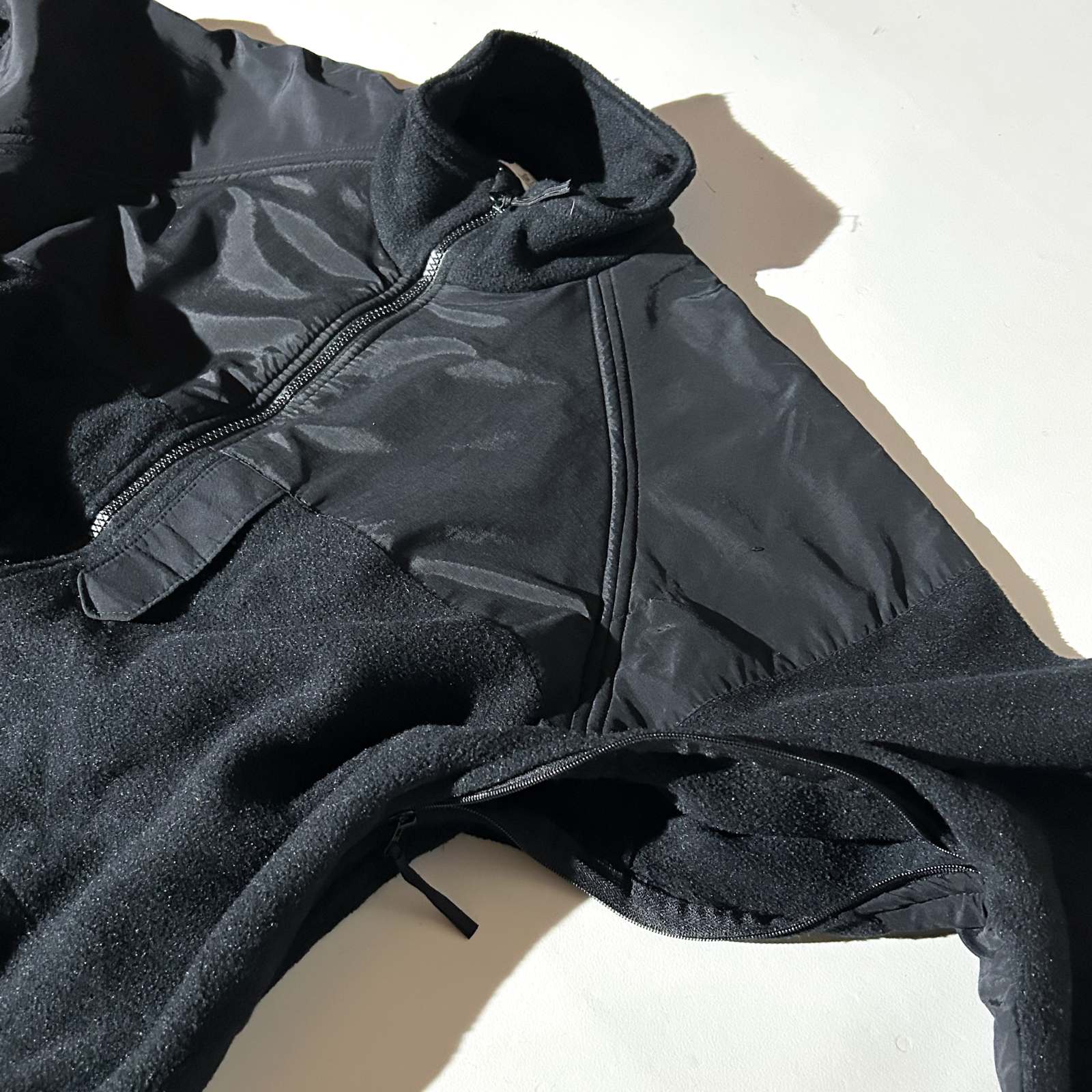 ECWCS GEN2 フリースジャケットになります。 ボディに採用される肉厚なフリースはPOLARTEC社を使用。摩擦が起きやすい肘や胸部がナイロンの切り替えになっており、ミドルレイヤーのフリースジャケットながら、単体のアウターとしても着られる完成度の高いジャケットです。GEN2フリースは、放出が極端に減りつつも、市場でのニーズはますます高く、手に入りにくくなっている実物ミリタリーのひとつです。こちらのU.S.NAVY仕様のGEN2フリースは全体のデザインはGEN2フリースに準拠しており、一見同じように見えますが一部のディテール(袖口のベルクロ部分、サイドのポケット、ダブルファスナー)が外されており、よりシンプルなデザインが特徴です。