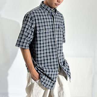 00's Carhartt オックスフォード チェック ボタンダウン S/Sシャツ(ブルー)