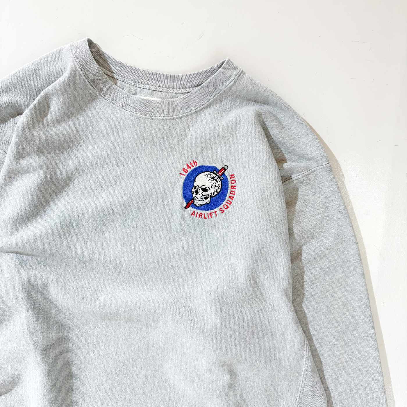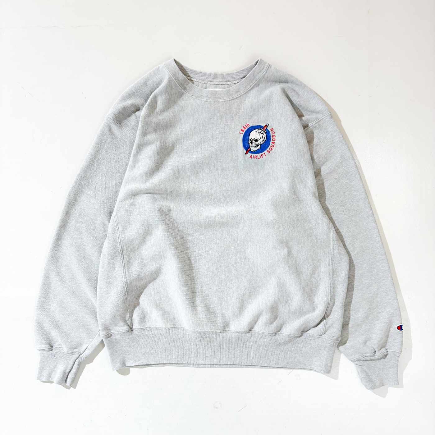 00年代 チャンピオン プレミアムリバースウィーブ 骸骨 刺繍 グレー 灰色 クルーネック アメカジ