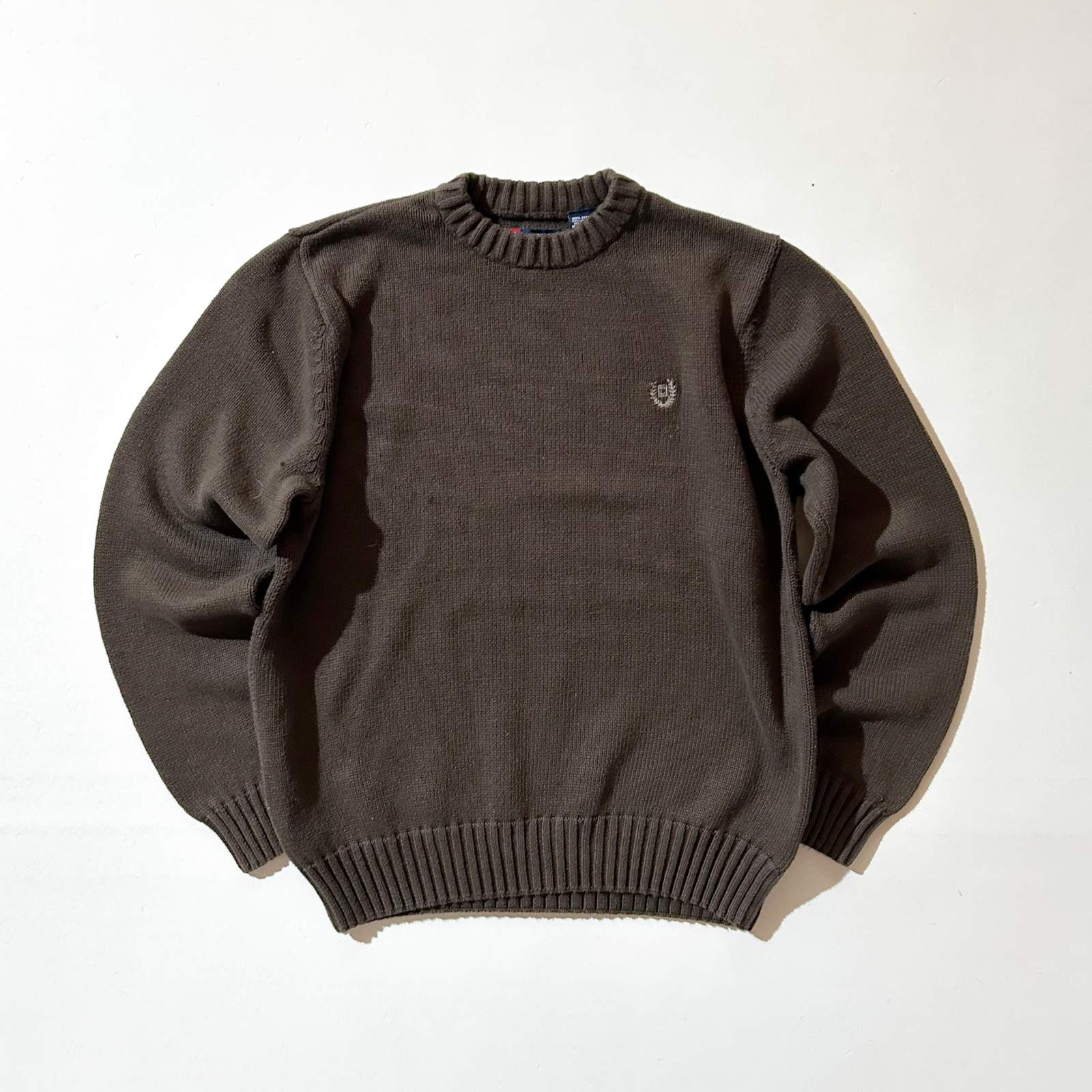 00's CHAPS ブラウン ワンポイント コットン ニット セーター