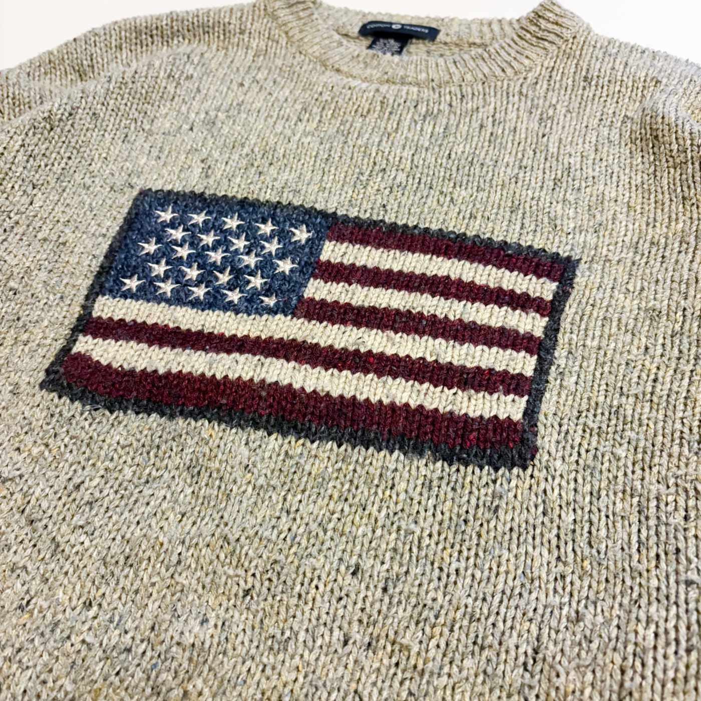 00's COTTON TRADERS 星条旗 ラミー×ウール ニット セーター