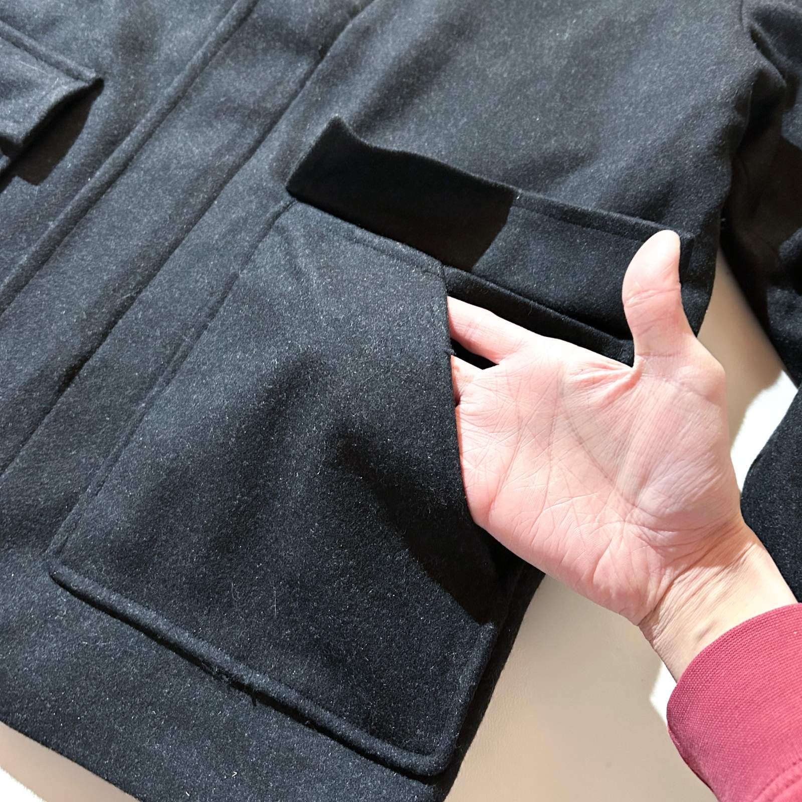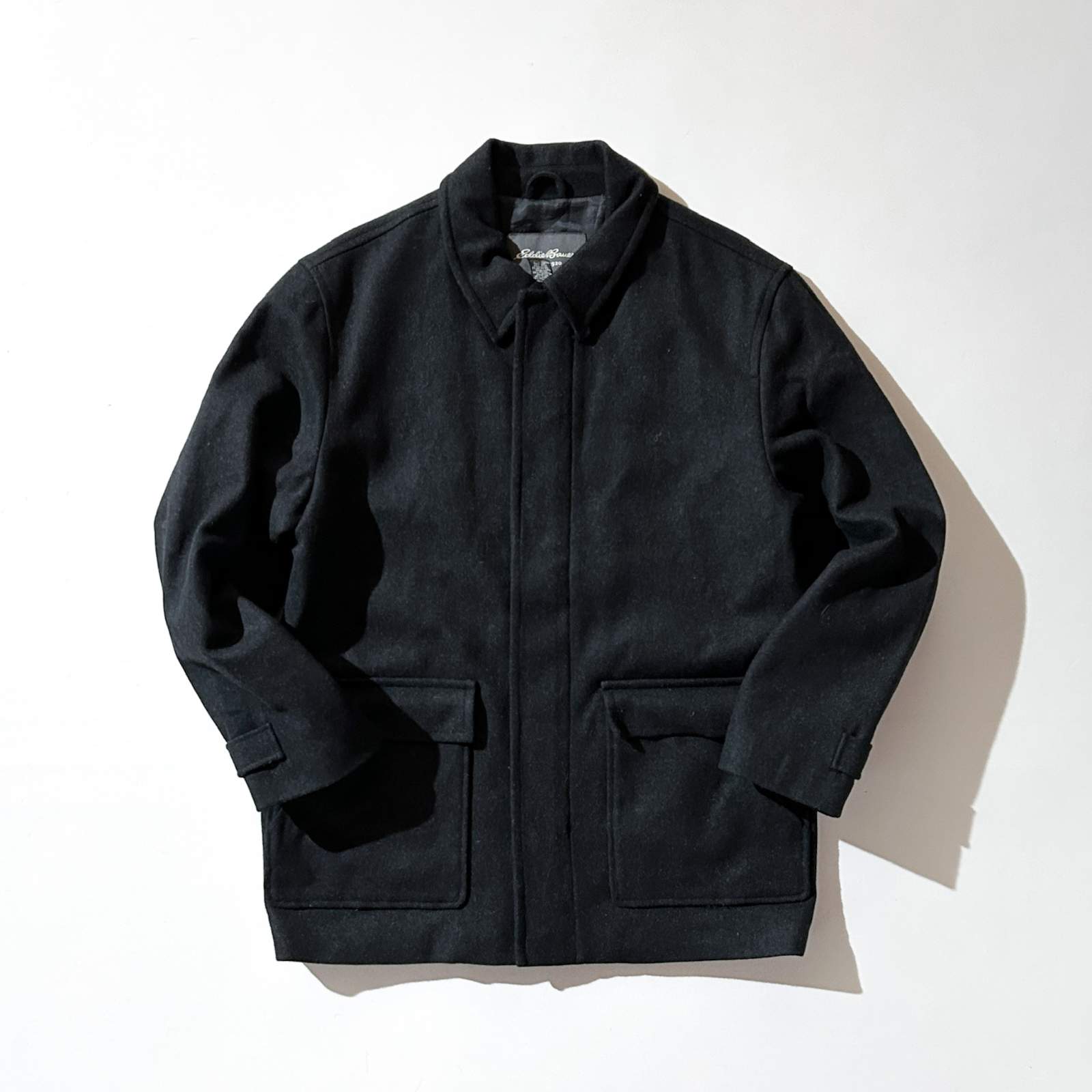 00's Eddie Bauer チャコールグレー 比翼 メルトンウール ハーフ コート