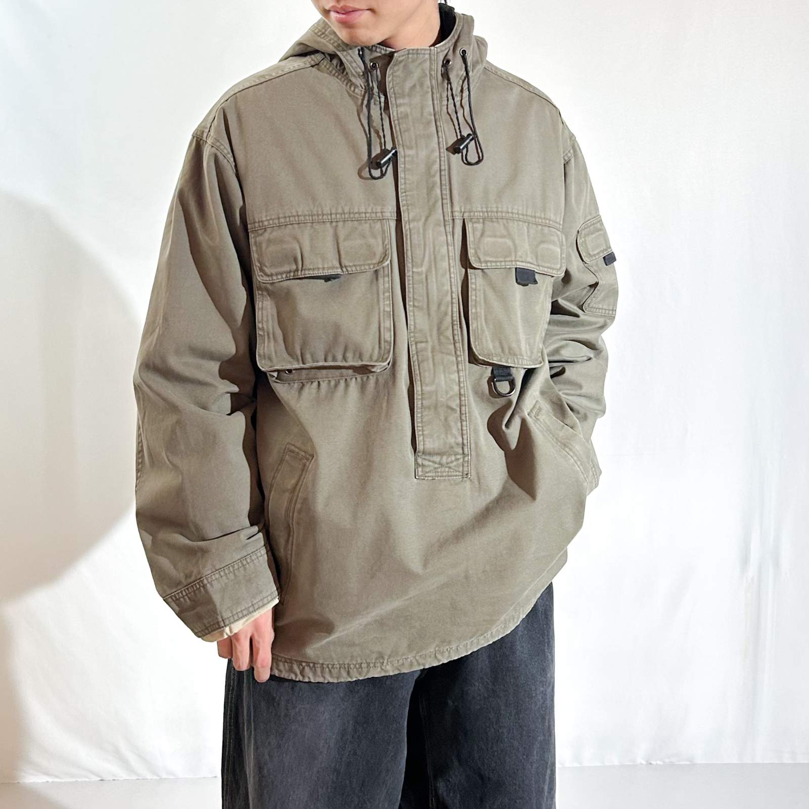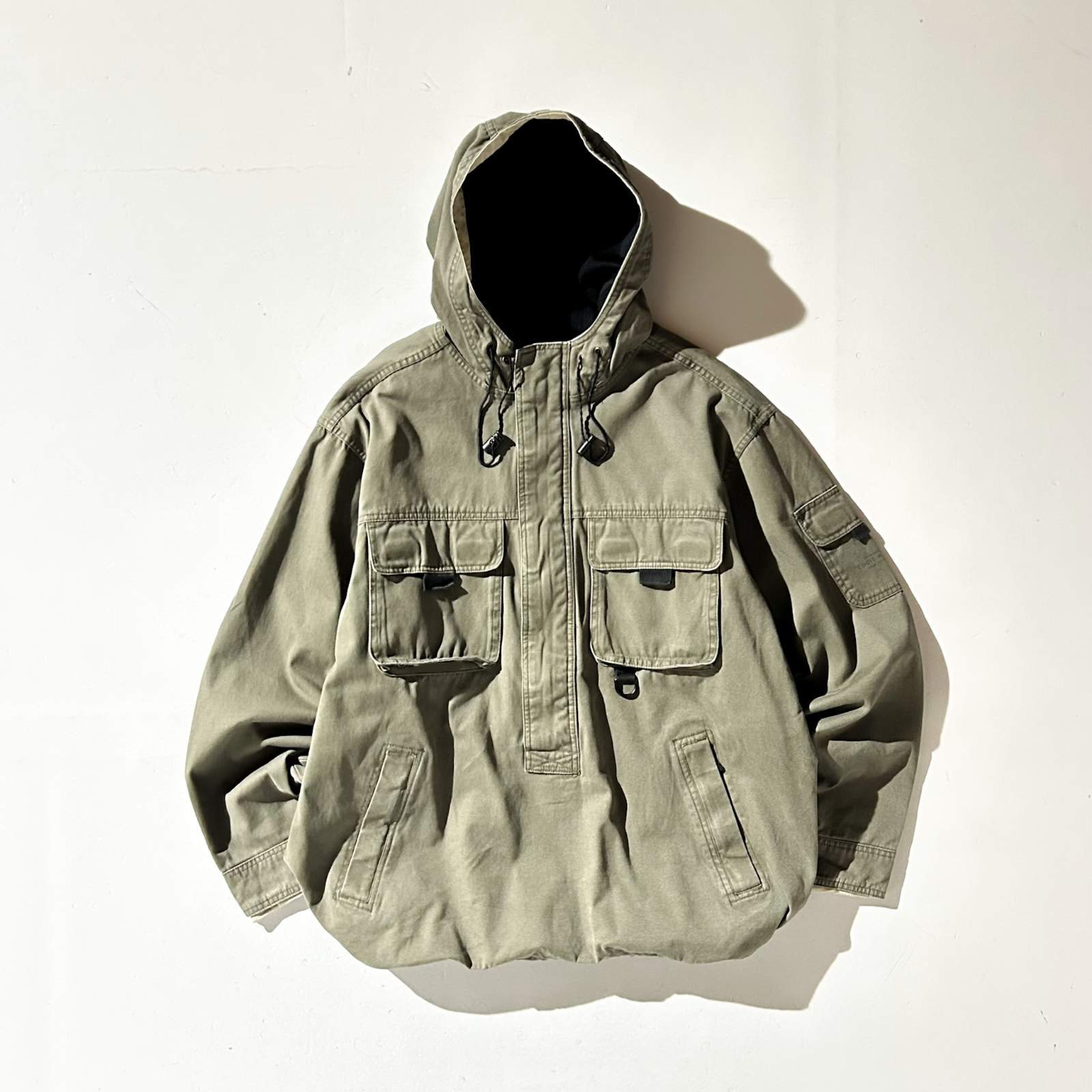 00's Eddie Bauer LEGEND "Mt. Adams Pullover" オリーブ ドローコード コットンキャンバス フィッシング ジャケット