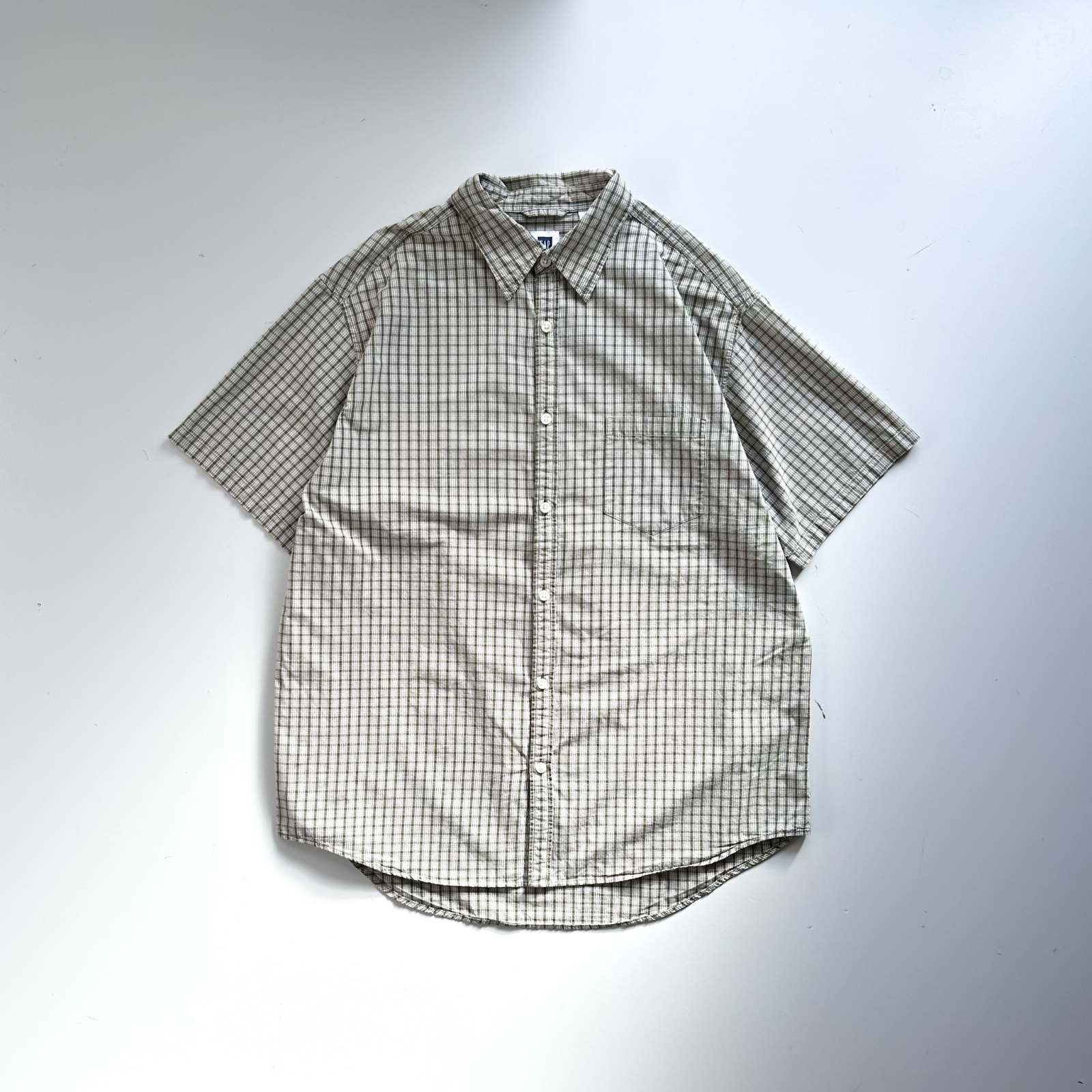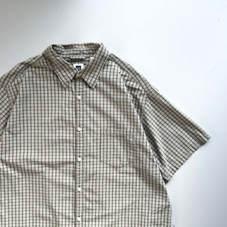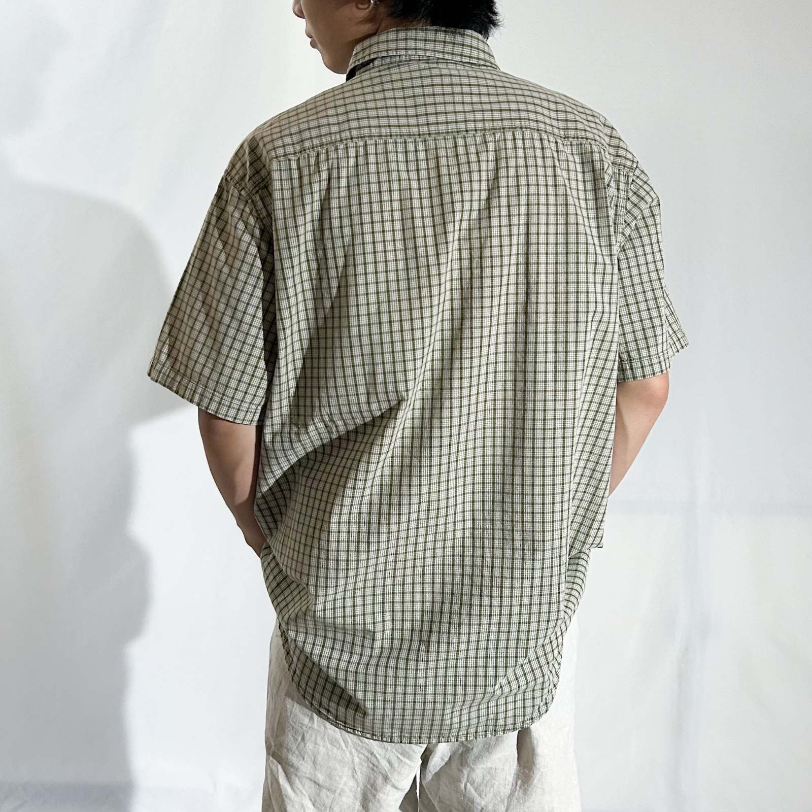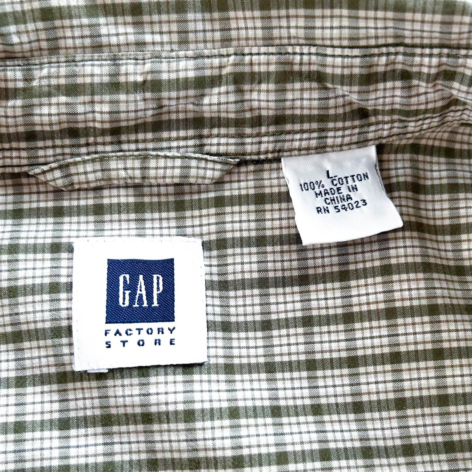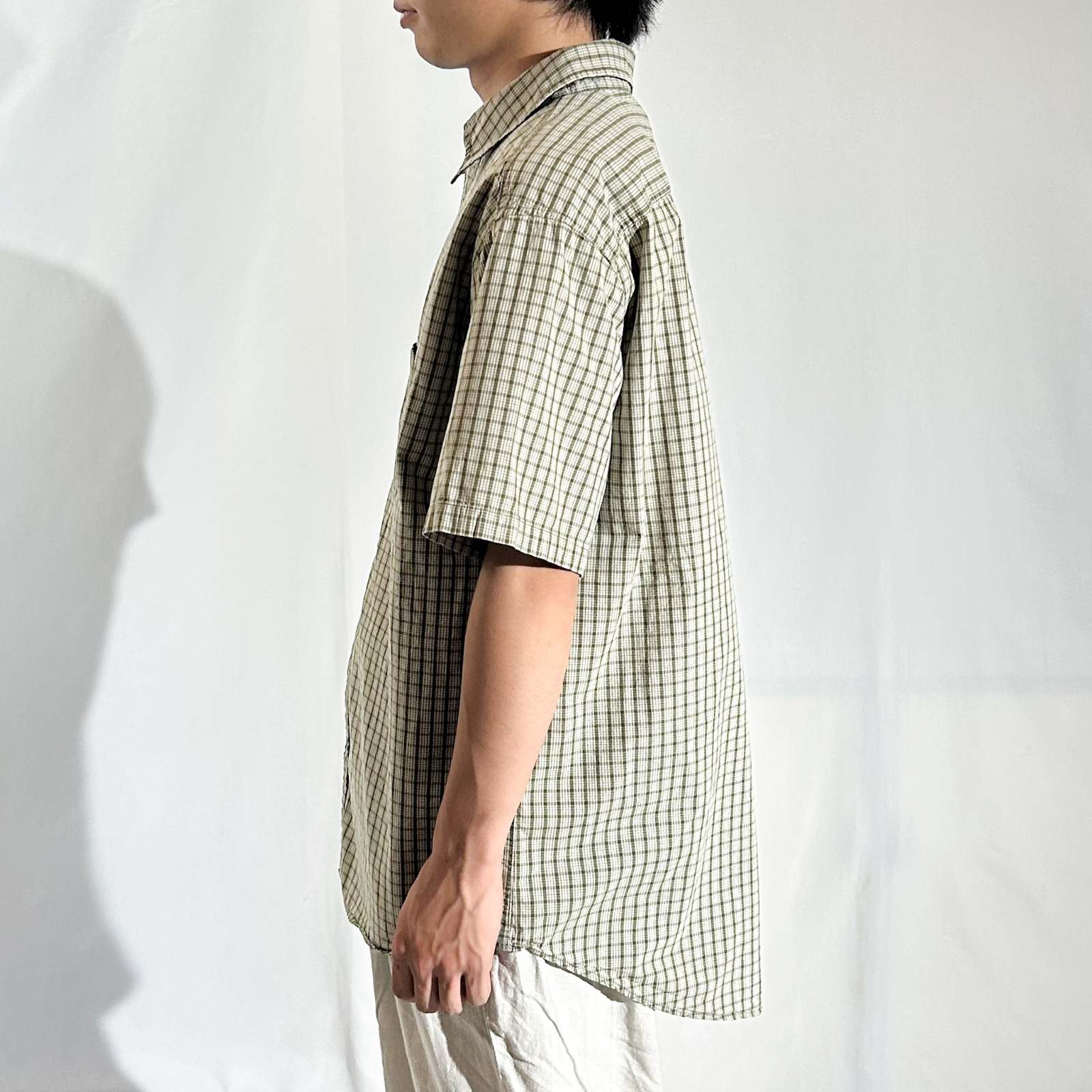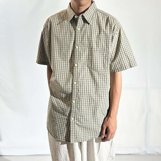 00's GAP チェック レギュラーカラー S/Sシャツ(グリーン)