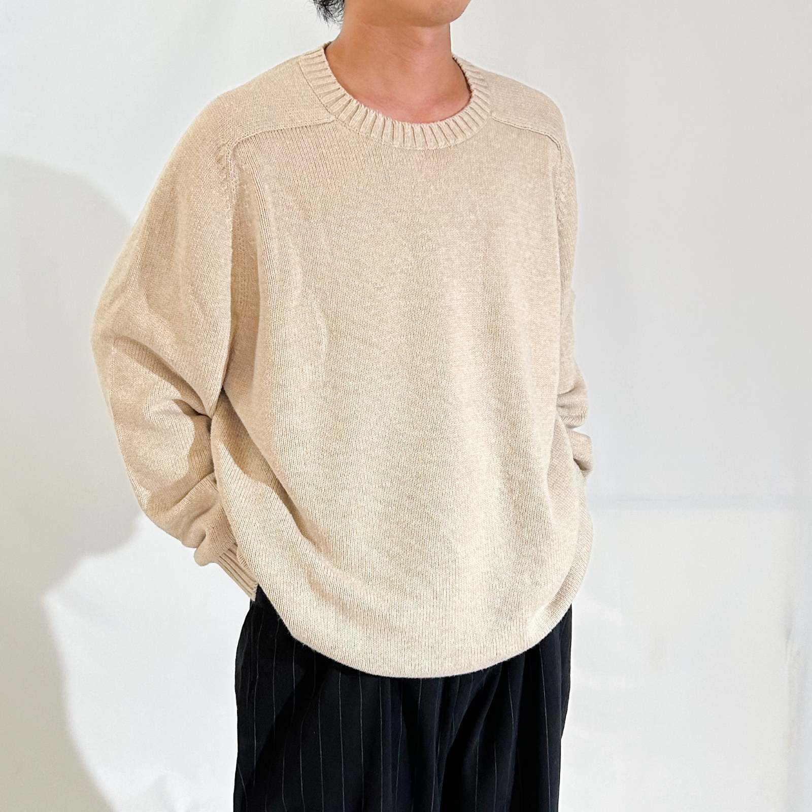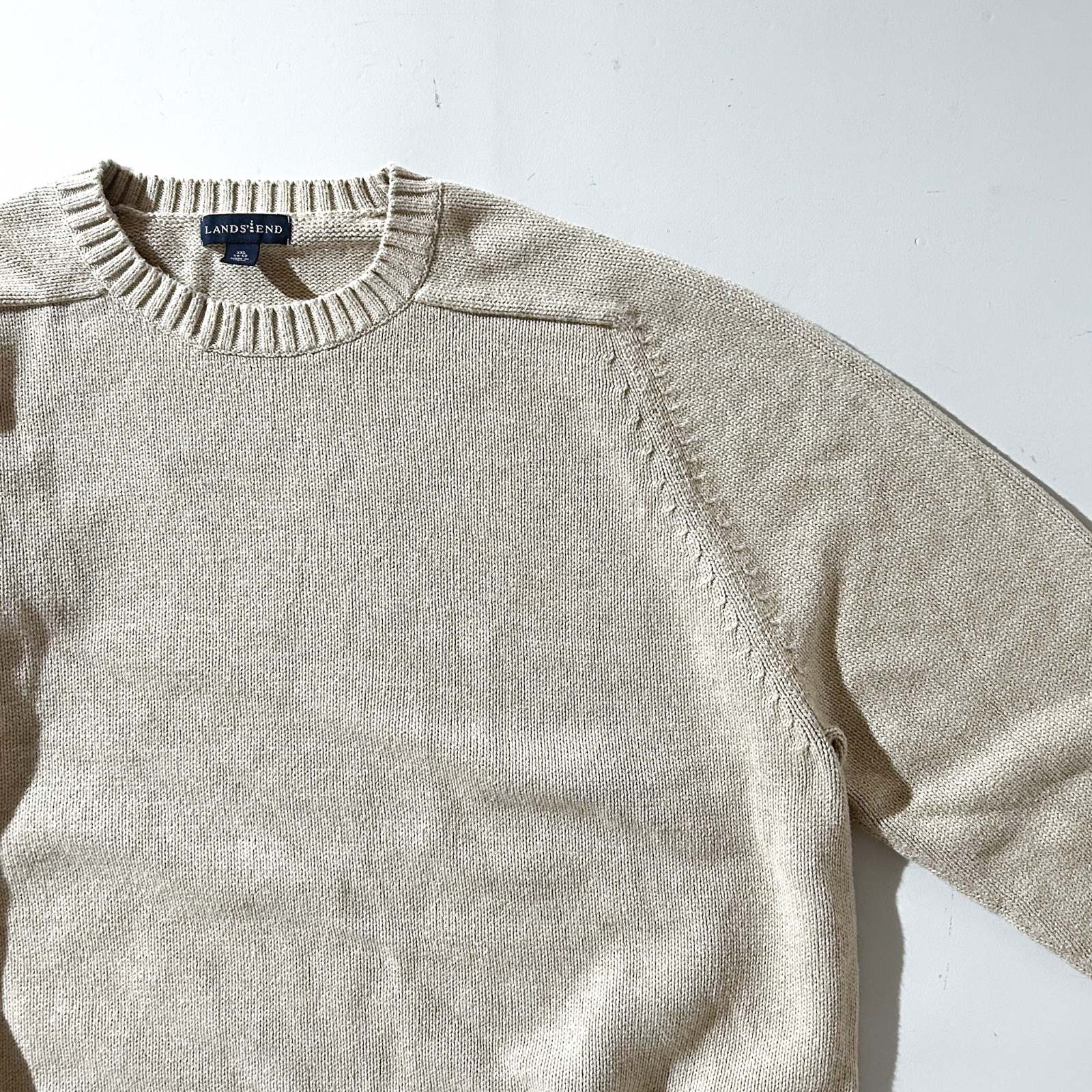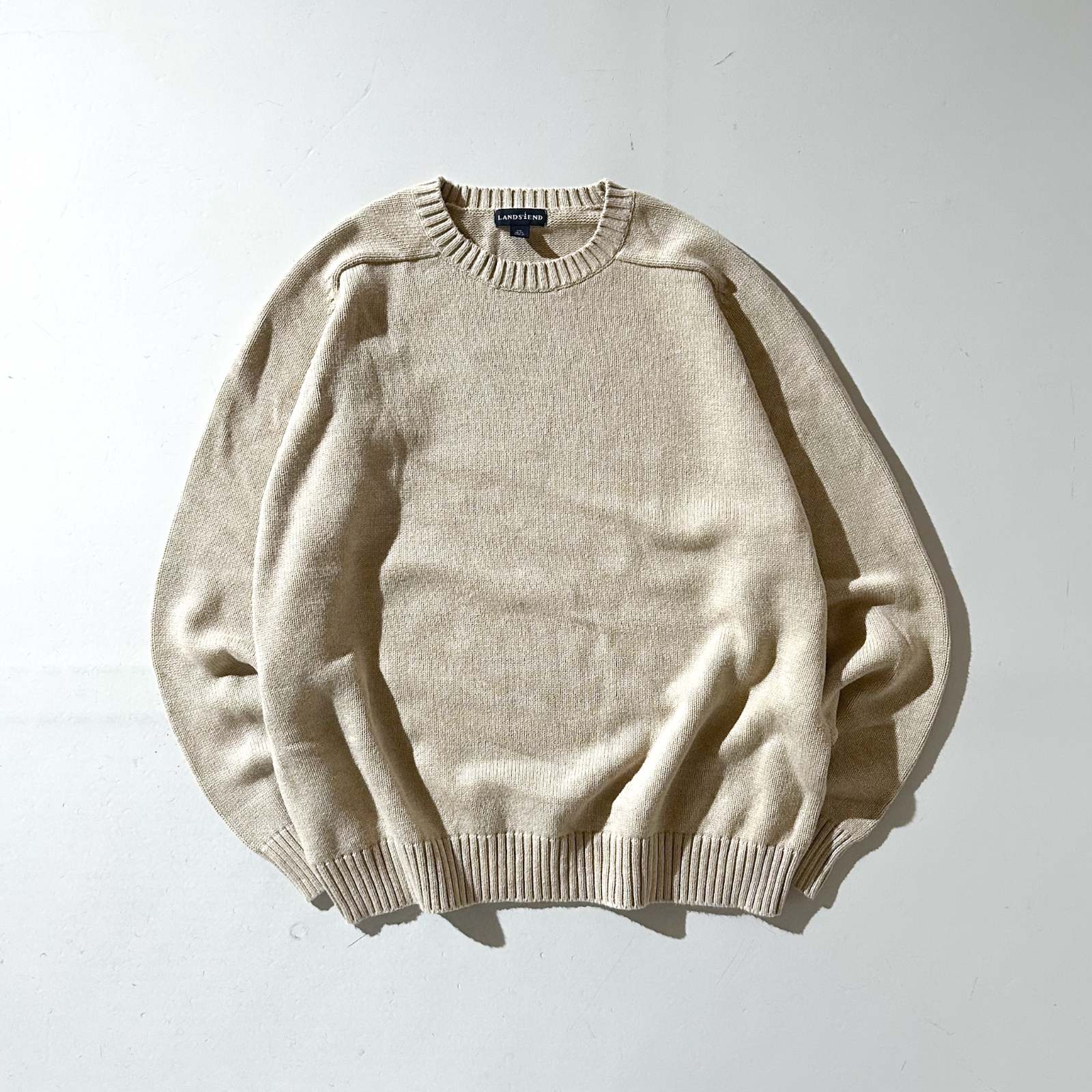 00's LANDS' END 無地 ドリフター ニット セーター (ライトベージュ)