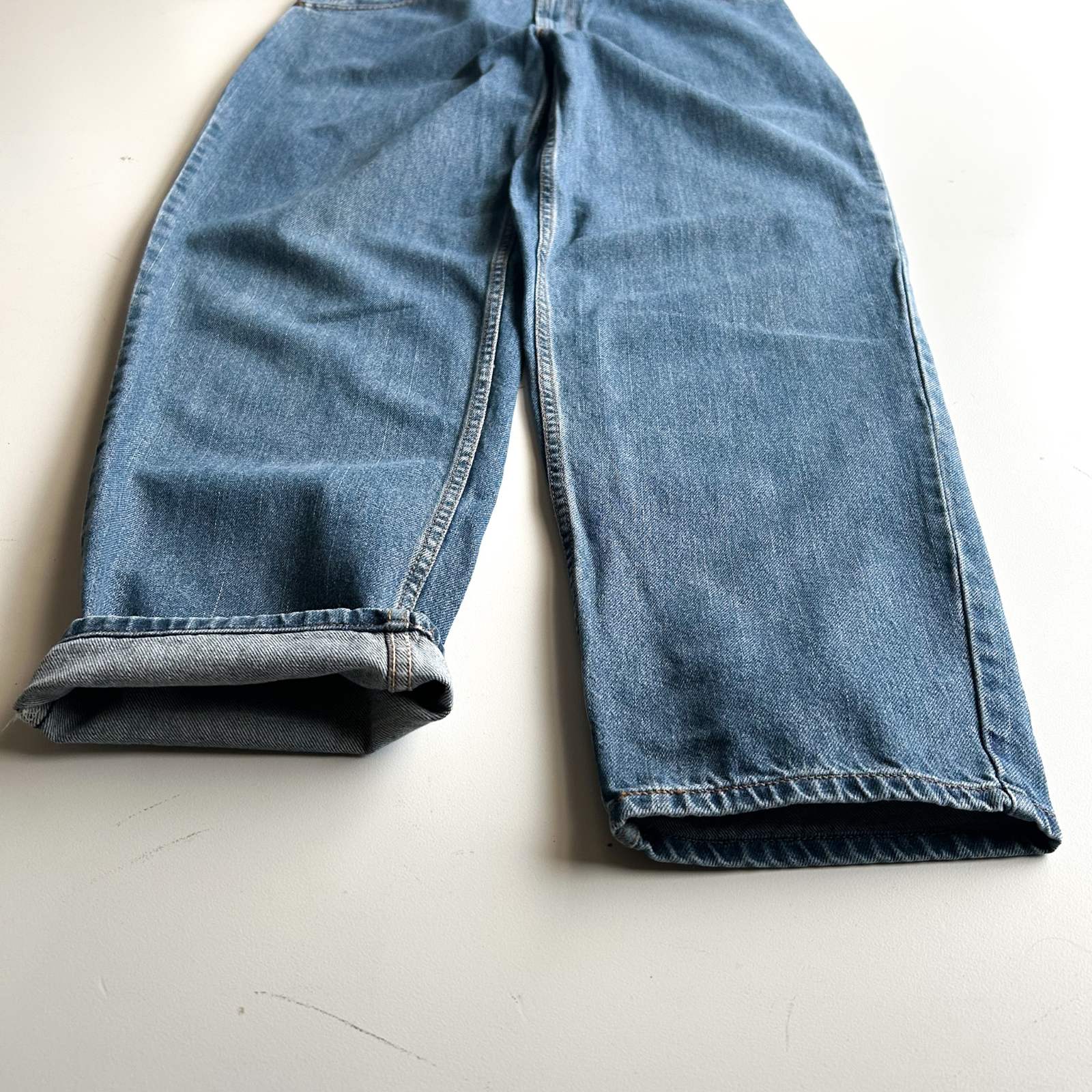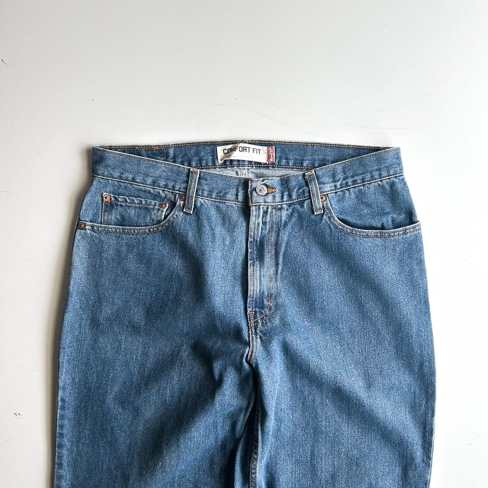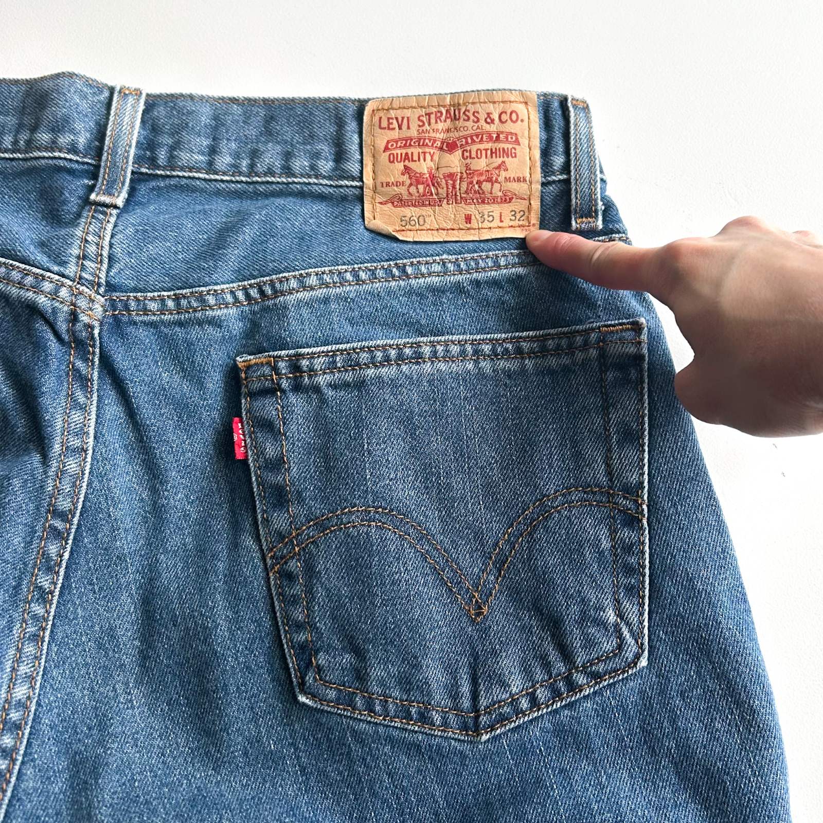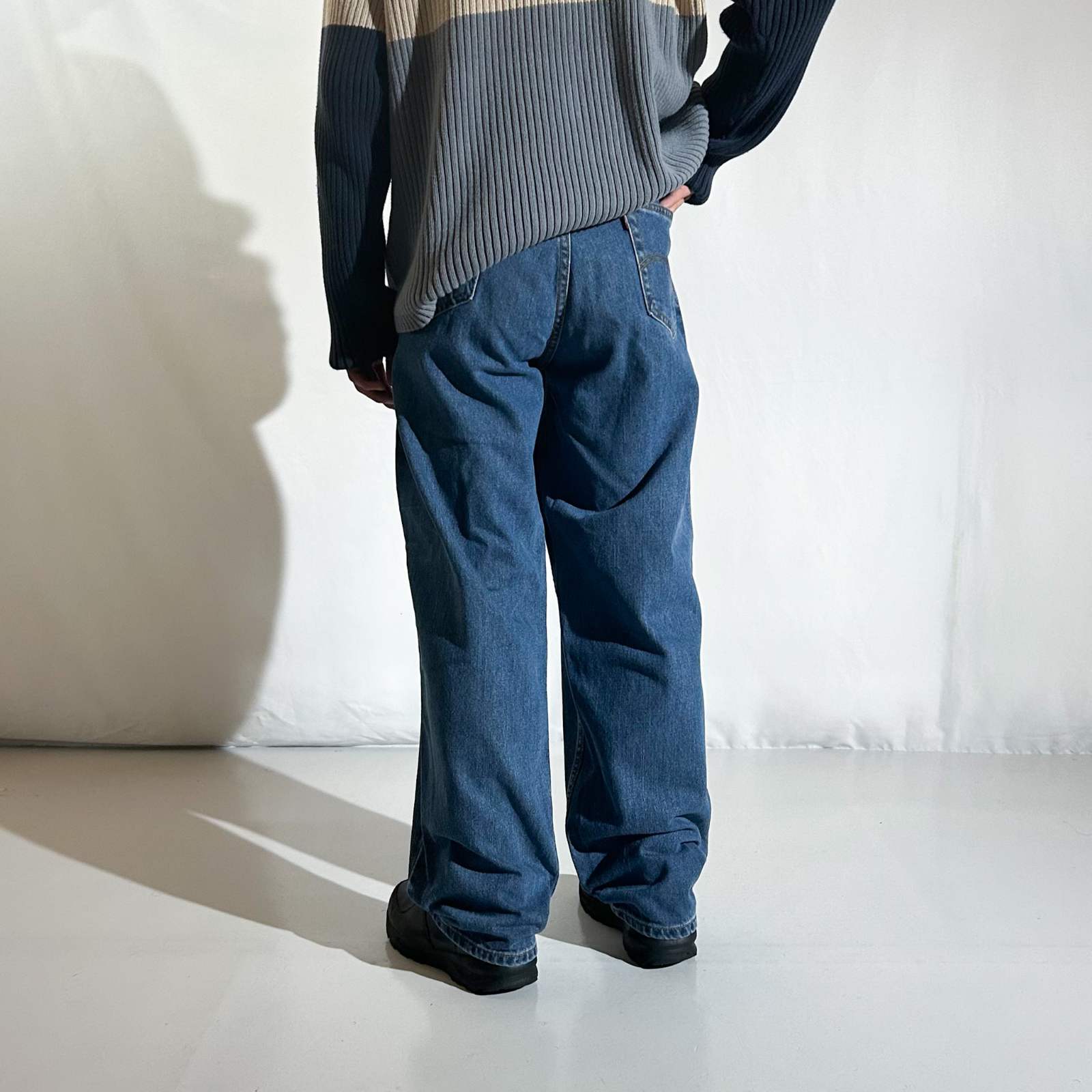 560は通称''センタータグ''が1番履きやすい。 90年代のアメリカ製560とこのセンタータグ560のシルエットを比較したら…渡り幅は変わらず、裾幅は明らかにテーパードが緩くて履きやすいんです。 色薄めと濃いめで2点入荷しましたので、お好みの方を選んでいただけたら!