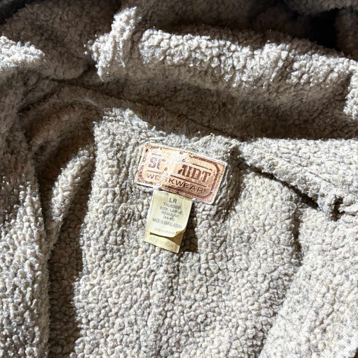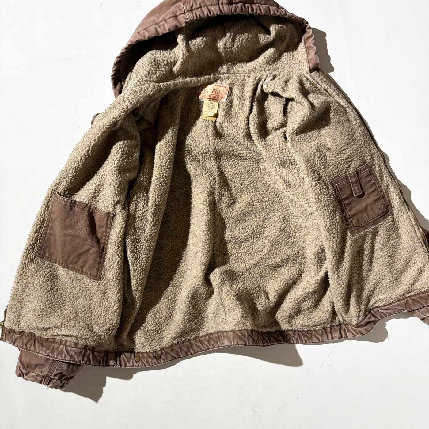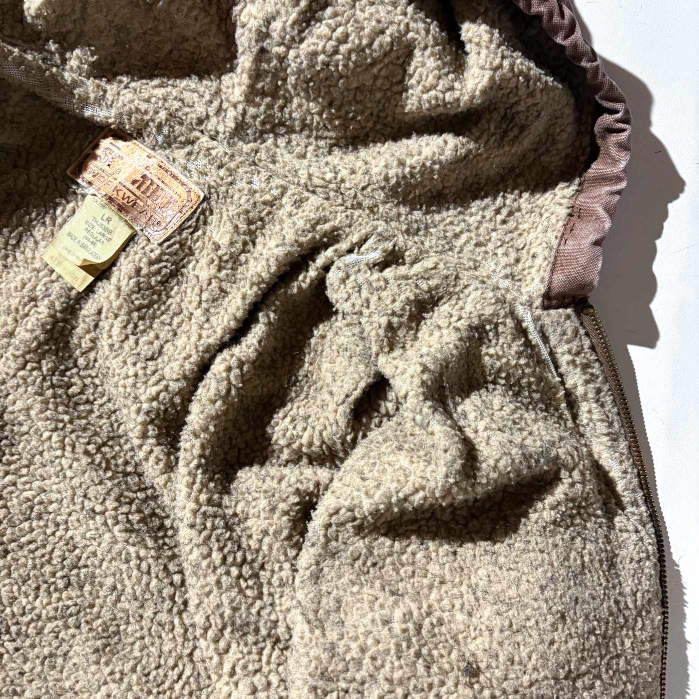 Bランク 裏地のフリースの首周りにほんの少し剥げているところがありますが、まだまだ暖かく着ていただけます。裾やポケット淵の擦れ、ボディに少しダメージがありますが、全体のフェード感とダックの生地が相まってとても良い雰囲気です。
