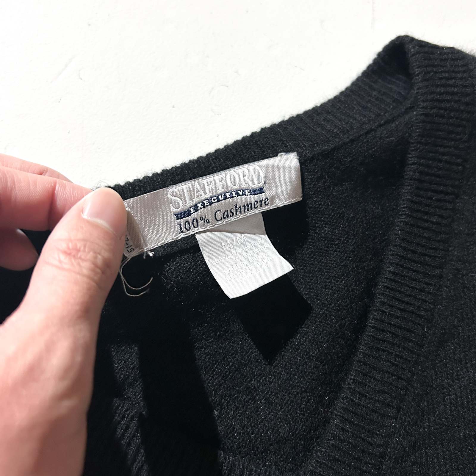 00's STAFFORD Vネック カシミヤ ニット セーター(ブラック)