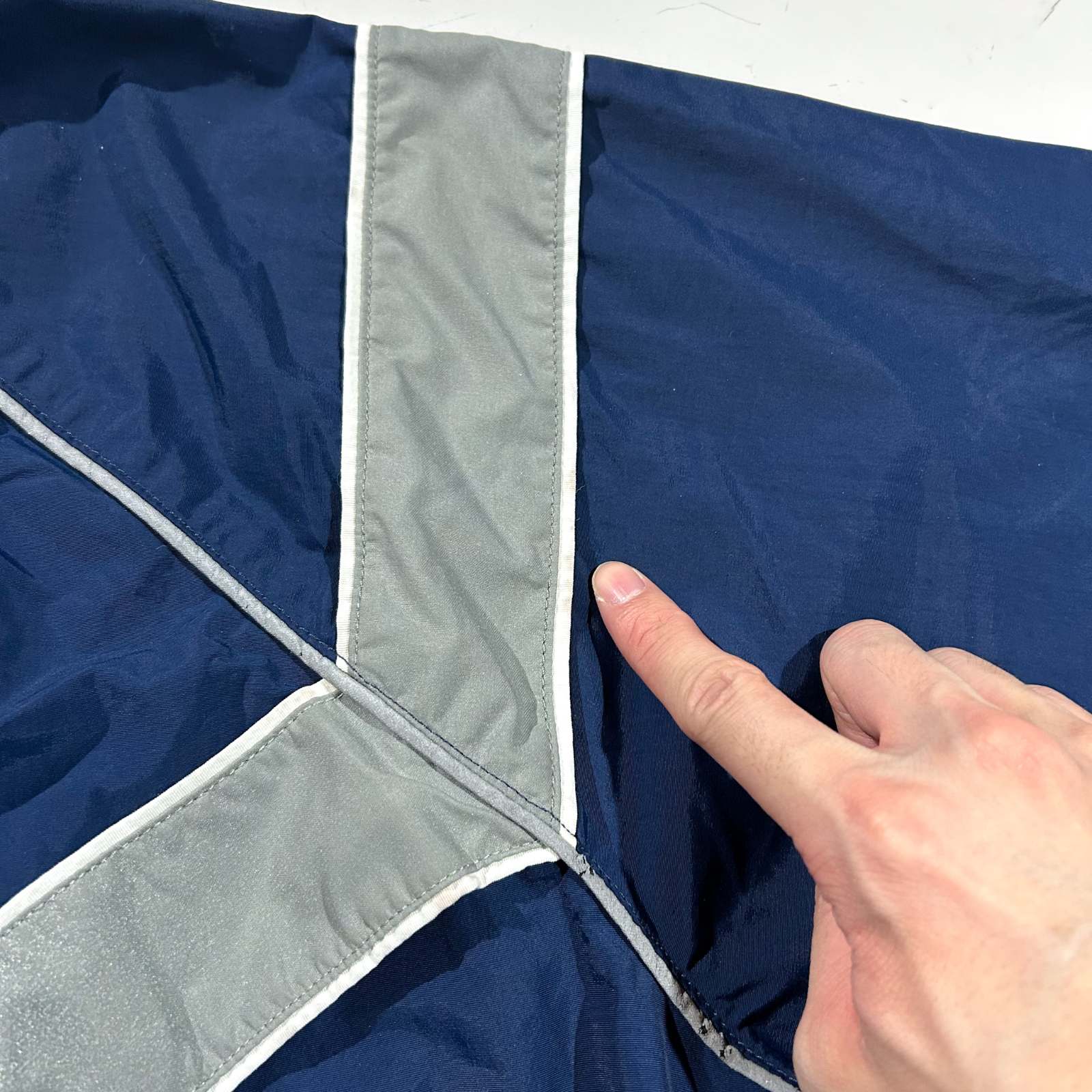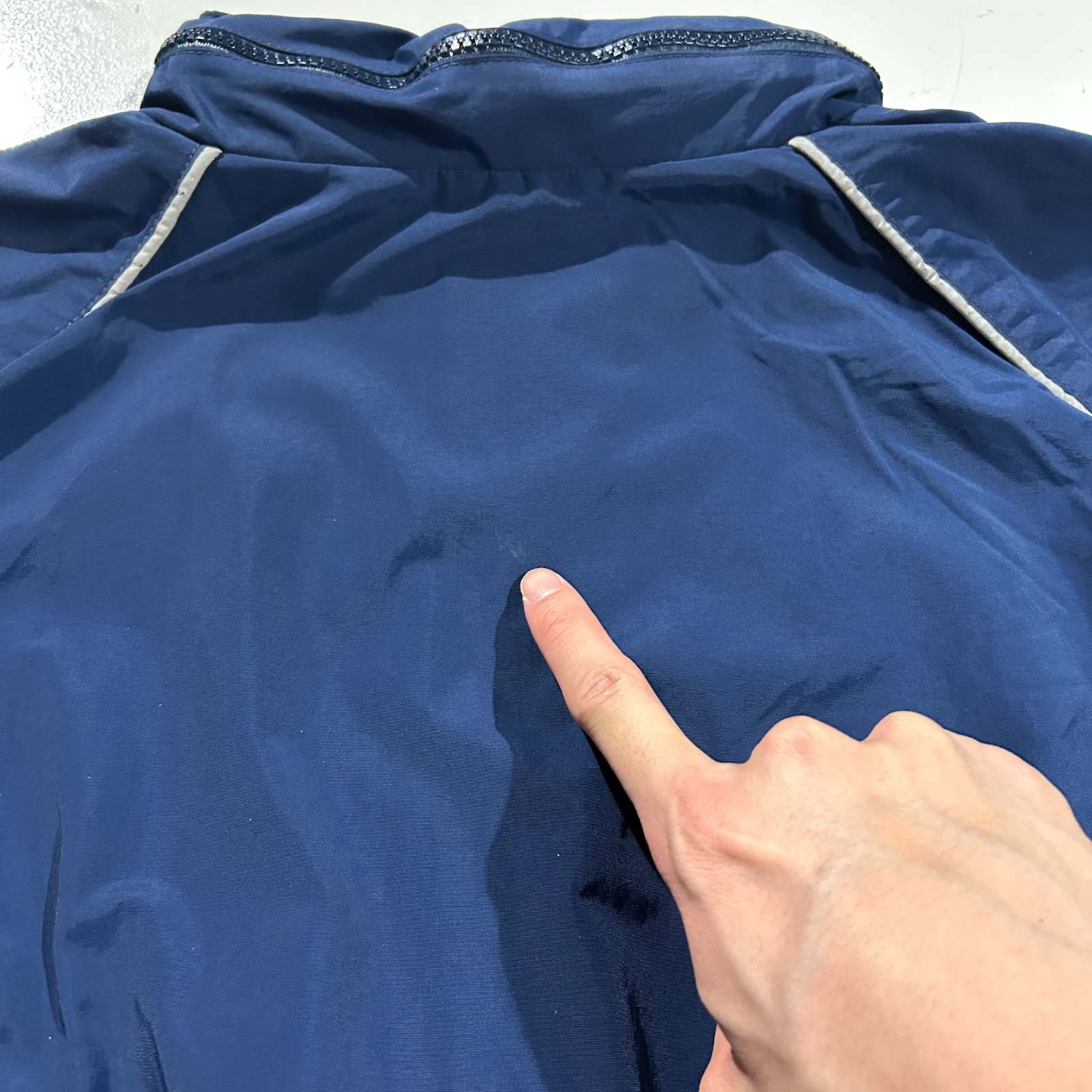 Bランク リフレクター部分と後ろ汚れ、ラグラン部分ダメージ、袖テカリが見られます