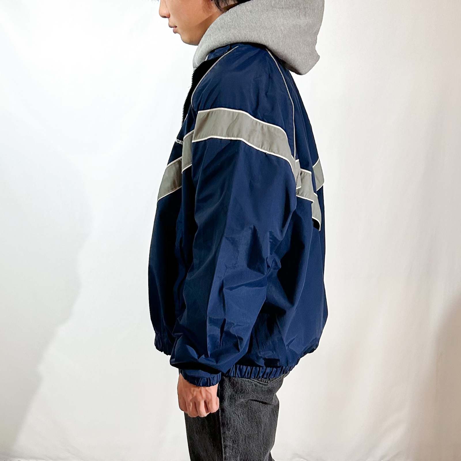 U.S.AIR FORCE トレーニングジャケットです。 V字型のリフレクターが付いており、光が当たると反射、脇下には湿気や汗を逃がすベンチレーション仕様。夜のランニングやスポーツ、トレーニングに重宝するアイテム。