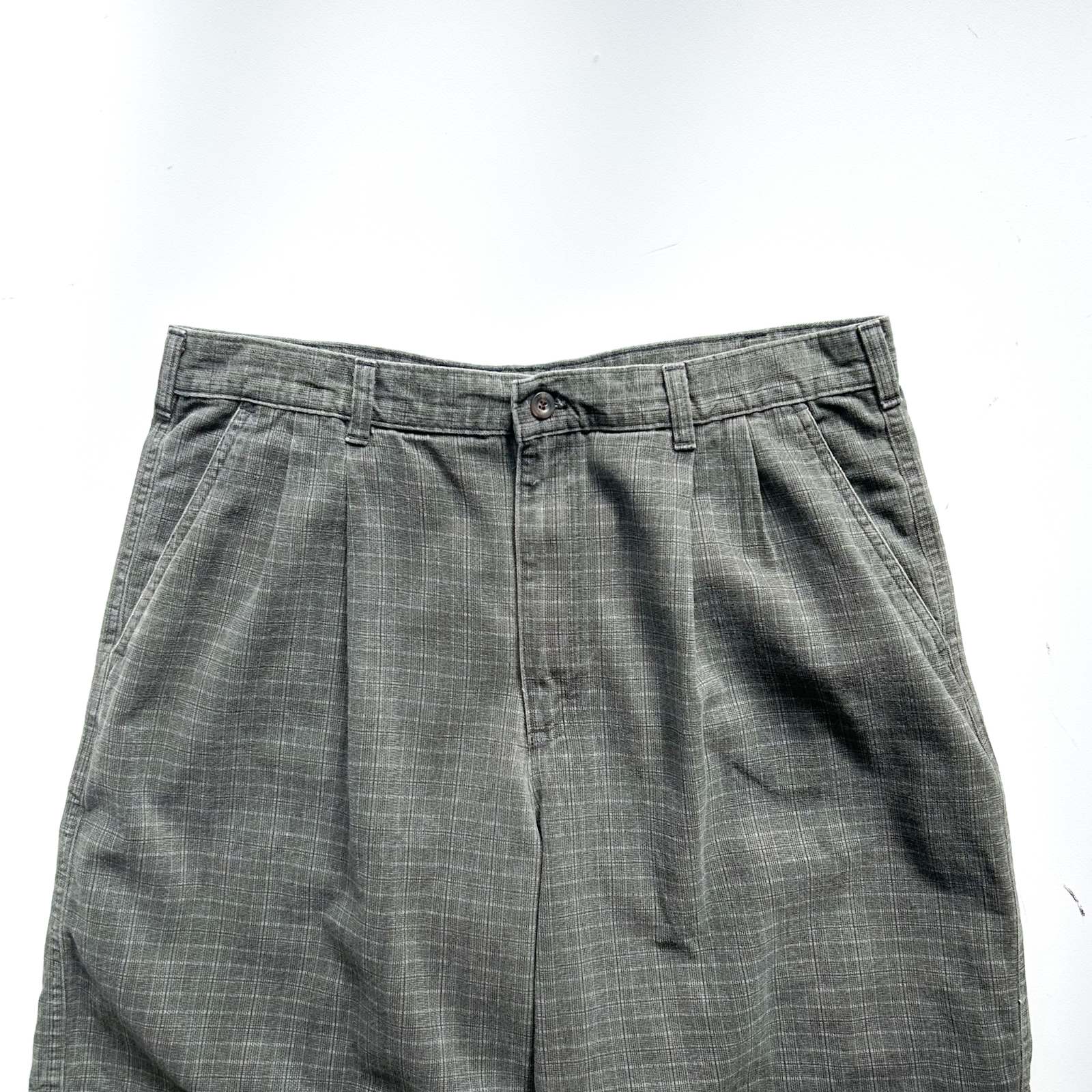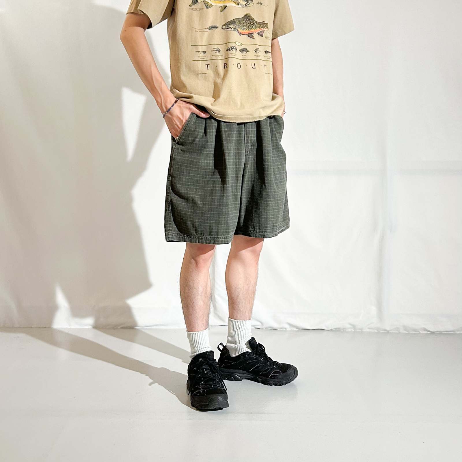 00's WOOLRICH オリーブ 2タック チェック ワイド ショーツ