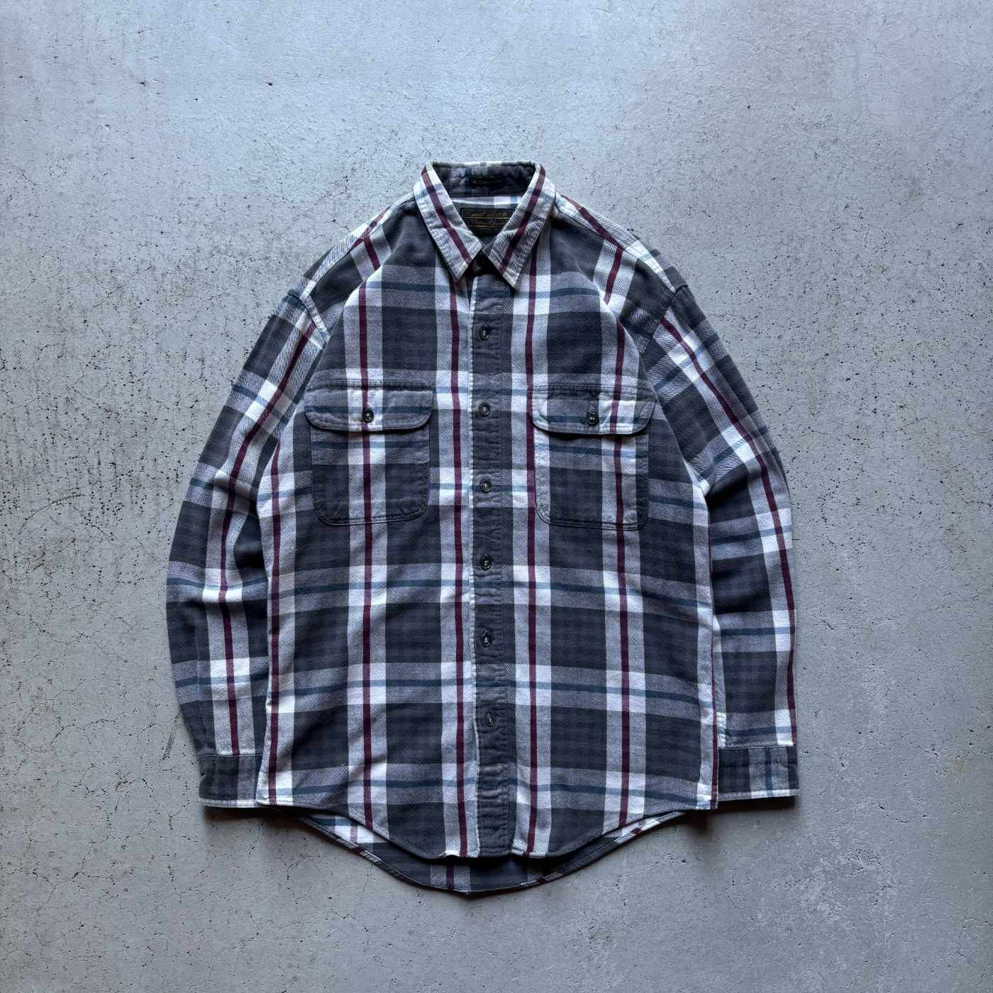 80年代 エディーバウアー 長袖シャツ グレー フランネル 黒金タグ アウトドア