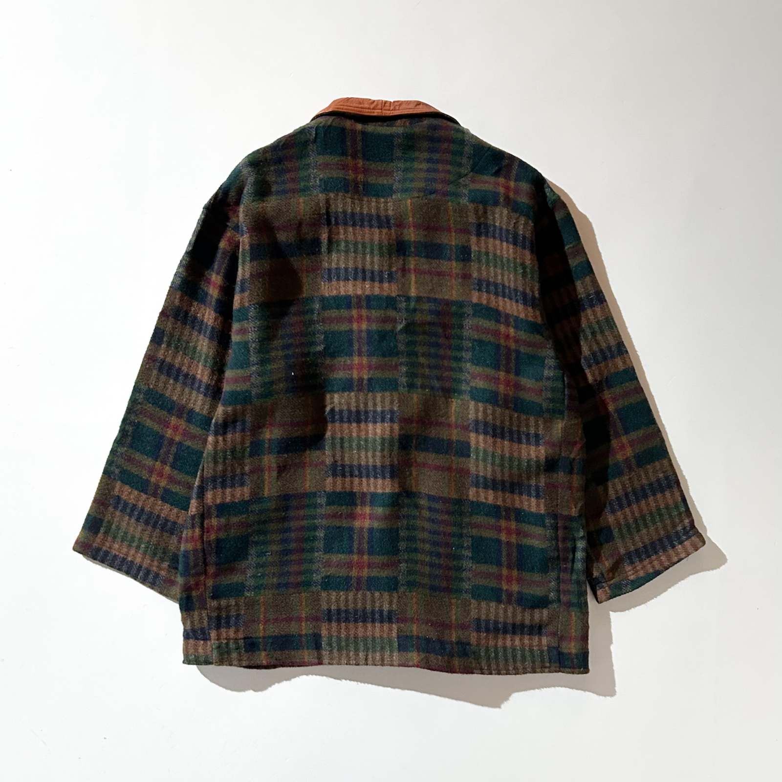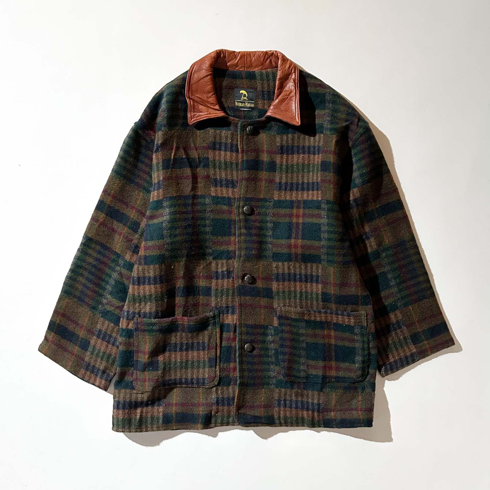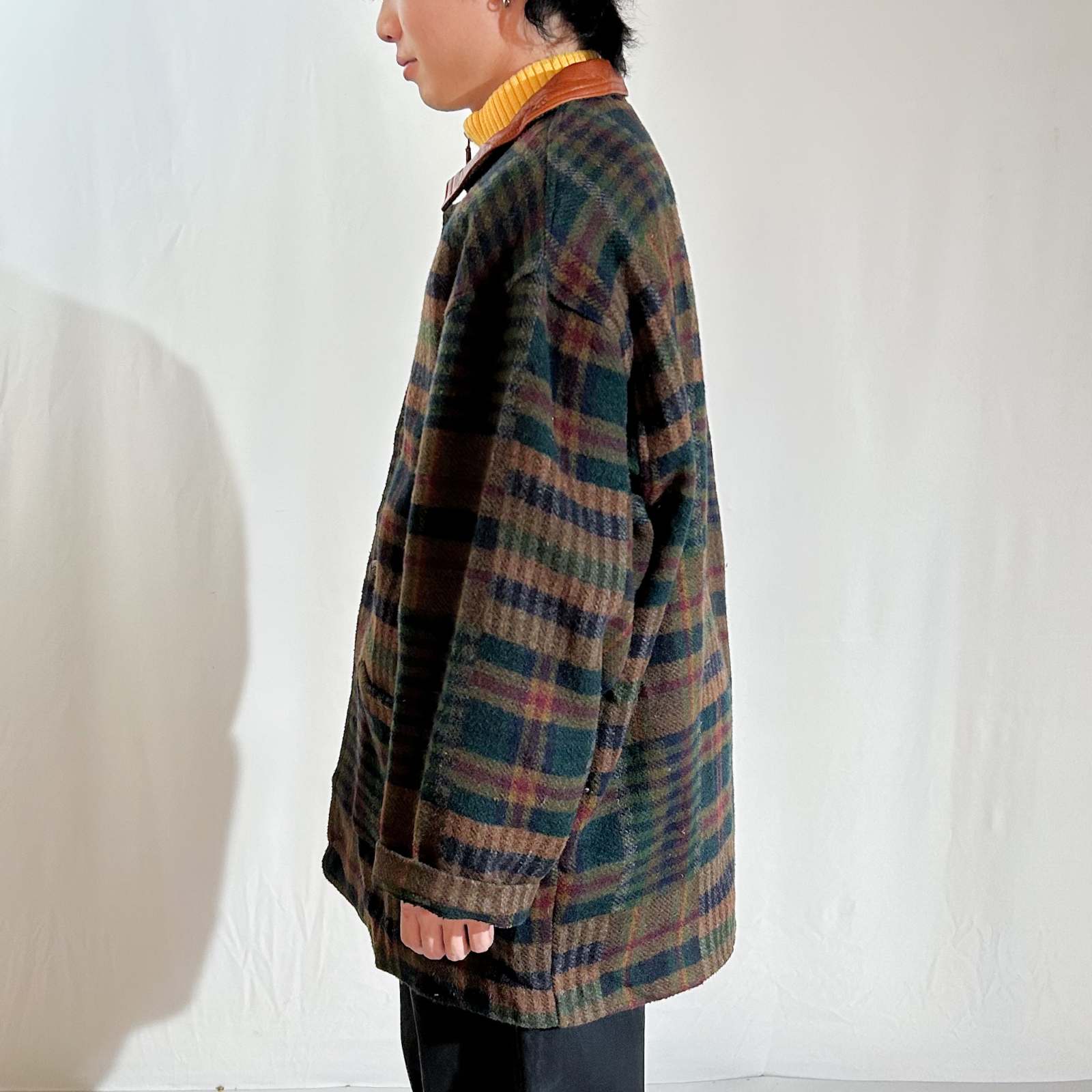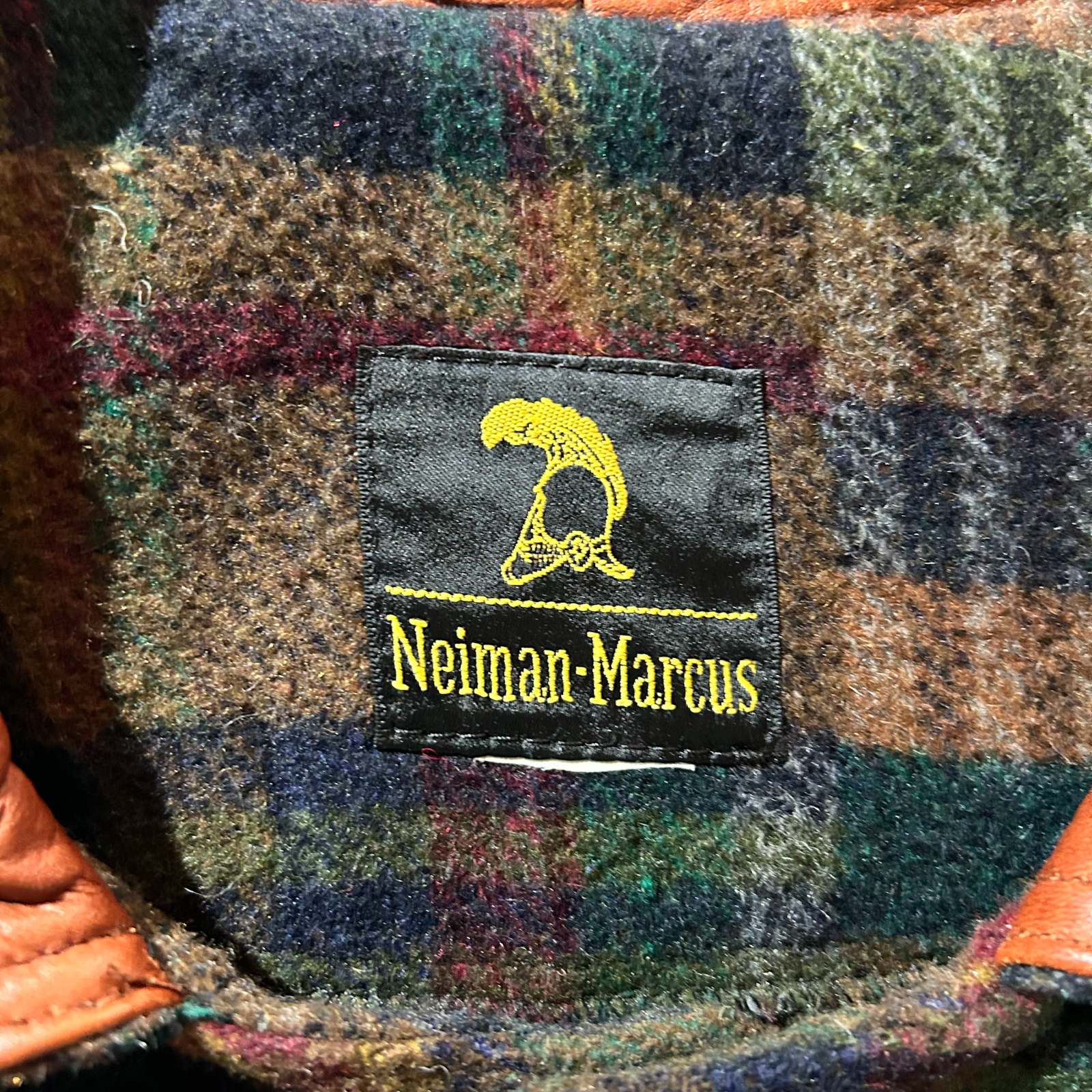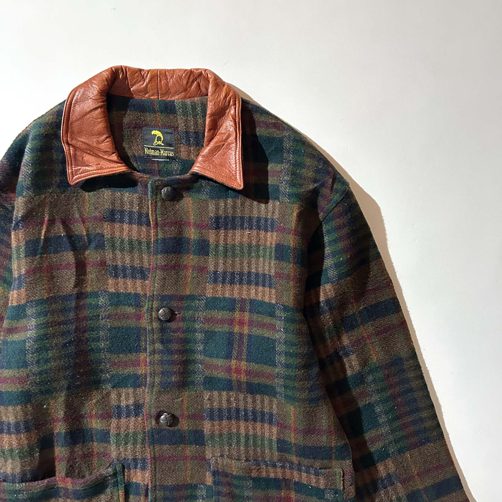 80's Neiman Marcus 襟レザー メルトンウール コート