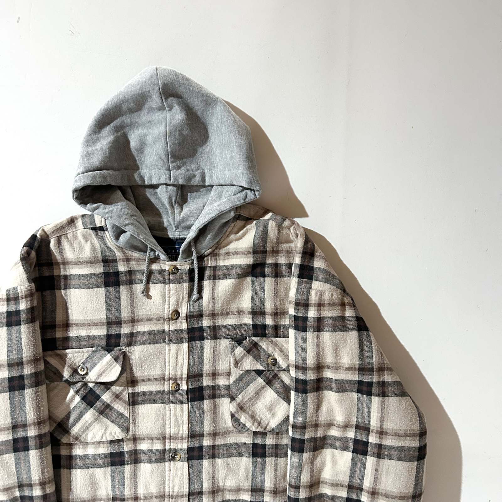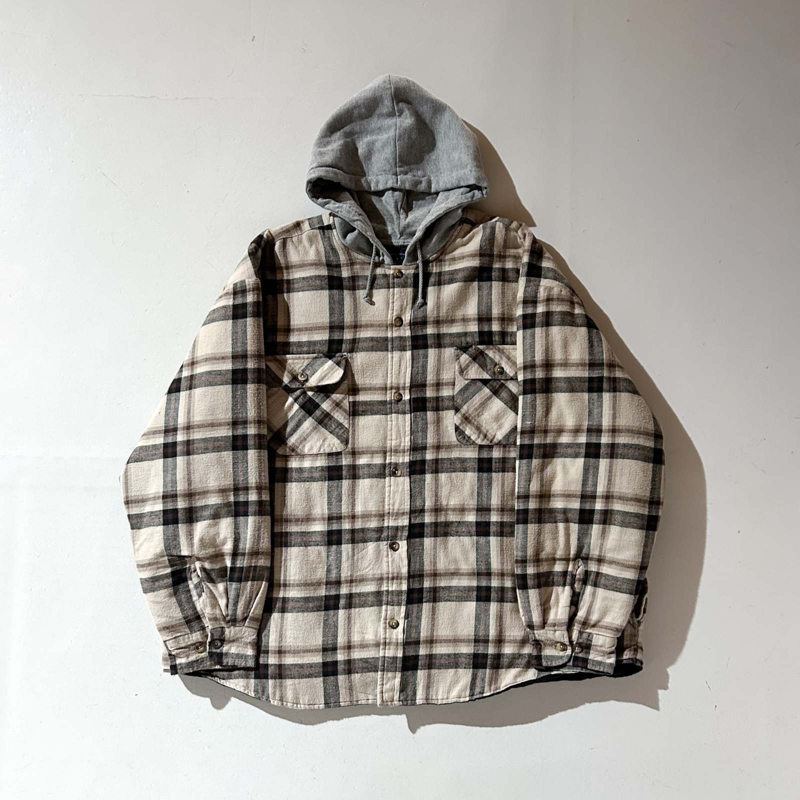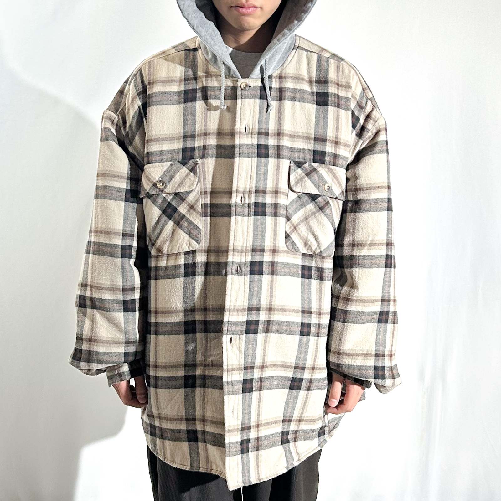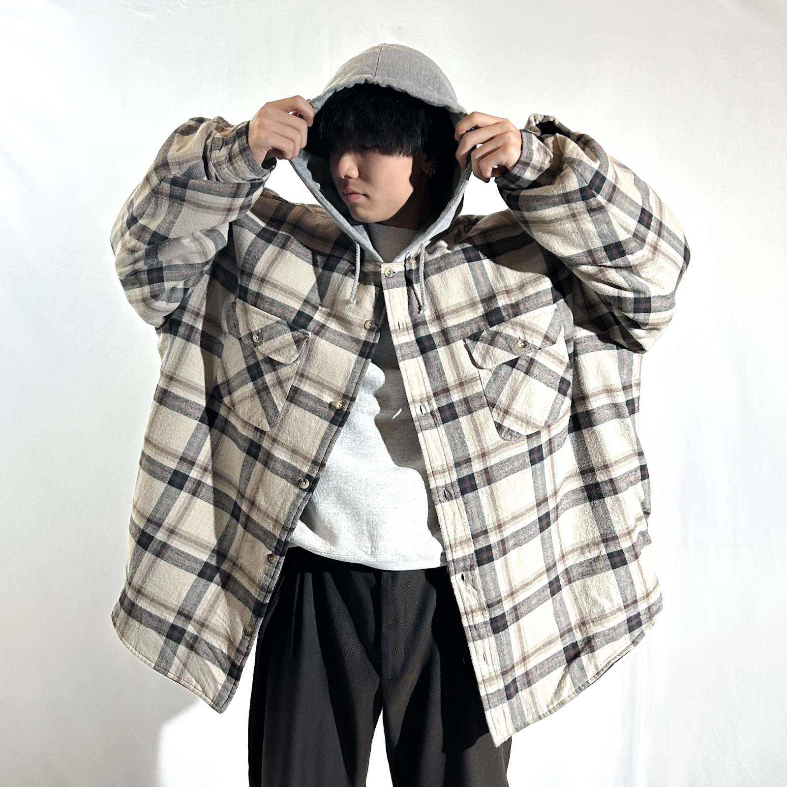 90's~00's basic editions 裏キルティング フーデッド ポケット付き マルチチェック ネル シャツジャケット