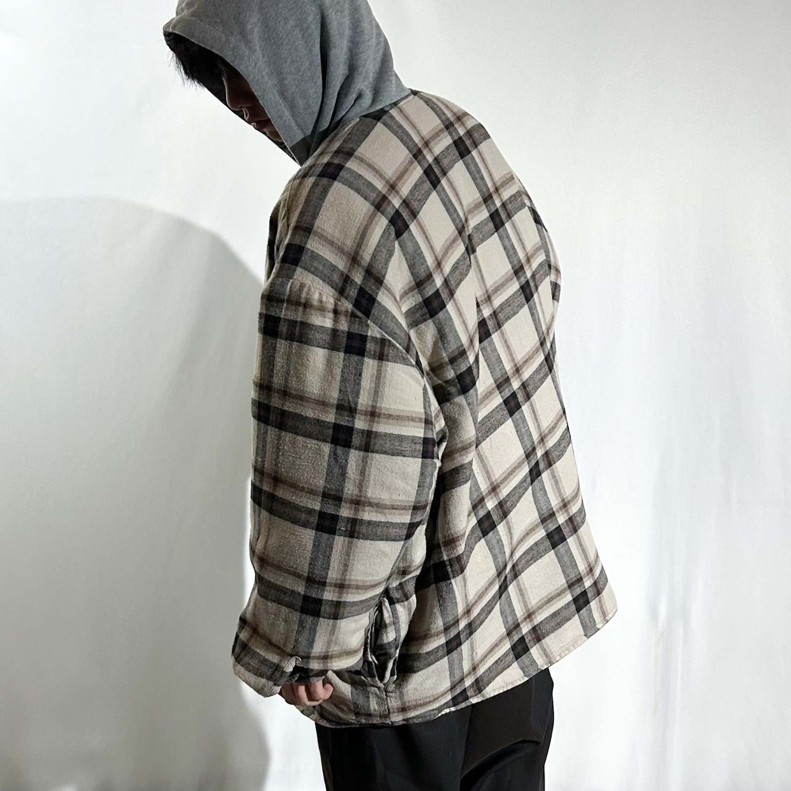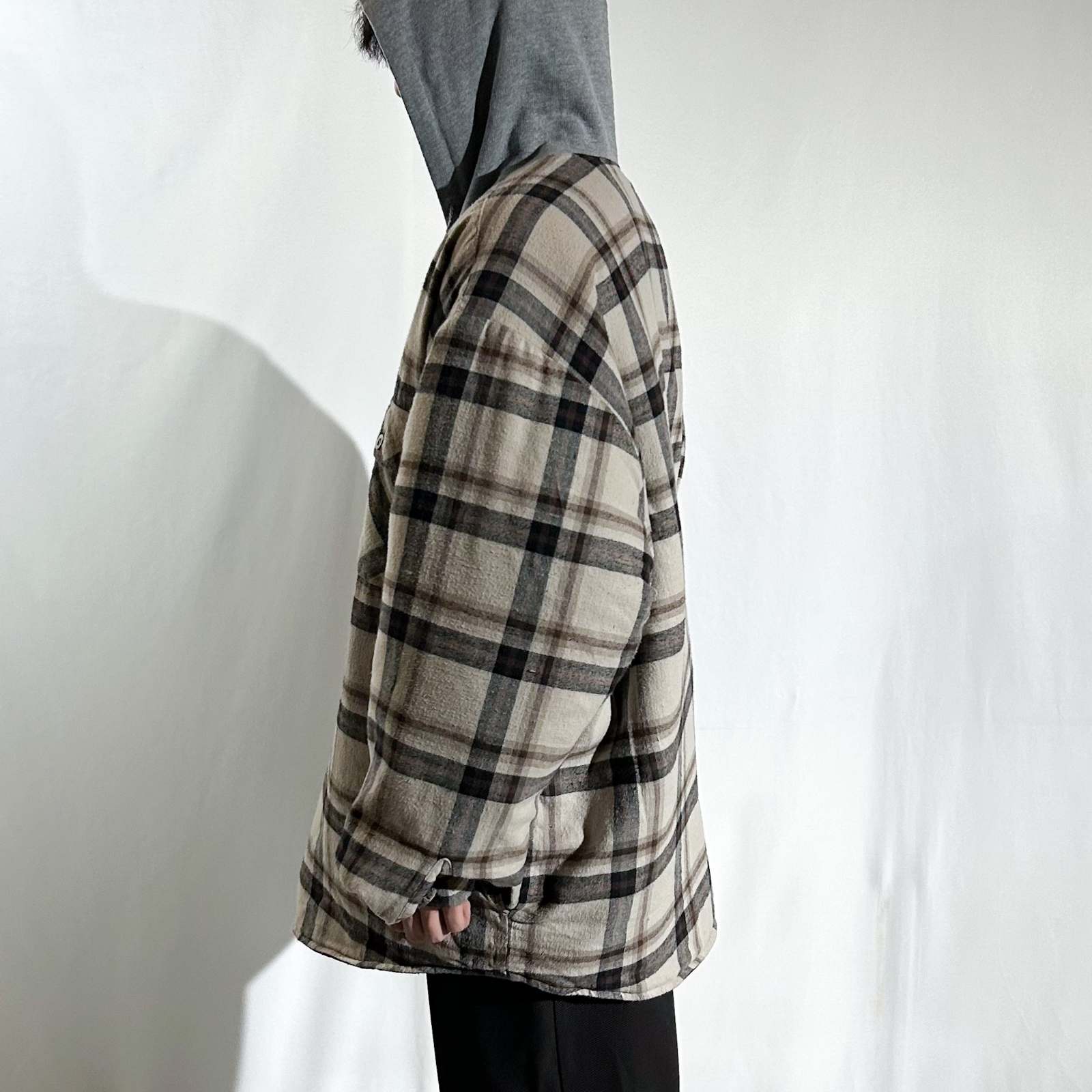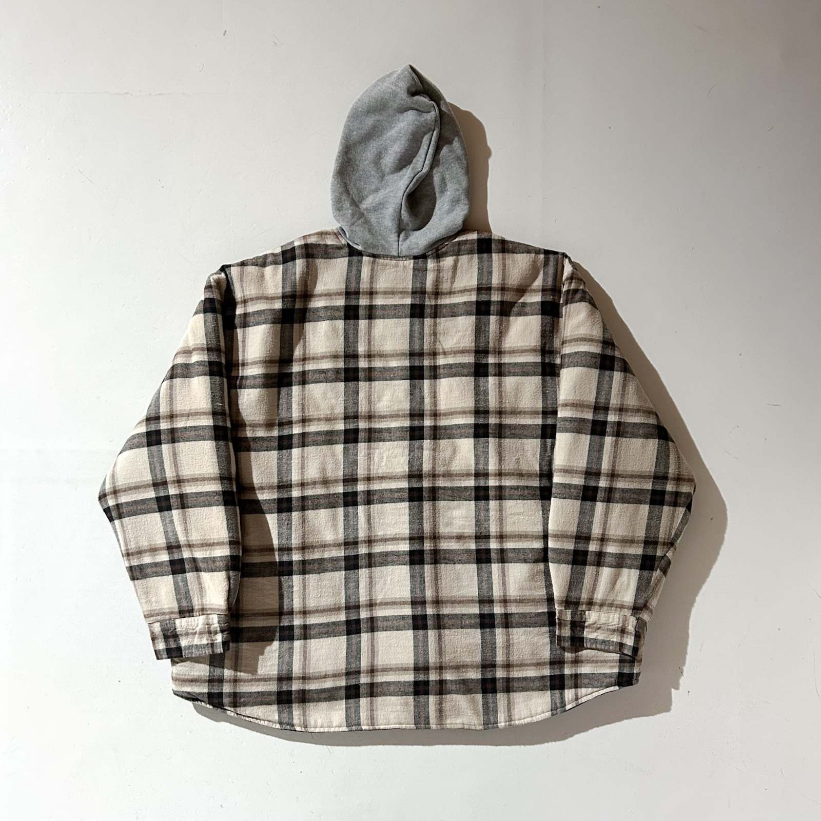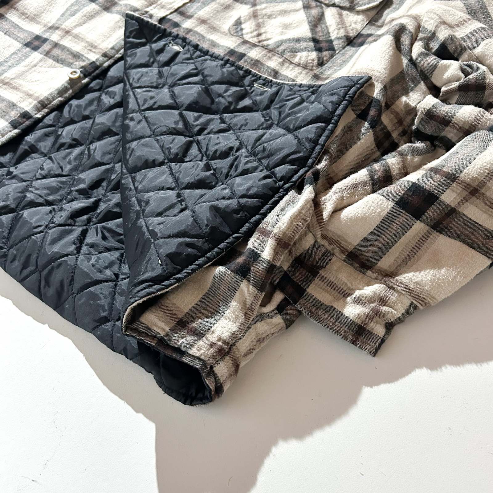 90's~00's basic editions 裏キルティング フーデッド ポケット付き マルチチェック ネル シャツジャケット