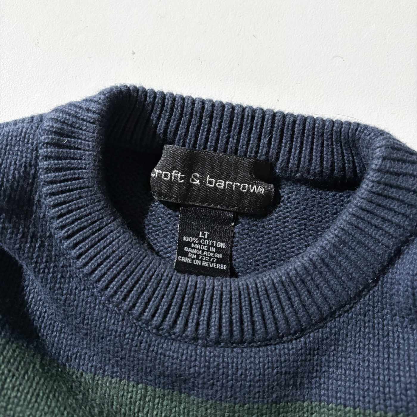 00's croft & barrow コットン 太ボーダー ニット セーター(ネイビー×グリーン)
