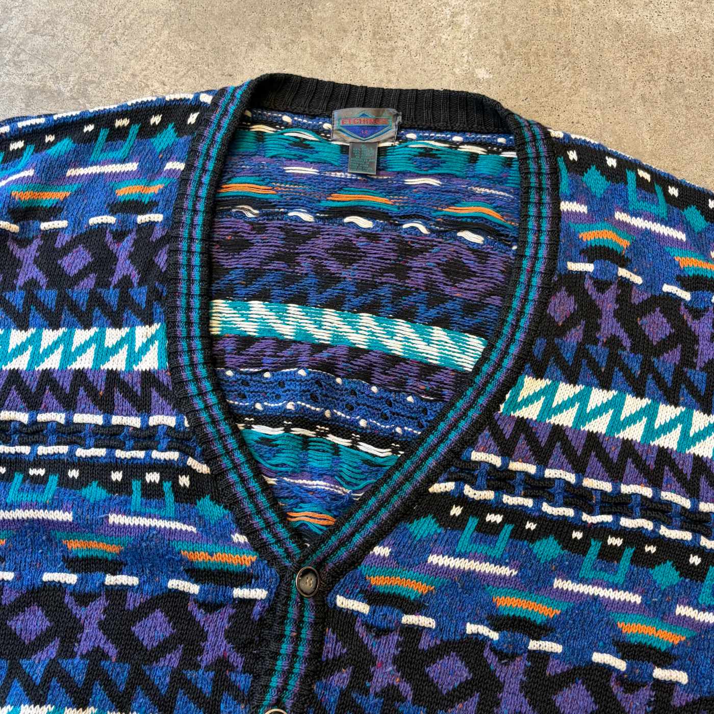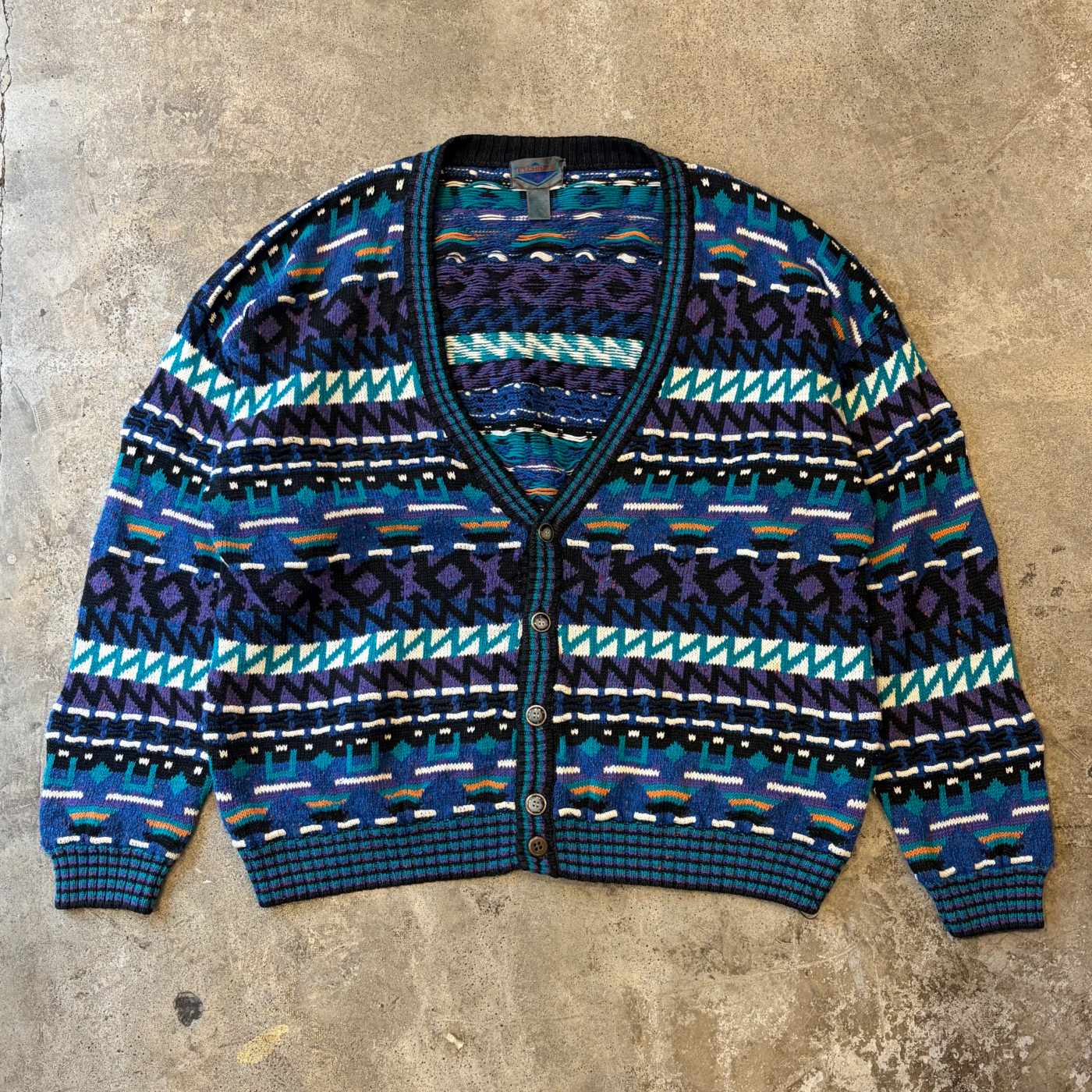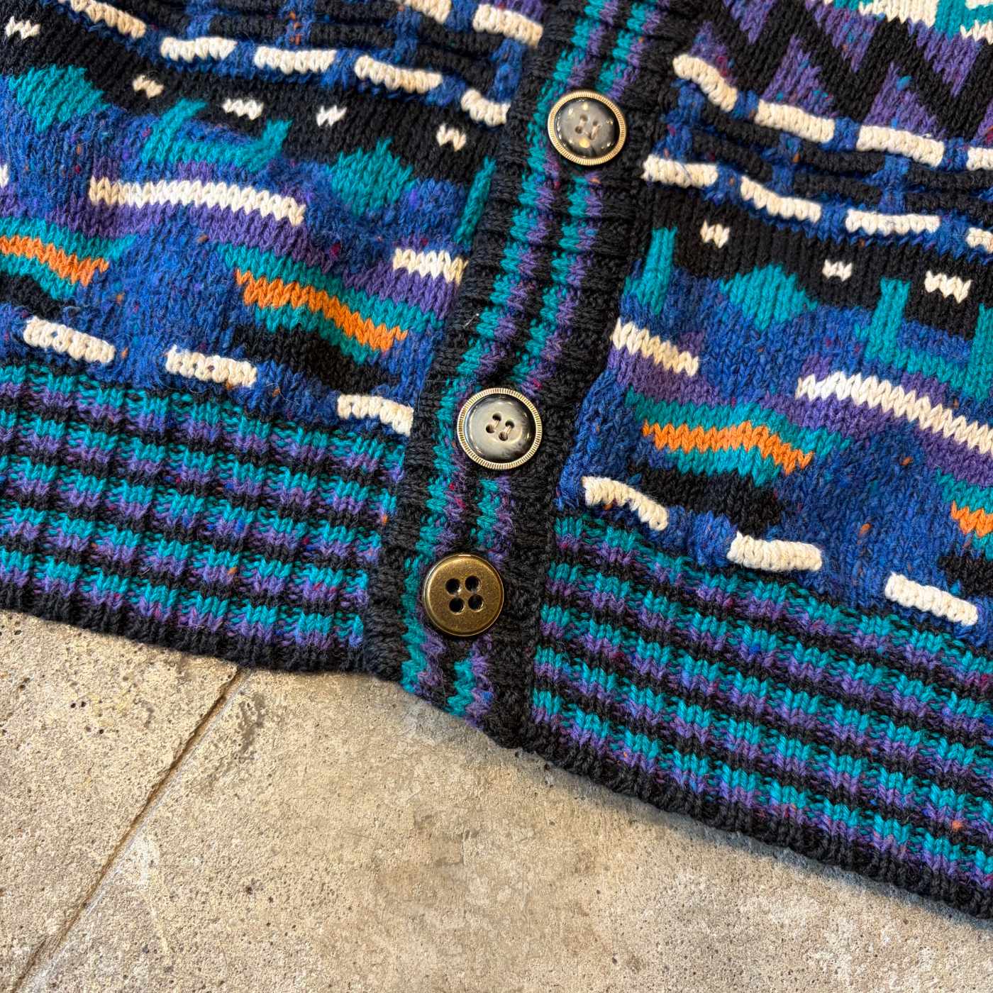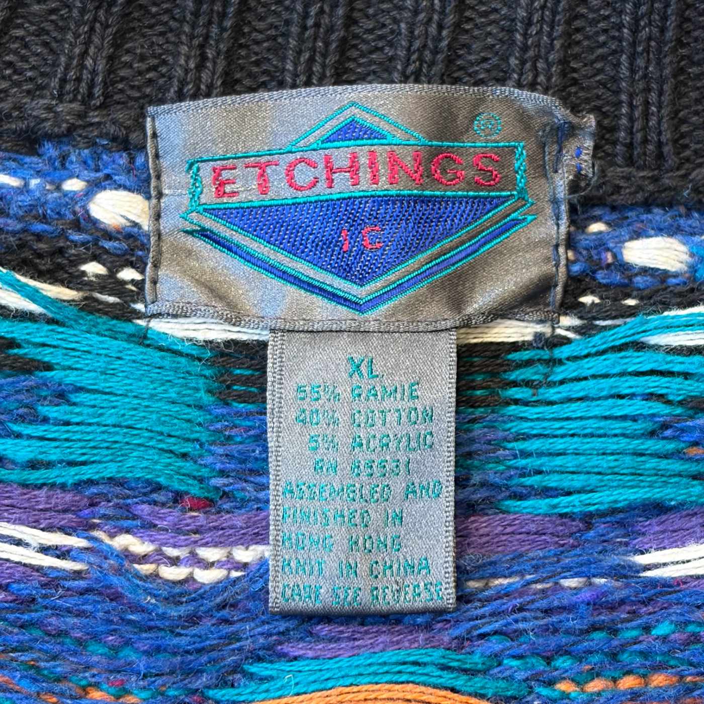 90's ETCHINGS 3D 総柄 ラミー×コットン ニット カーディガン