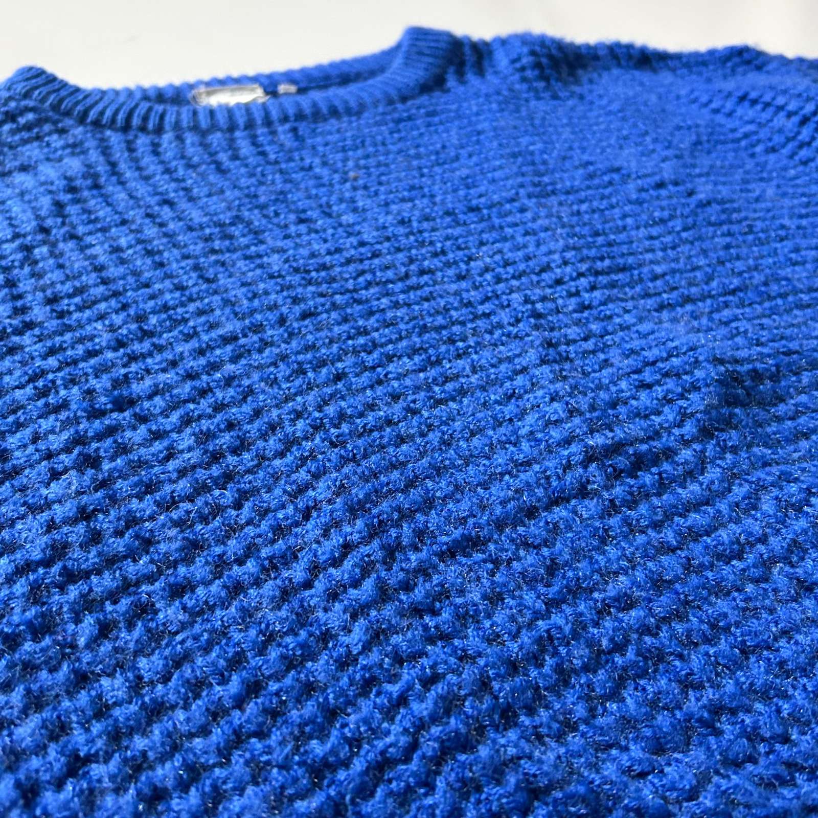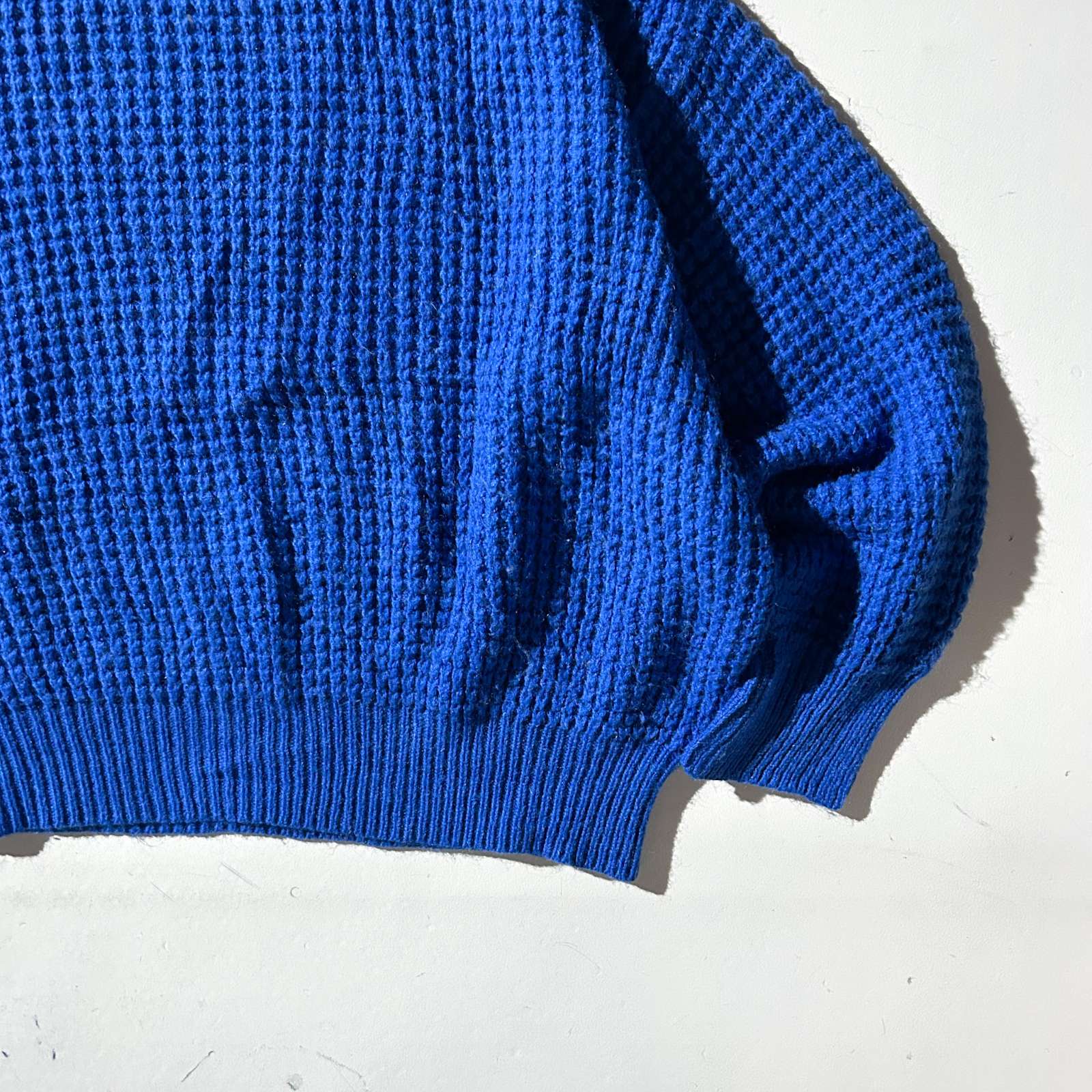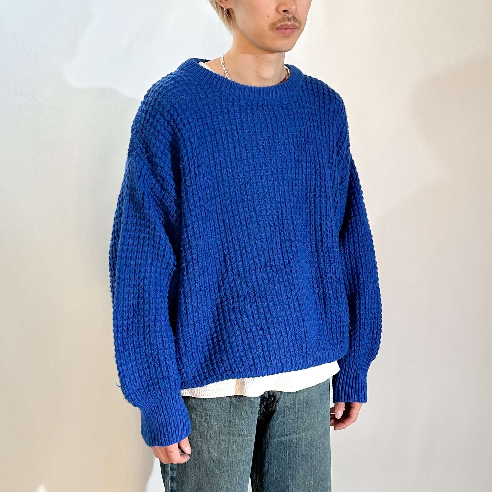 イタリア製のアクリル×ウールニットセーター。イタリア製のニットセーターといえば、アートデザインな柄が多いですがこちらは無地。ローゲージ編みでドロップショルダーの短丈というだけで価値がありますね。