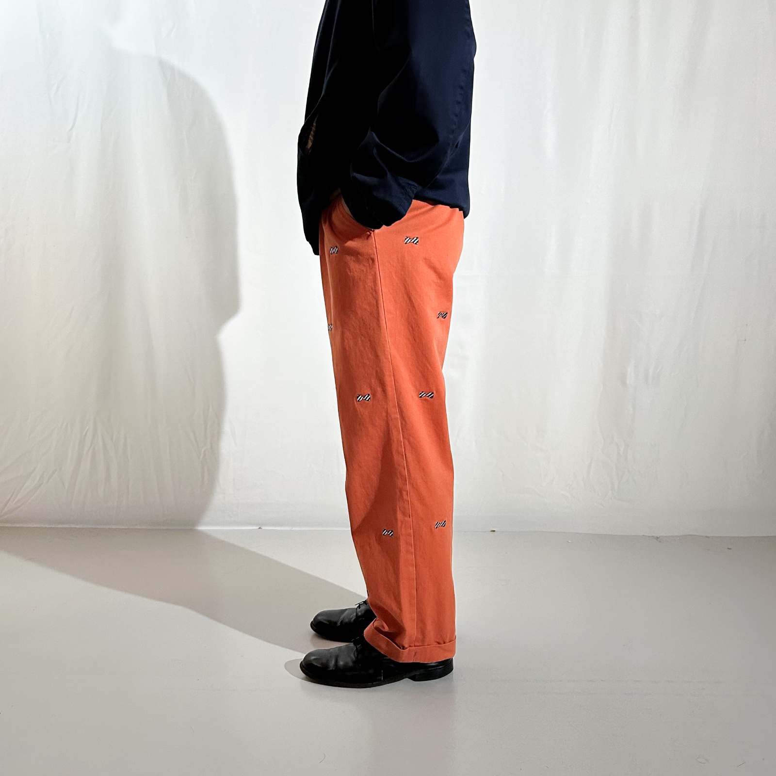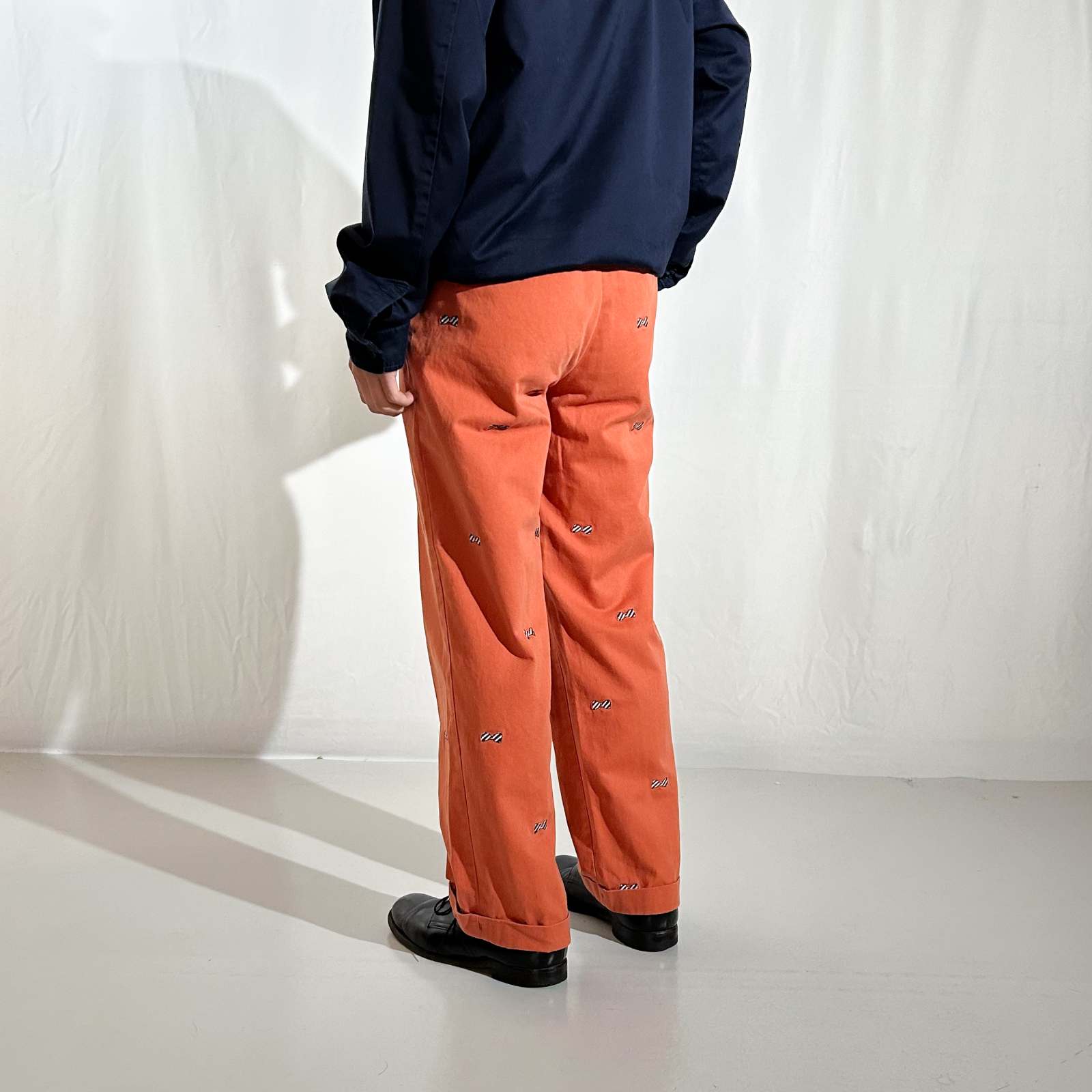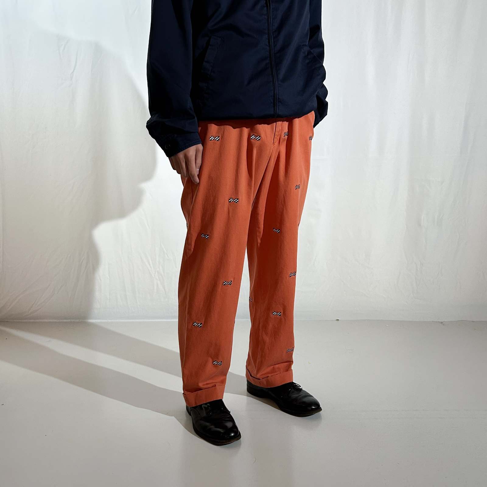 90's~ NORTHSHORE オレンジ 総柄 リボン コットン チノ パンツ