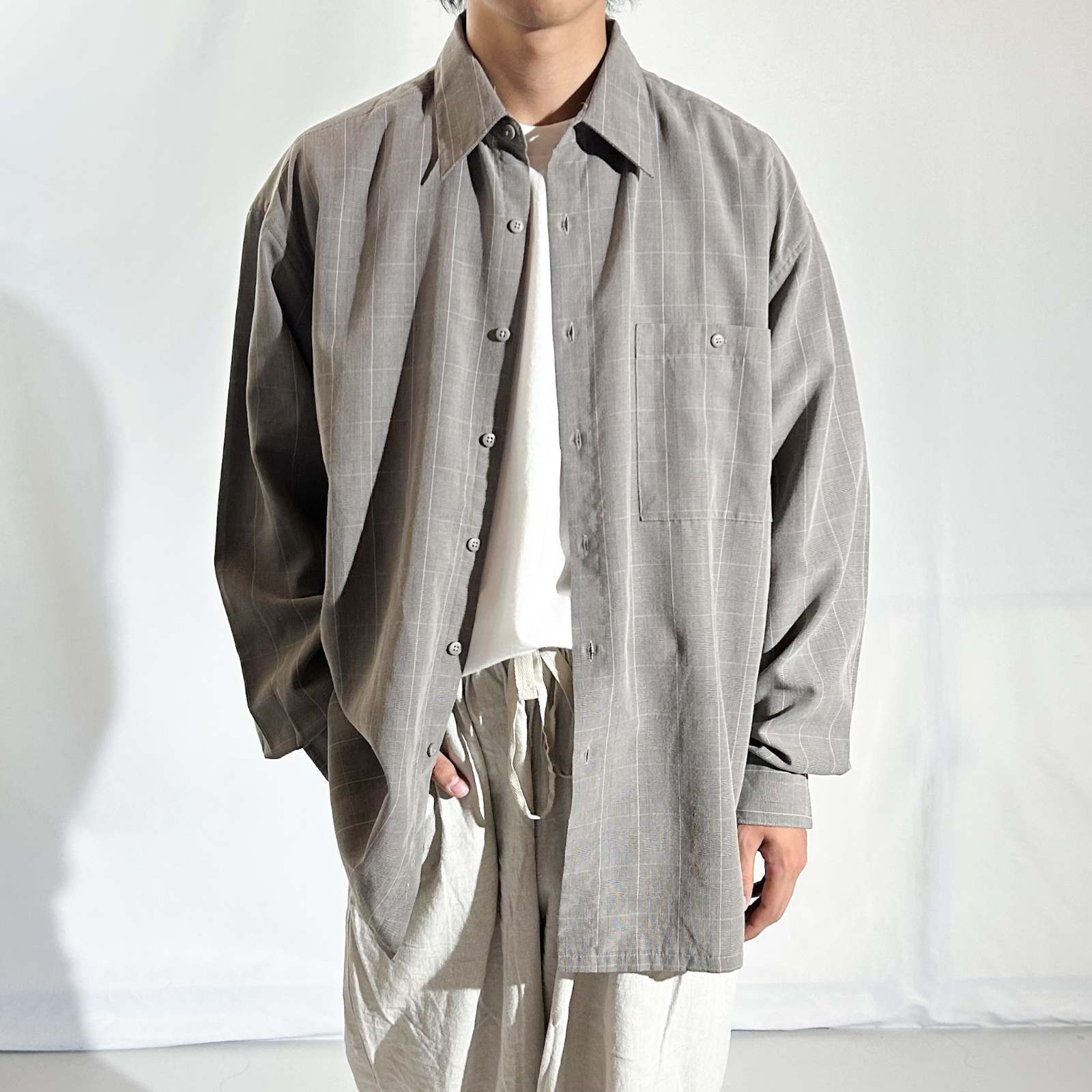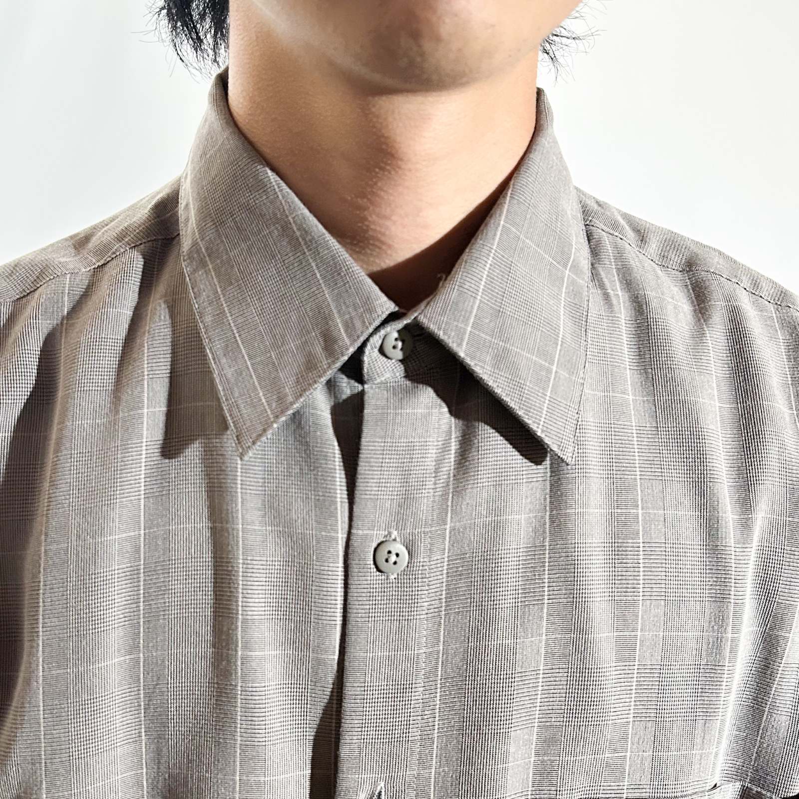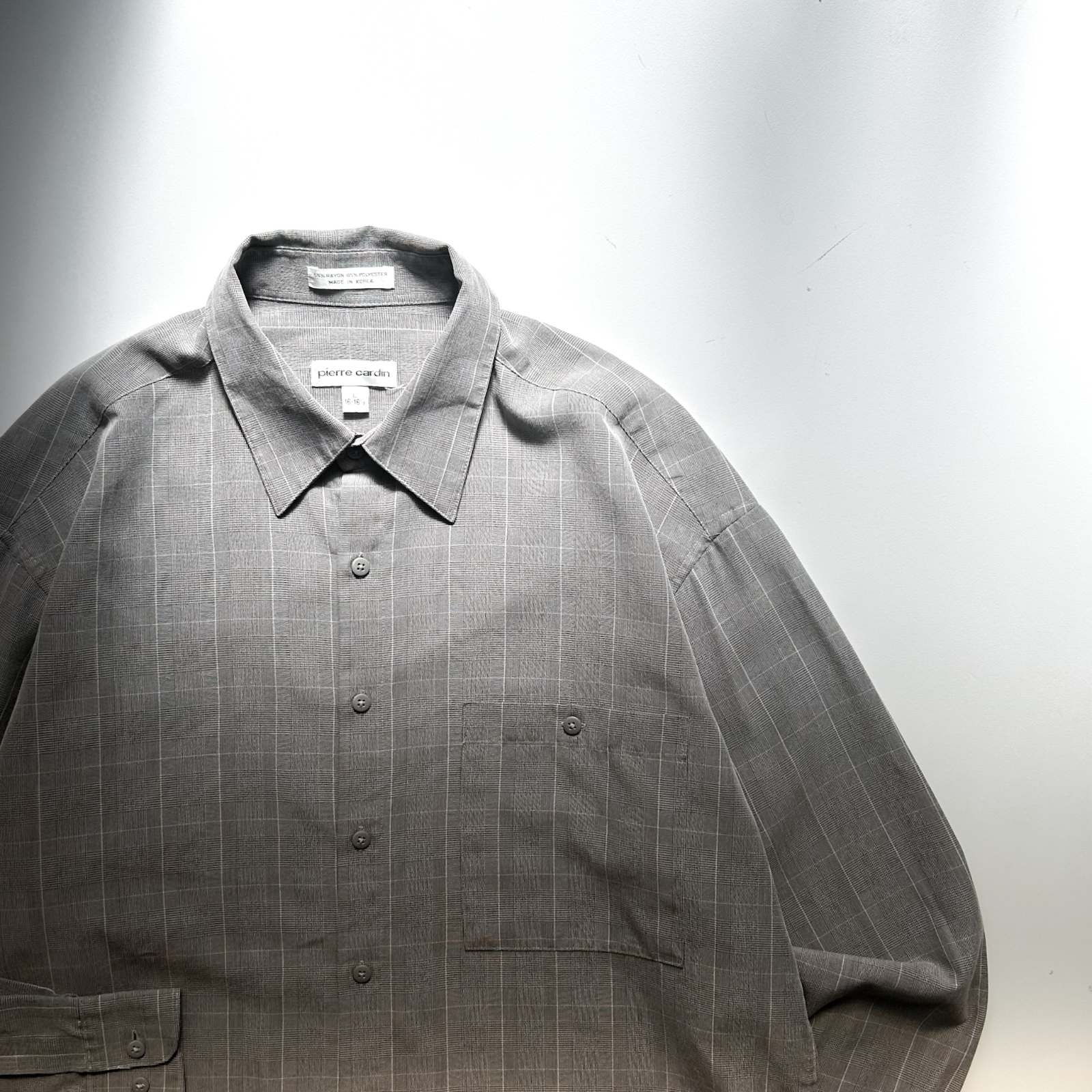 90's pierre cardin レーヨン×ポリエステル チェック レギュラーカラー L/Sシャツ