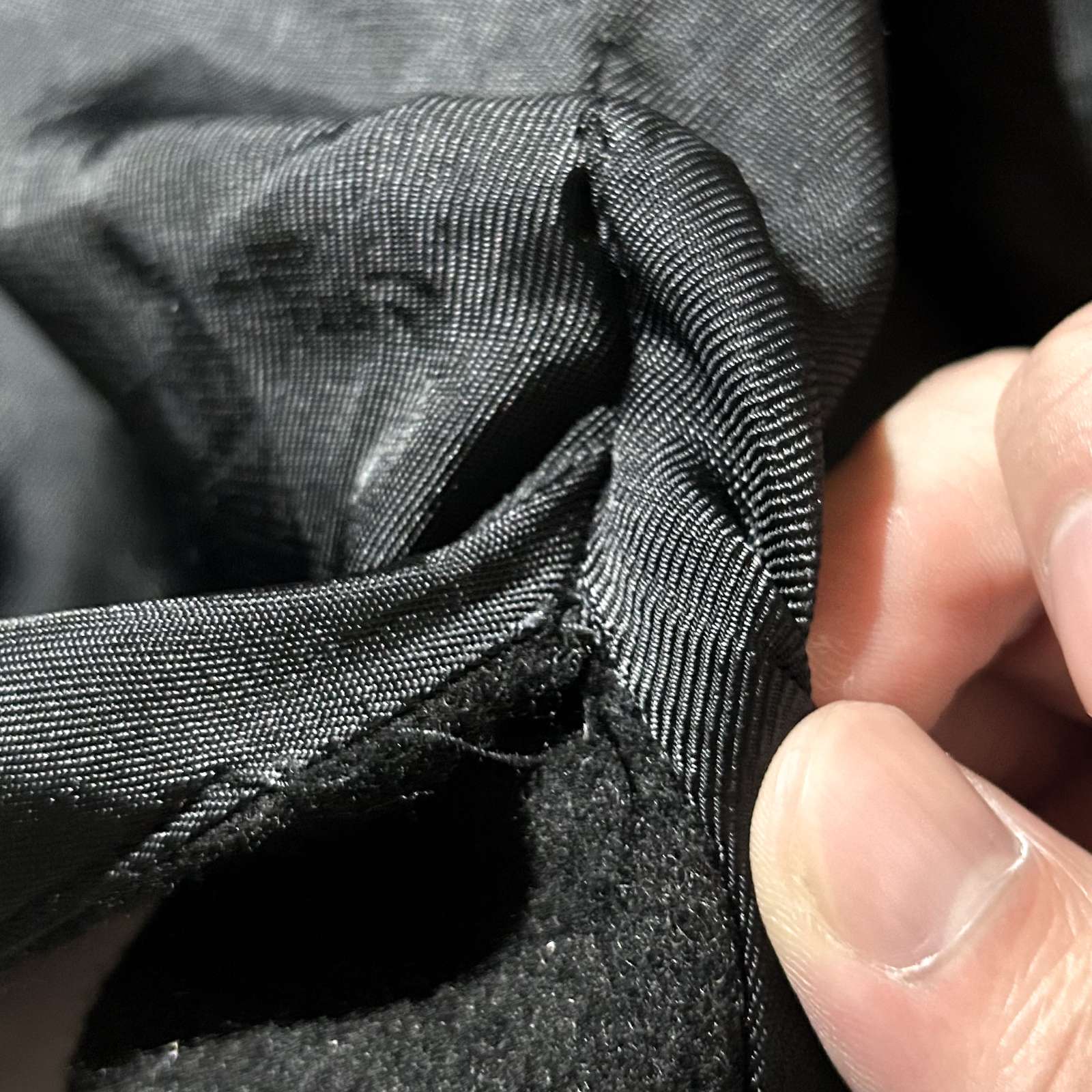 Bランク 裾裏地若干ほつれ、第一ボタンリペアが見られます