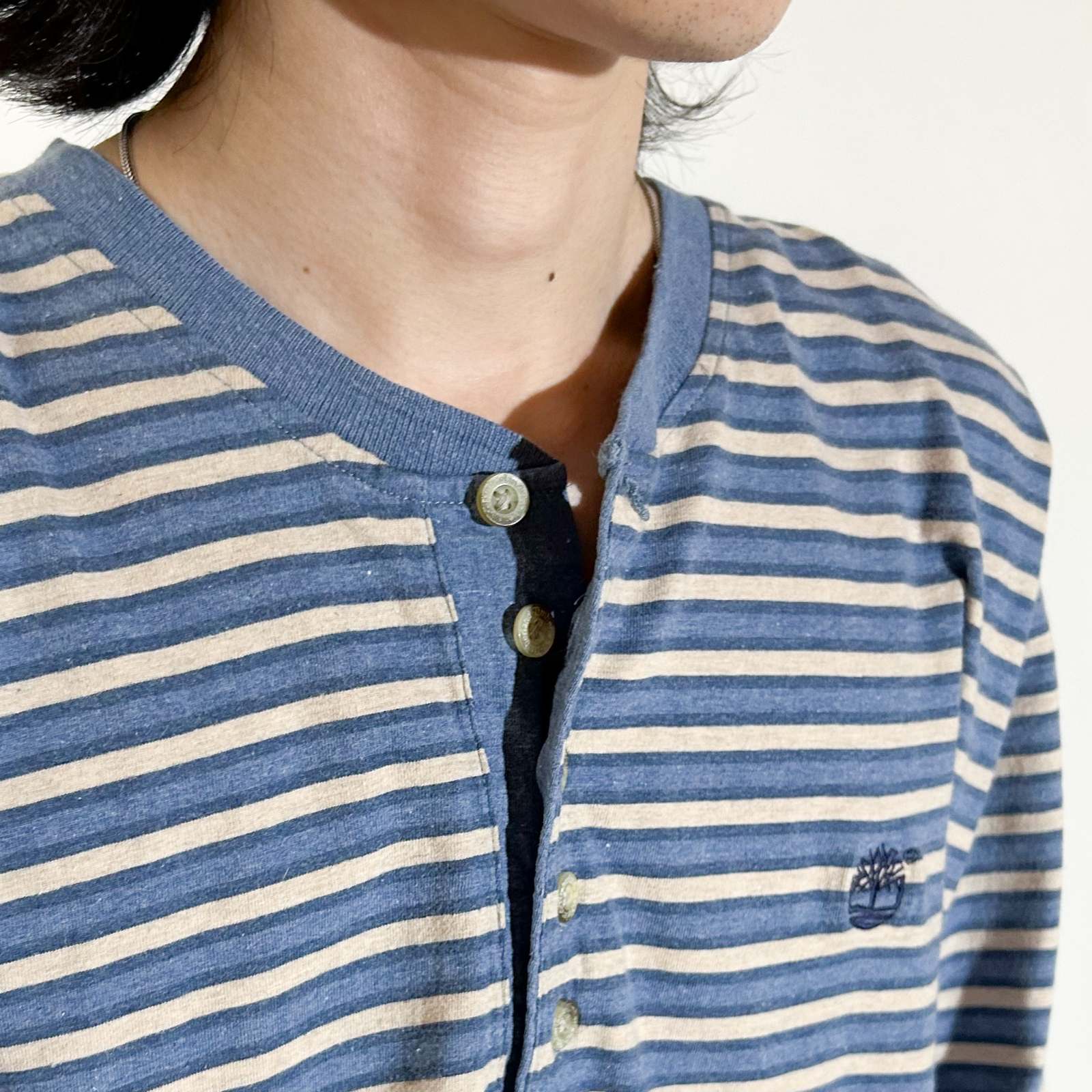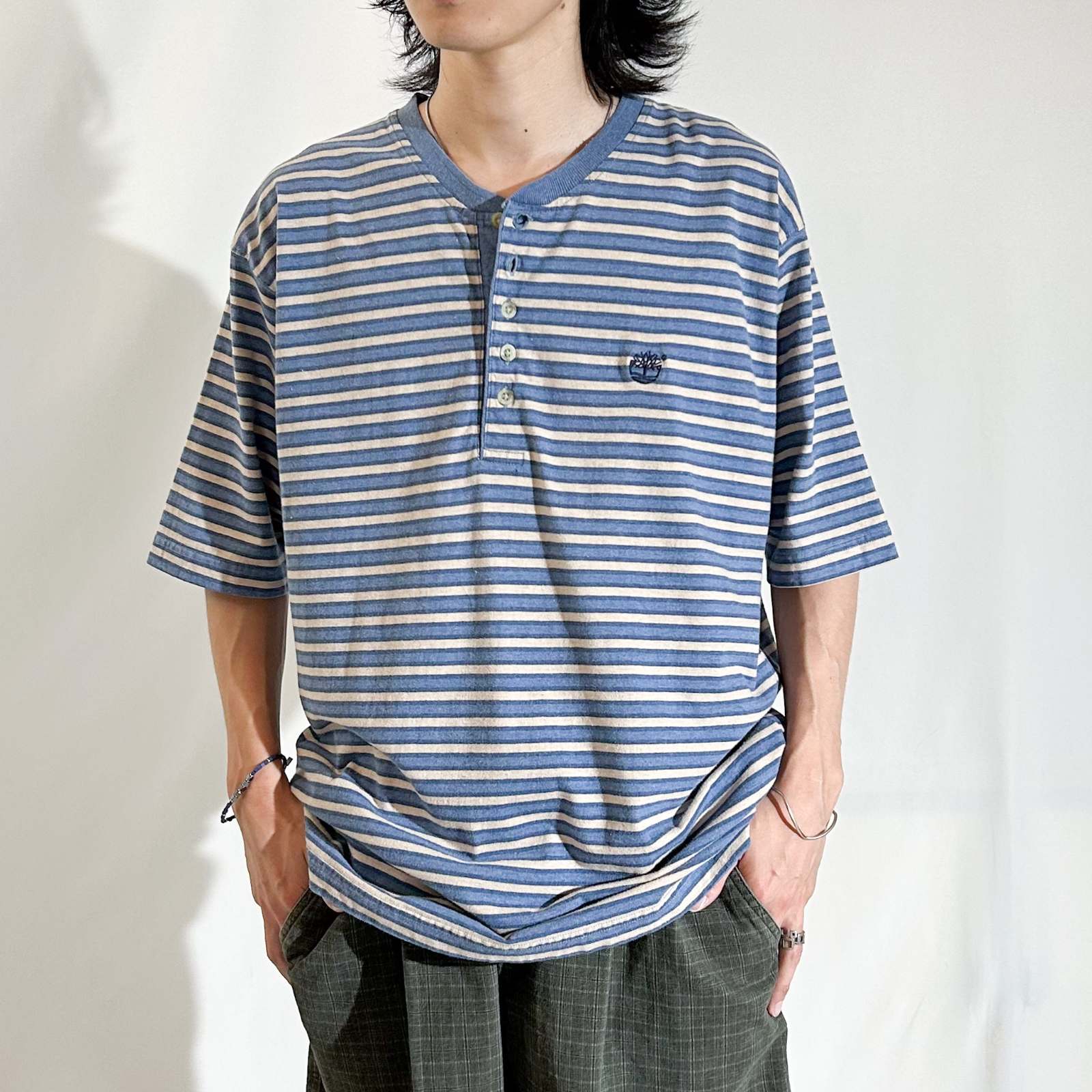 90's~ Timberland ボーダー ヘンリーネック Tシャツ