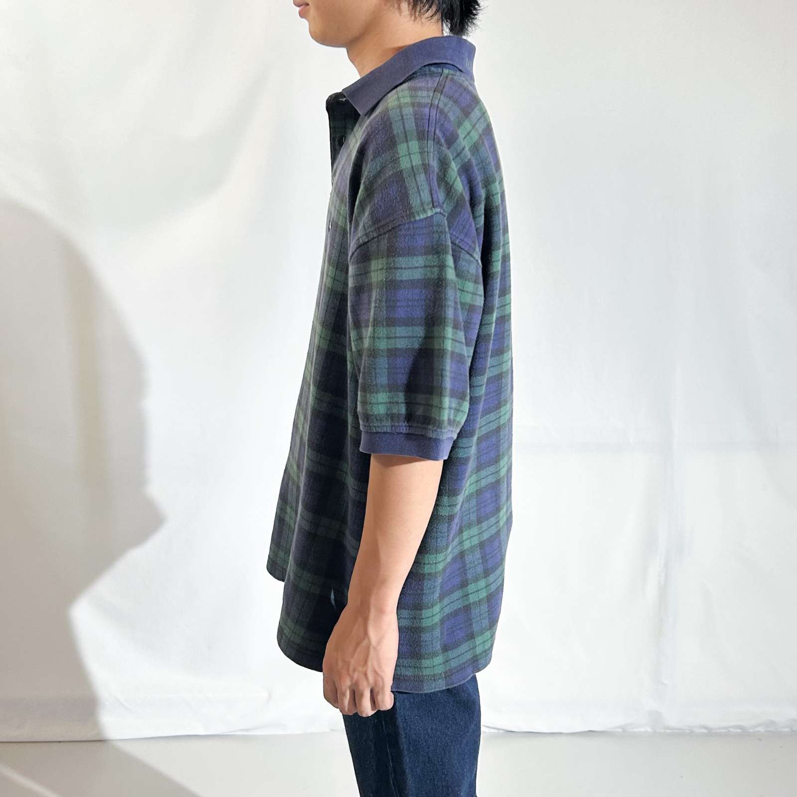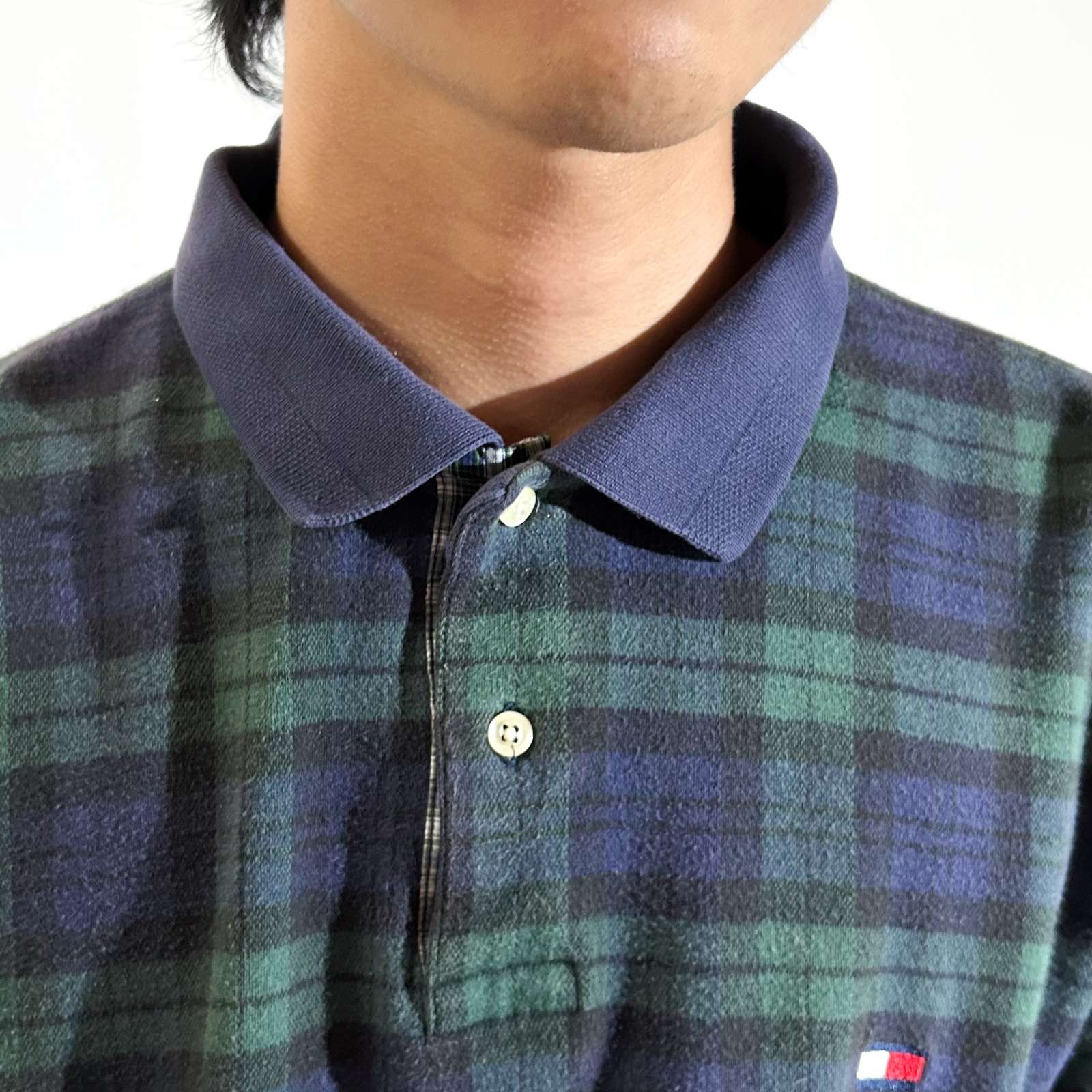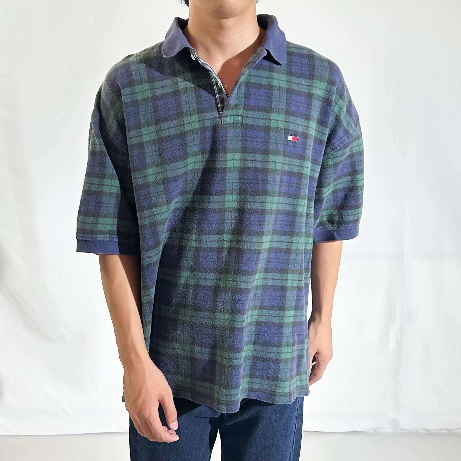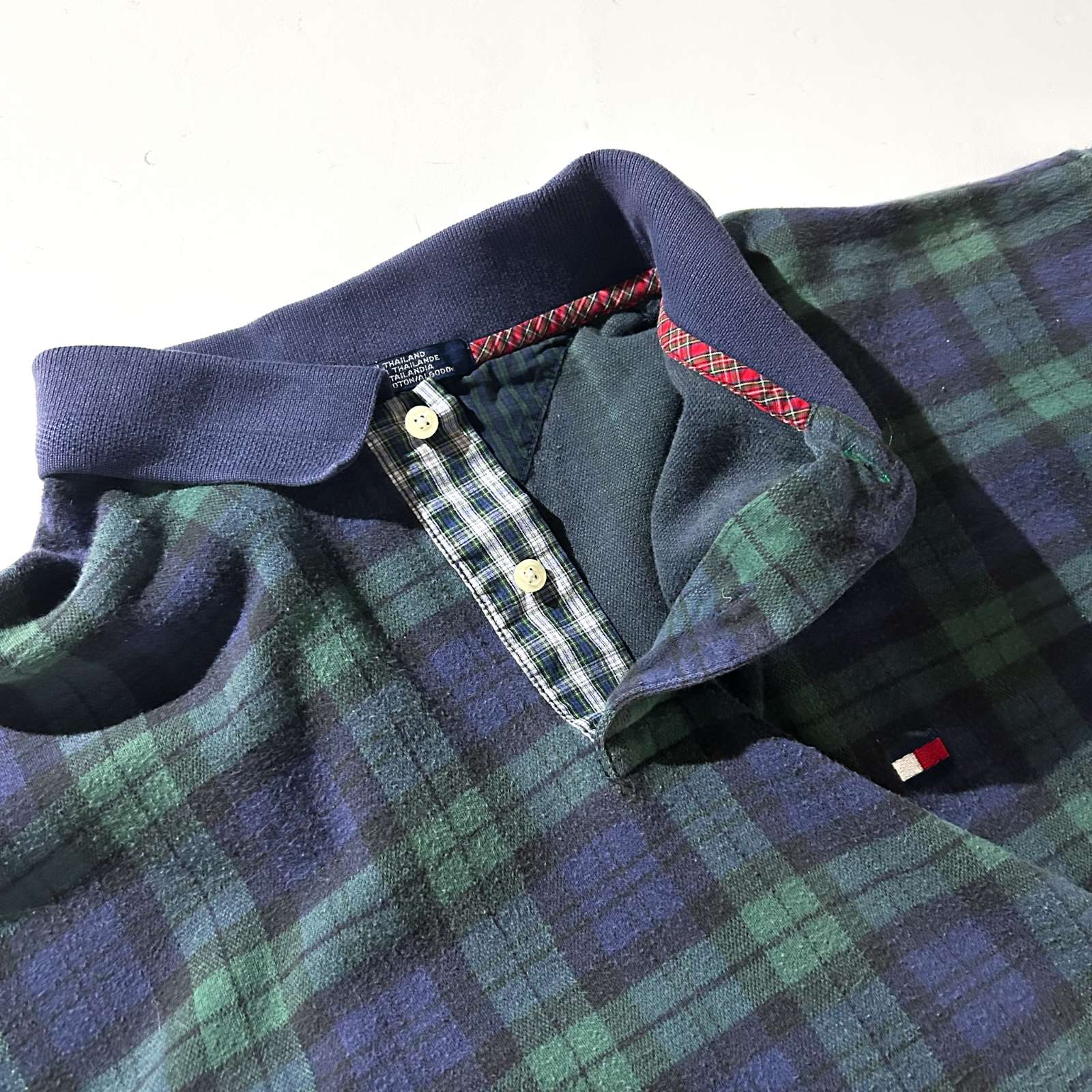 90's TOMMY HILFIGER 短丈 ブラックウォッチ S/Sポロシャツ