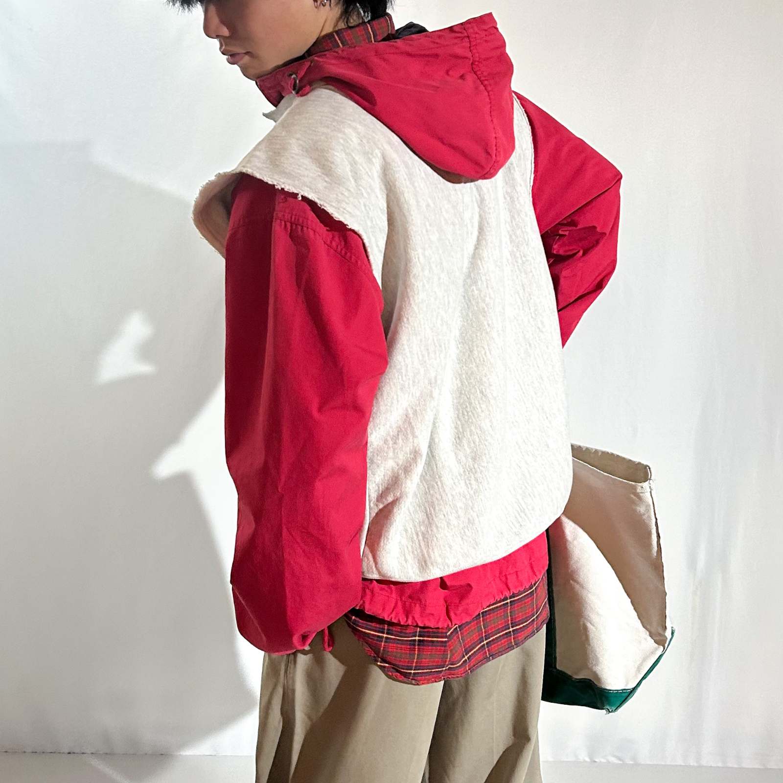 Cランク 首元シミ・ダメージ、タグ欠損、袖ステッチを残してカットオフしているのでほつれる心配はございません