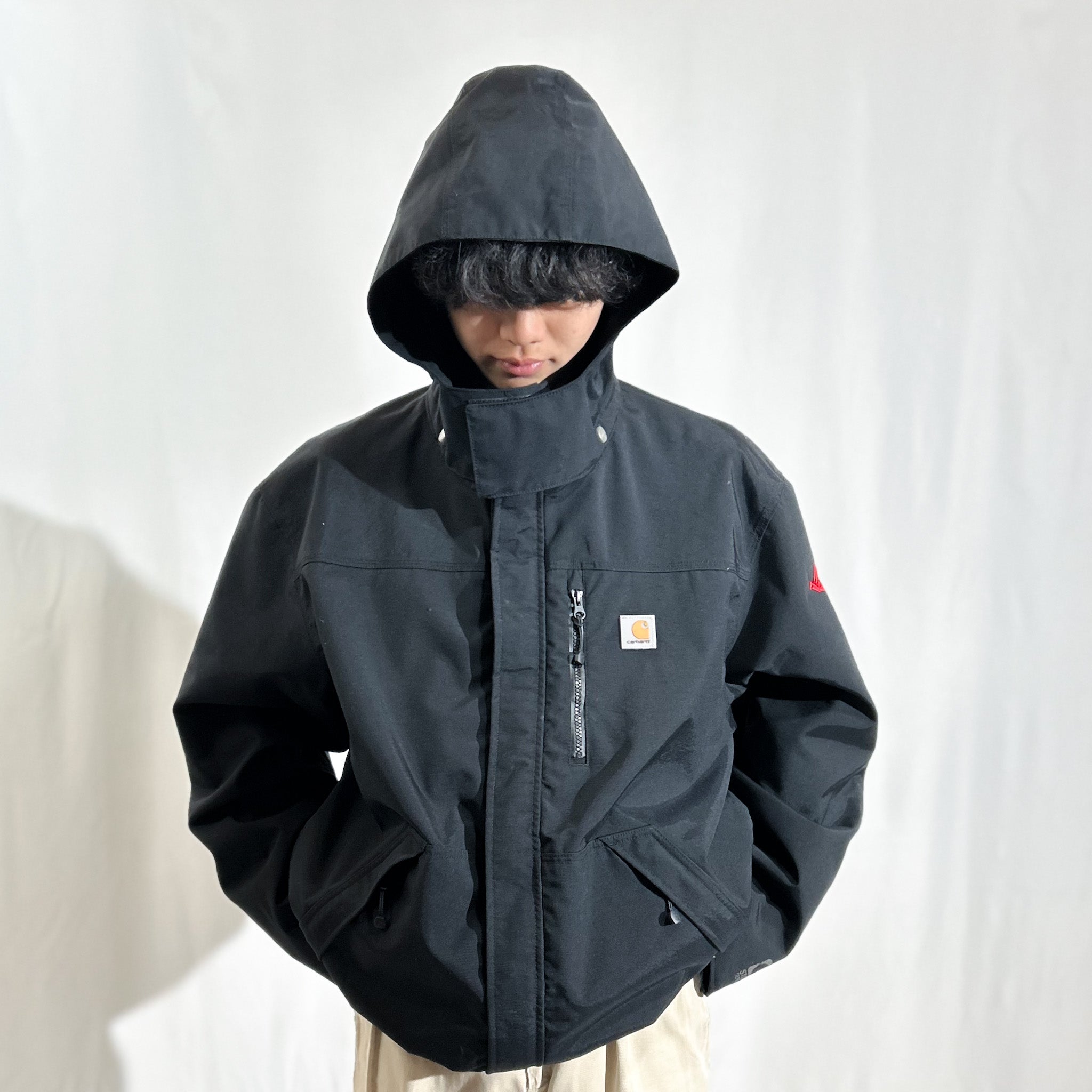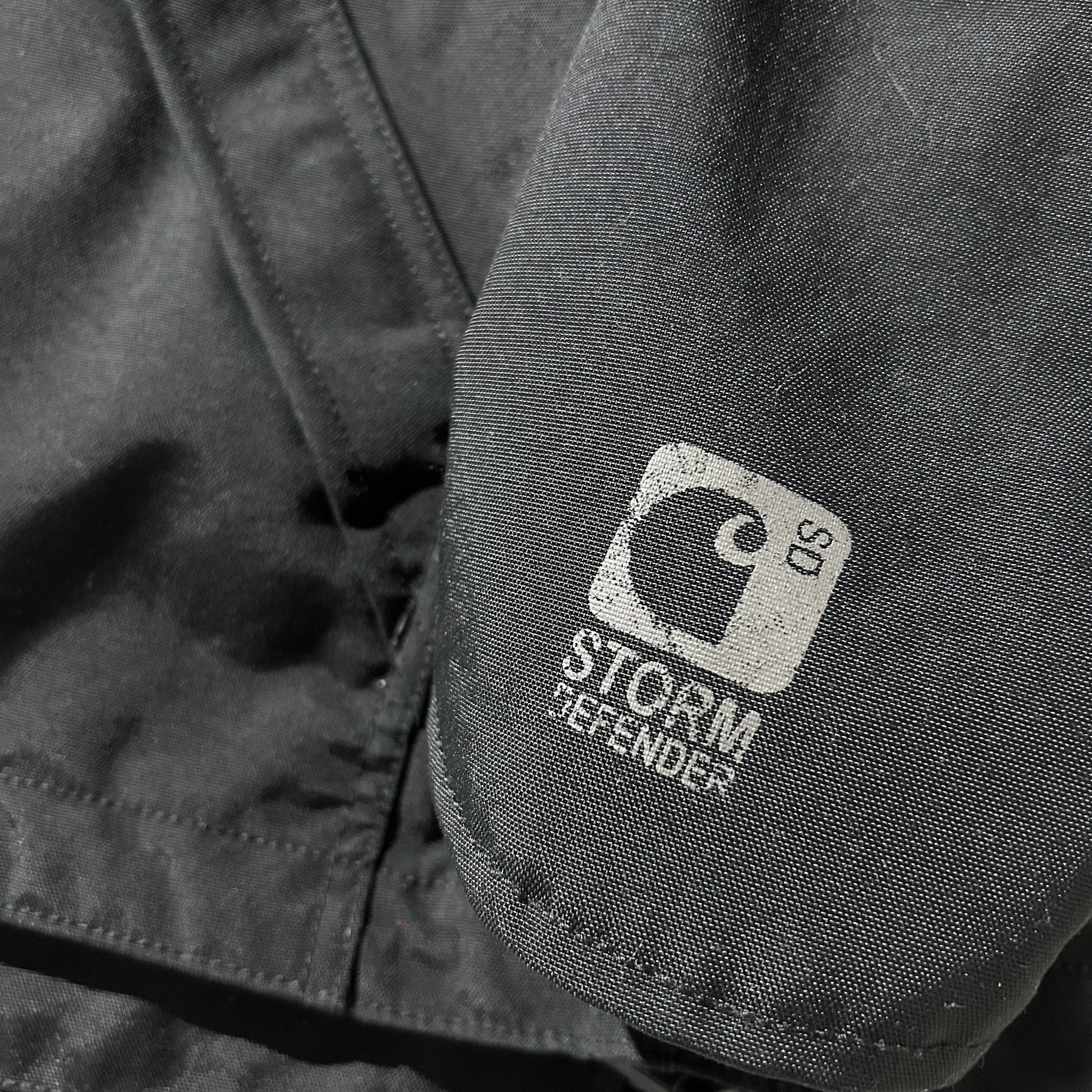 Carhartt "Storm Defender" ブラック 裏メッシュ ドローコード フーデッド ナイロン シェル ジャケット
