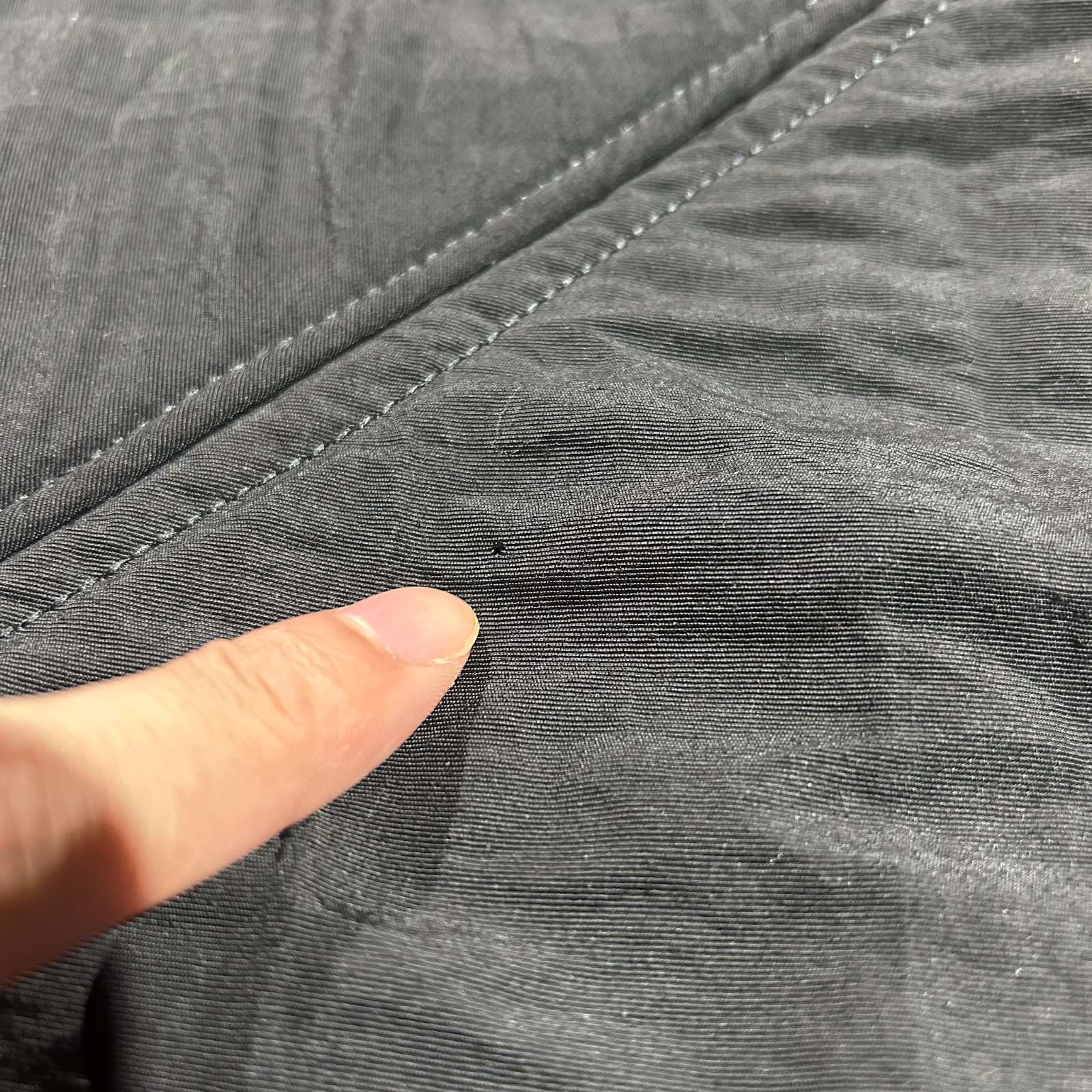 Bランク 後ろ小穴、右袖口パイピングダメージ、裾付近使用感、裾裏ステッチ抜けが見られます