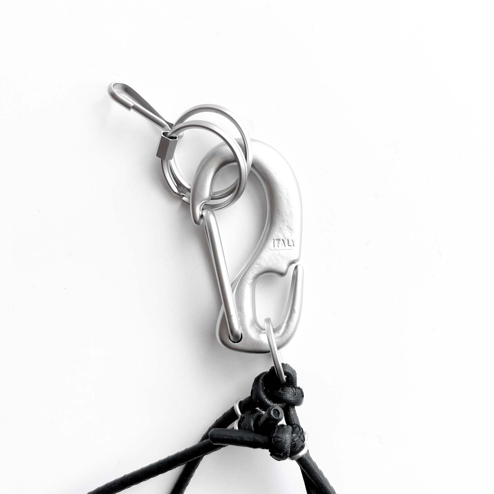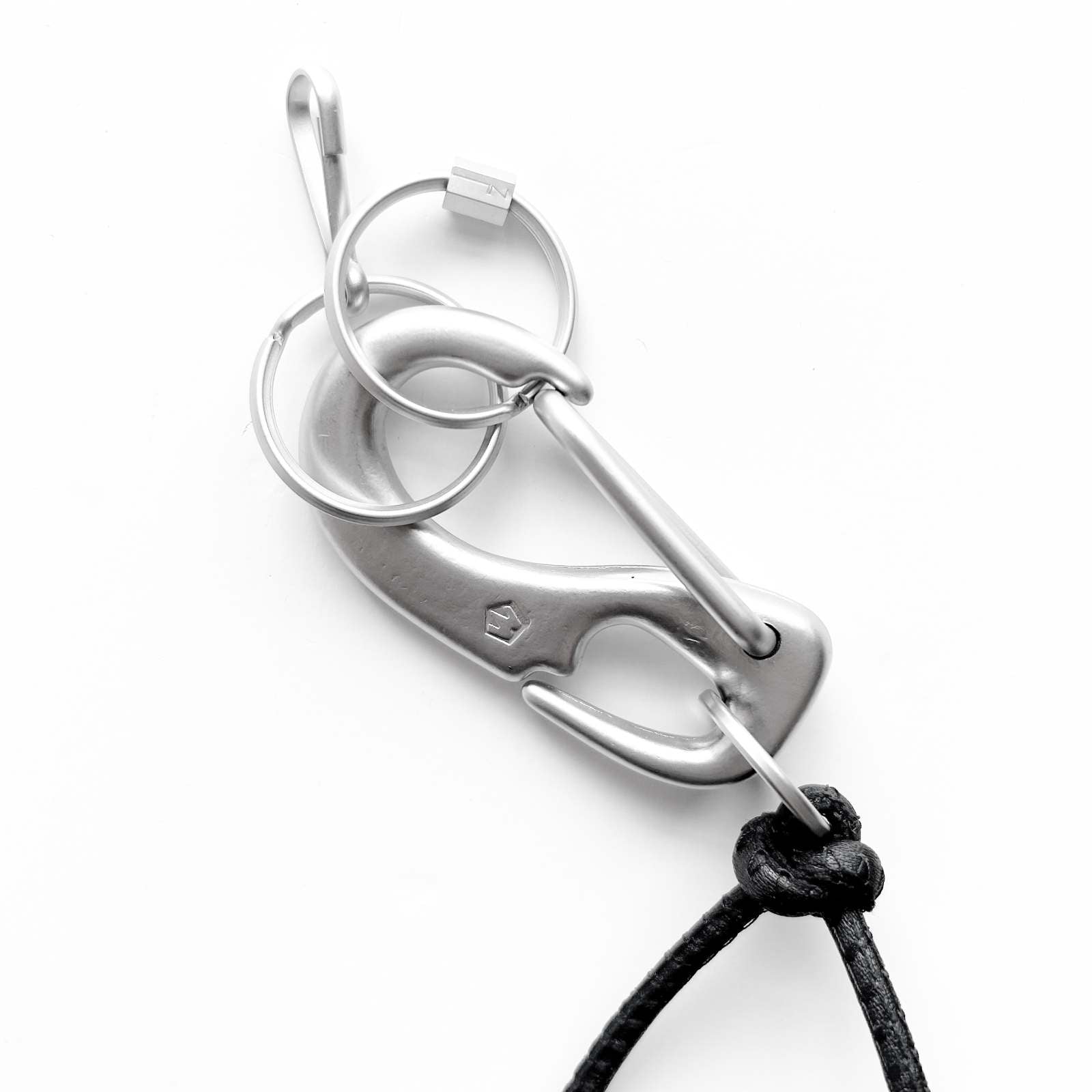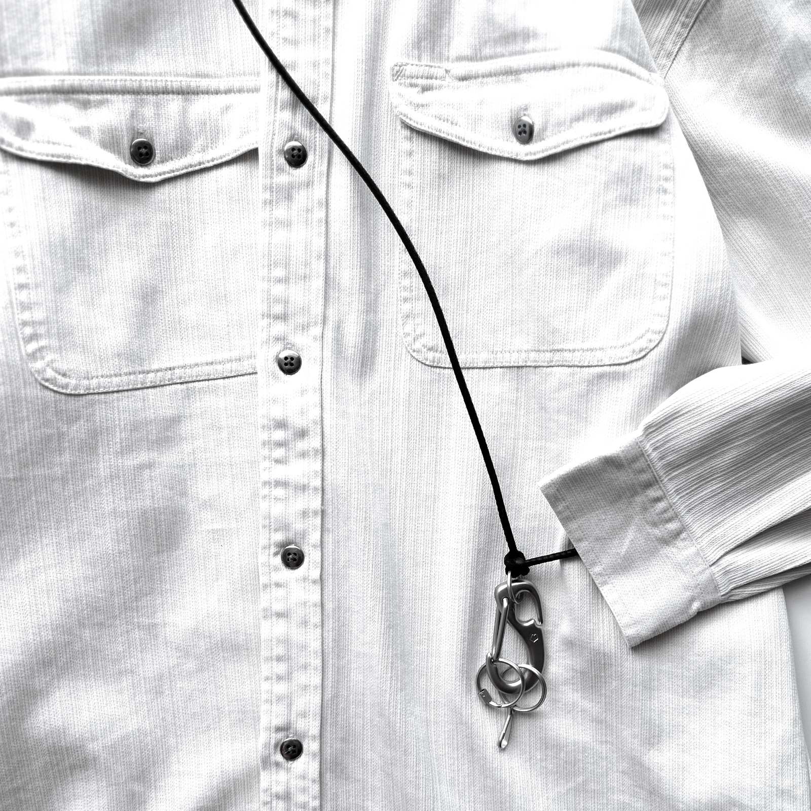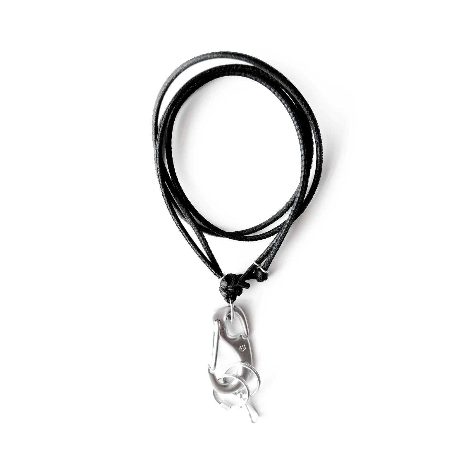 特大のwichardカラビナを使用。Silasよりも1mm太いレザーコードに円周は5cm長い仕様。