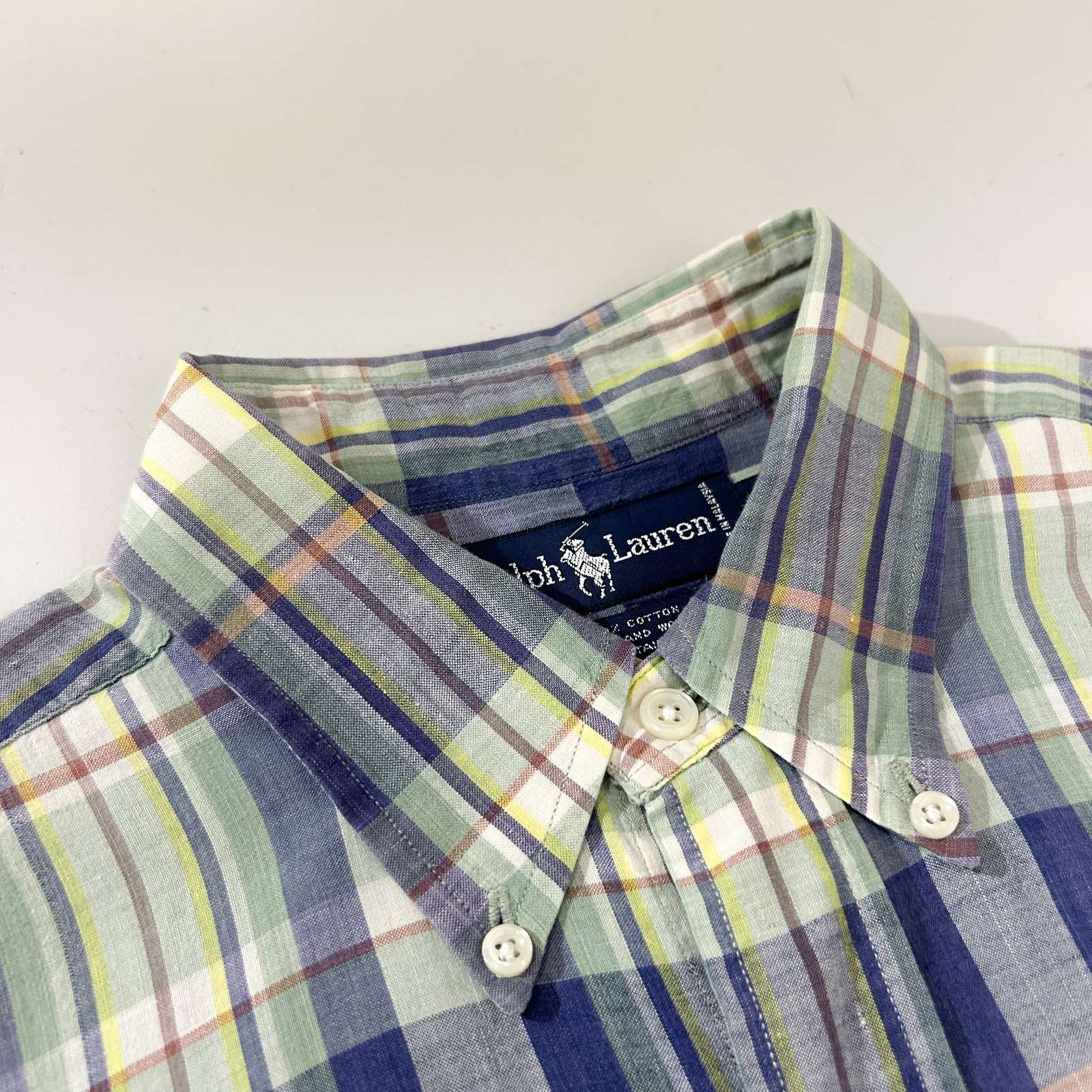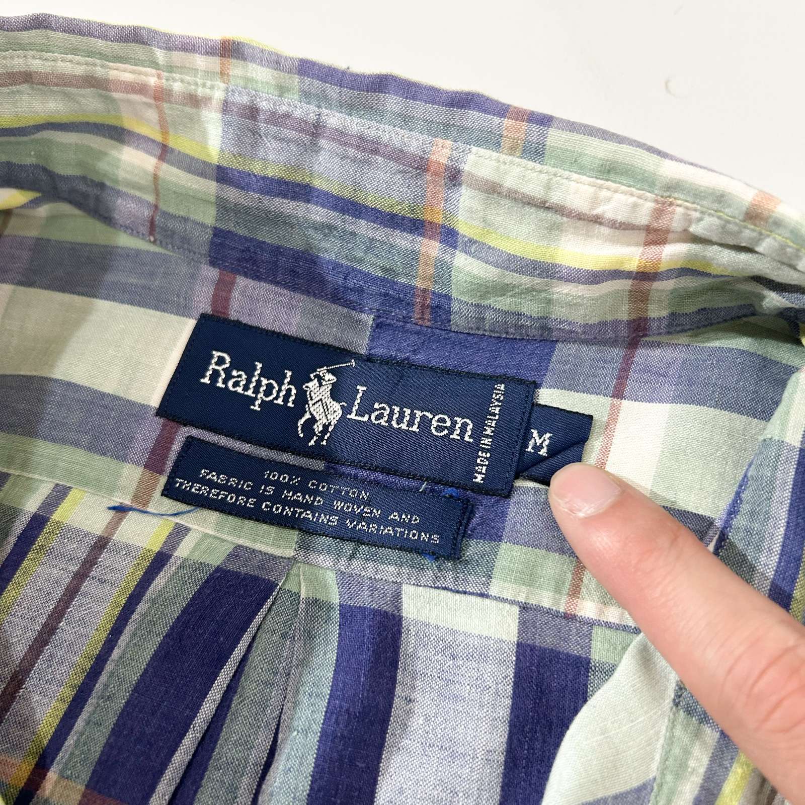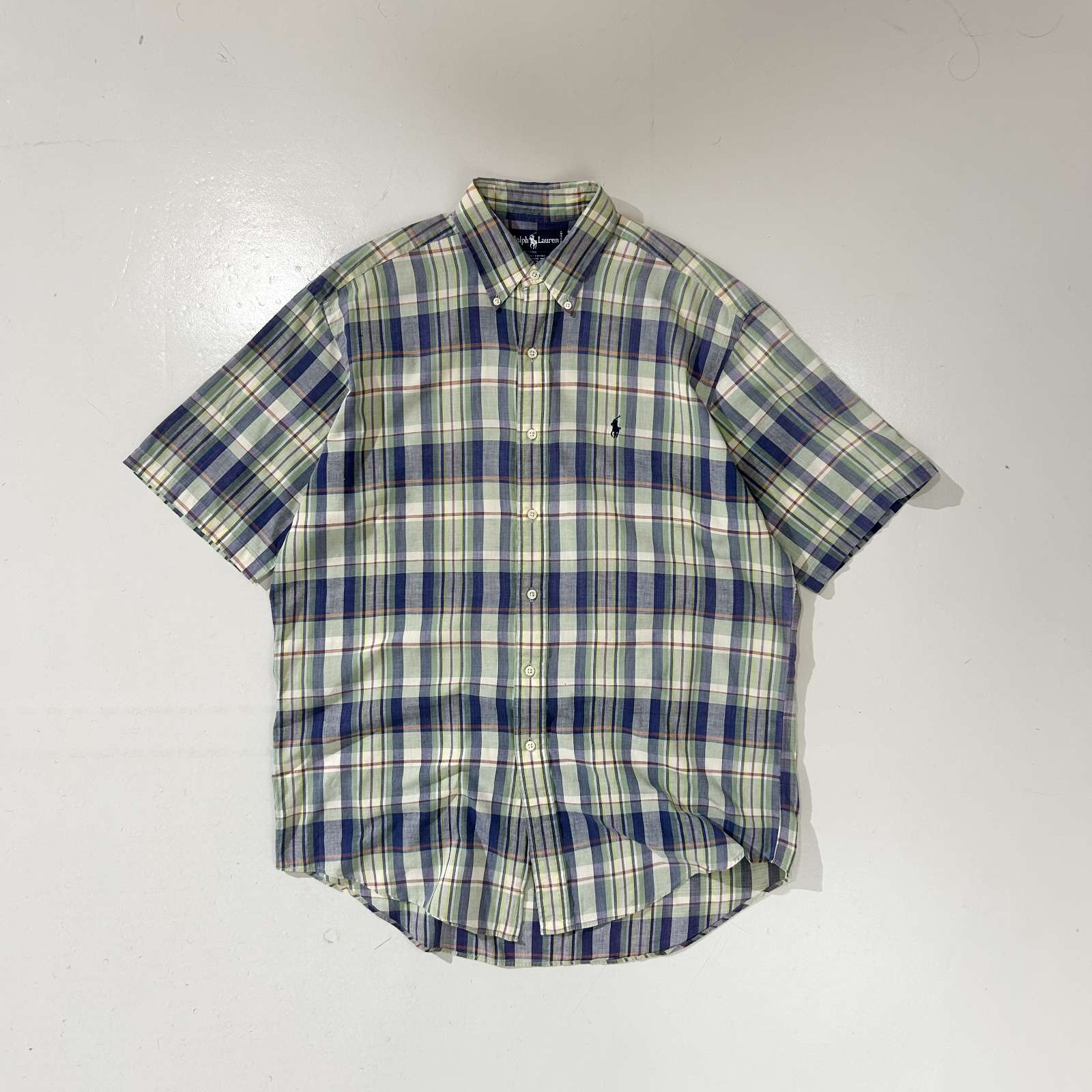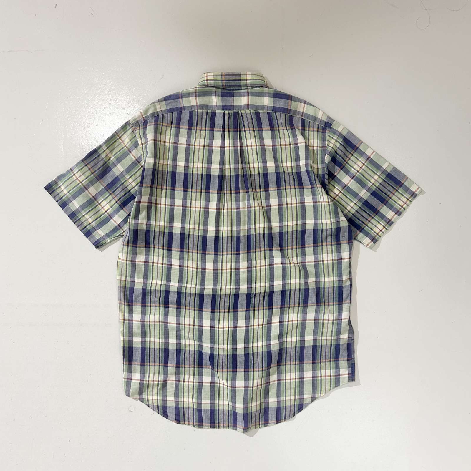 OLD Ralph Lauren "HAND WOVEN" ボタンダウン チェック S/S シャツ(ブルー×グリーン)