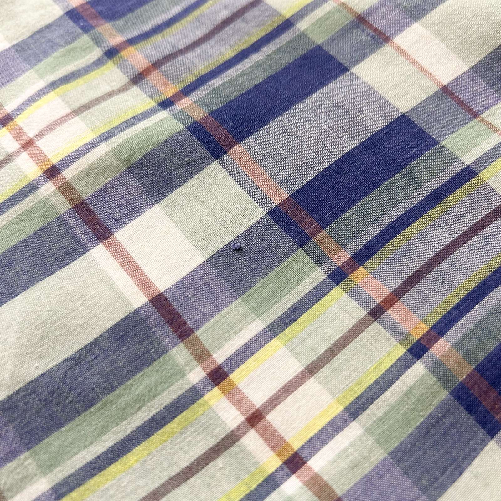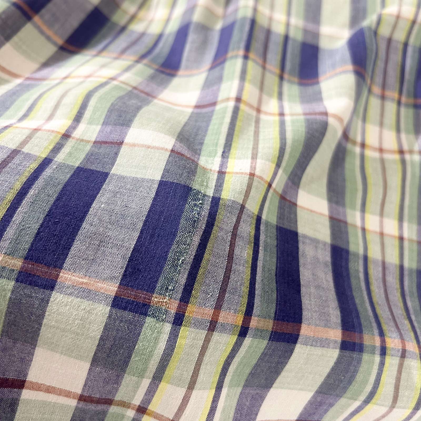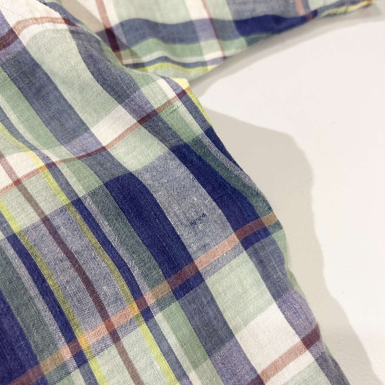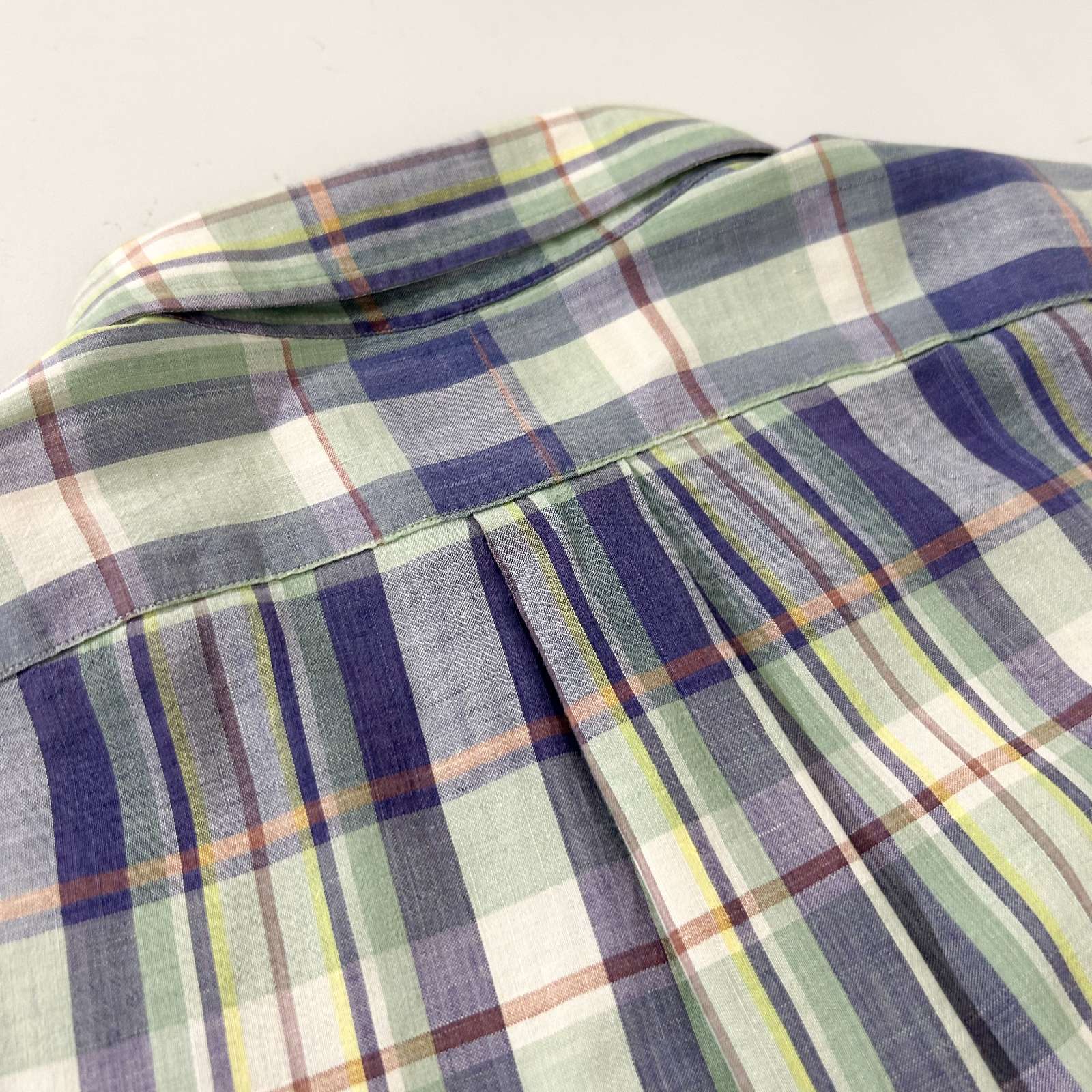 OLD Ralph Lauren "HAND WOVEN" ボタンダウン チェック S/S シャツ(ブルー×グリーン)