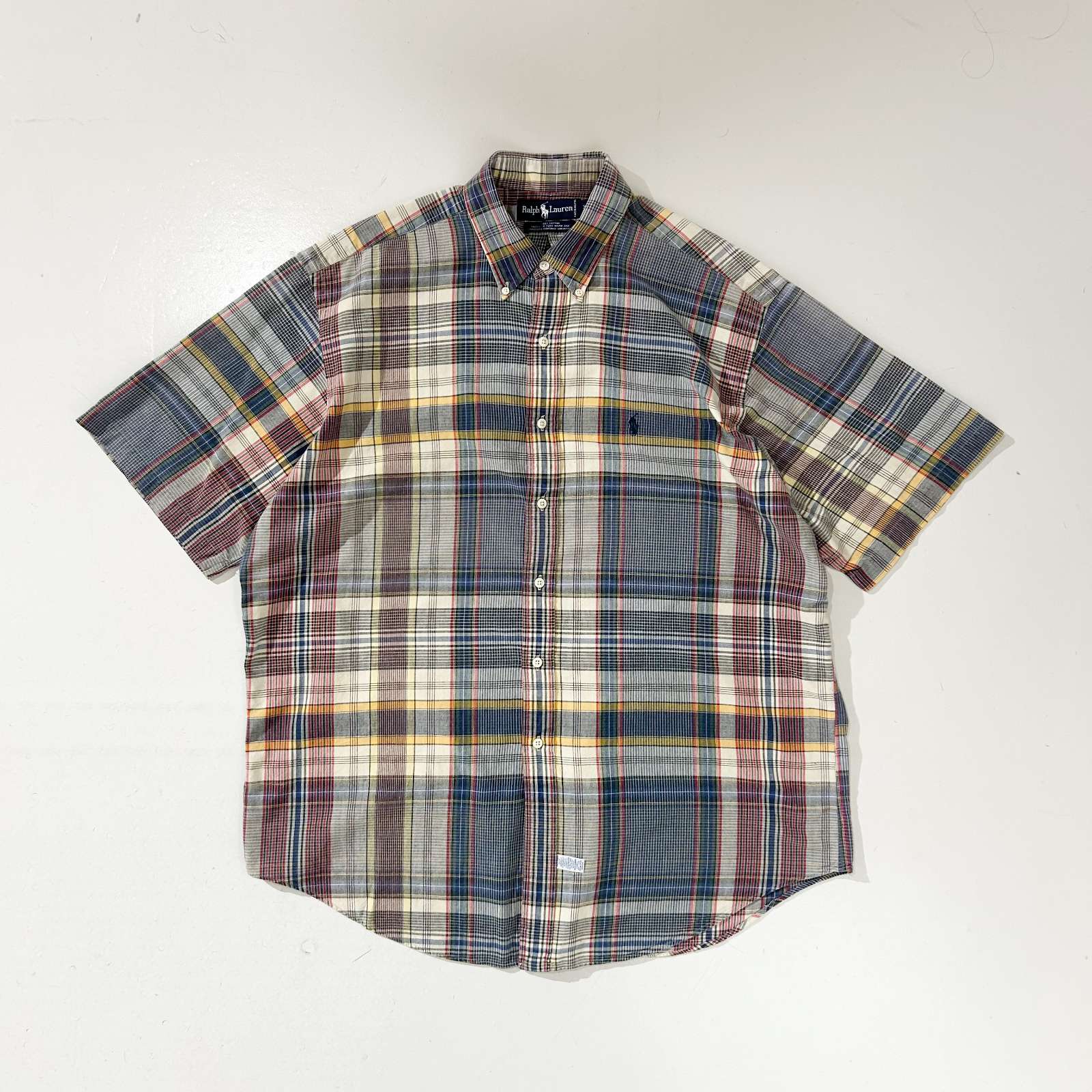 OLD Ralph Lauren "HAND WOVEN" ボタンダウン チェック S/S シャツ(ブルー×レッド)