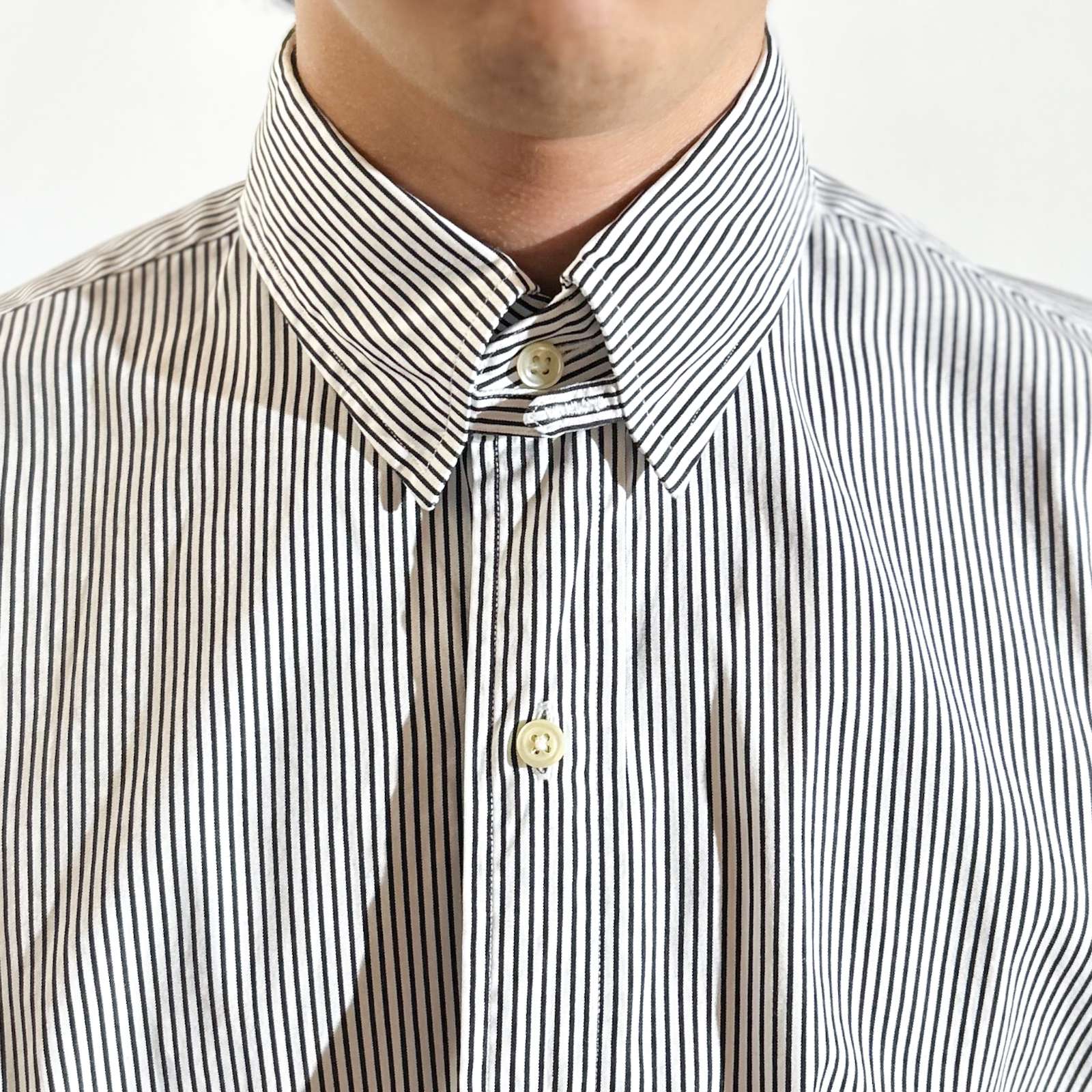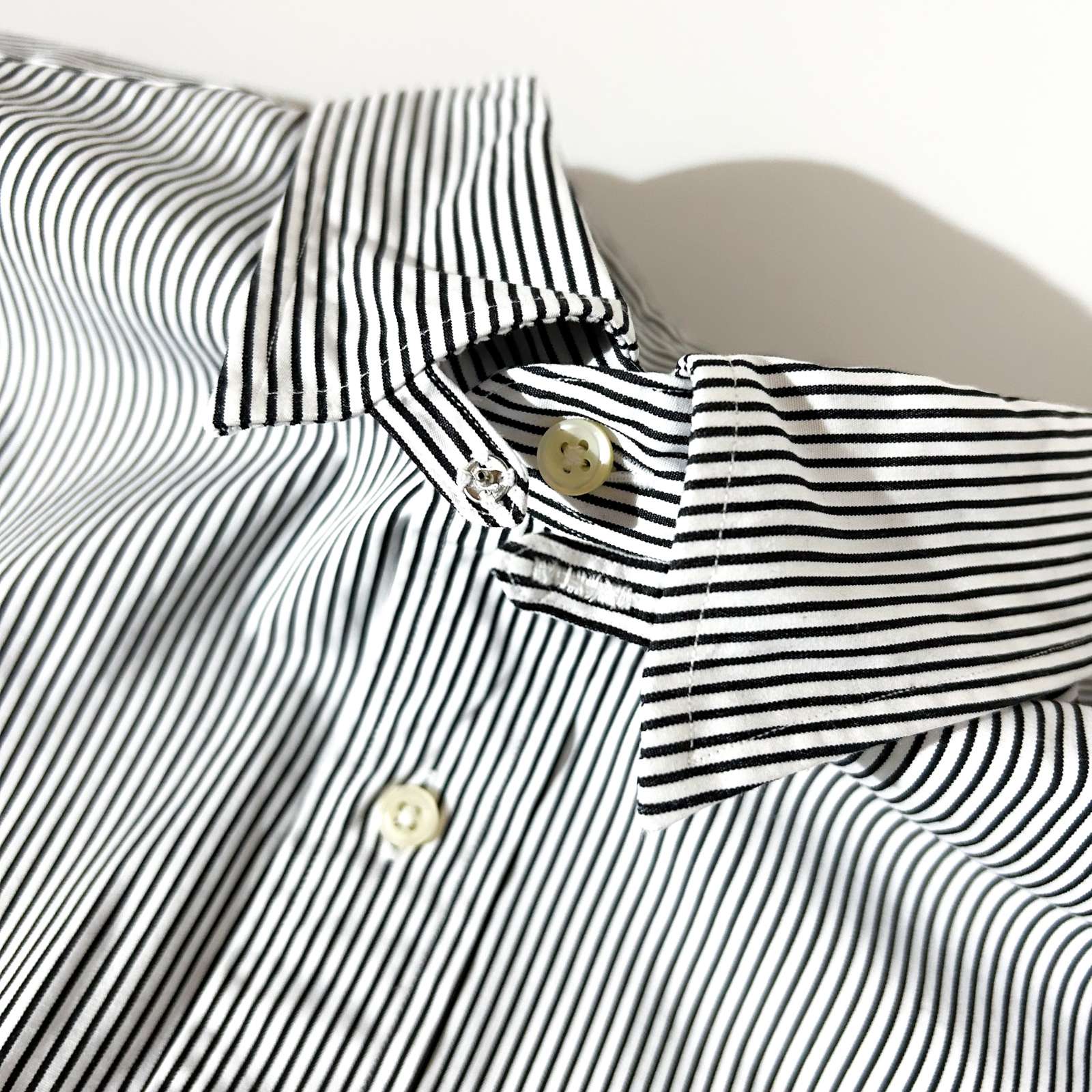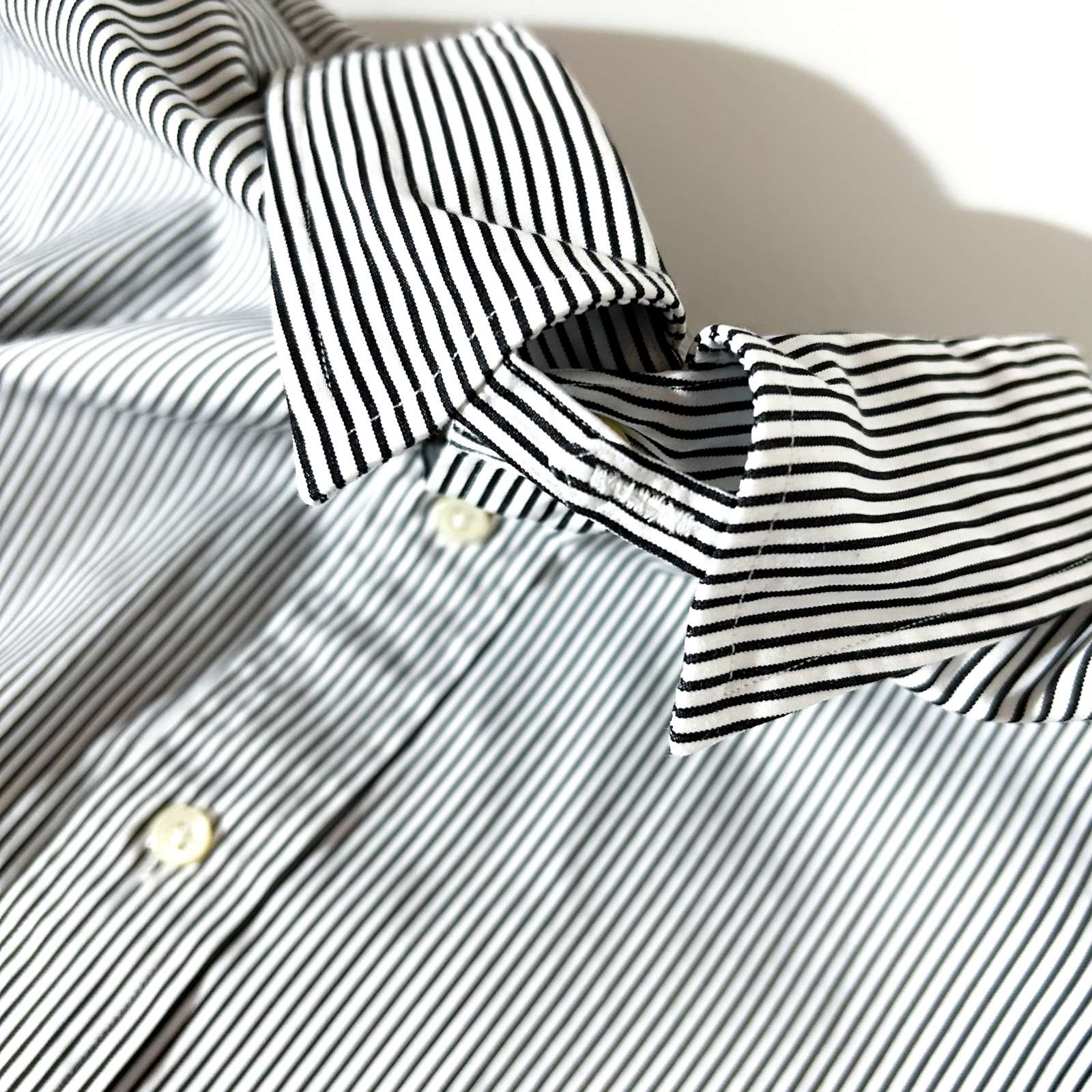 ラルフローレンの「カスタムフィット」モデルから、“あれ?”と目を引く珍しいディテールのアイテムが入荷しました。通常のカスタムフィットではボタンダウン仕様が主流ですが、こちらはレギュラーカラー。そして襟元にはチンストラップのようなギミックが施されたユニークな仕様。 カスタムフィットらしく、身幅は適度にシェイプされつつも窮屈さのない絶妙なバランス。