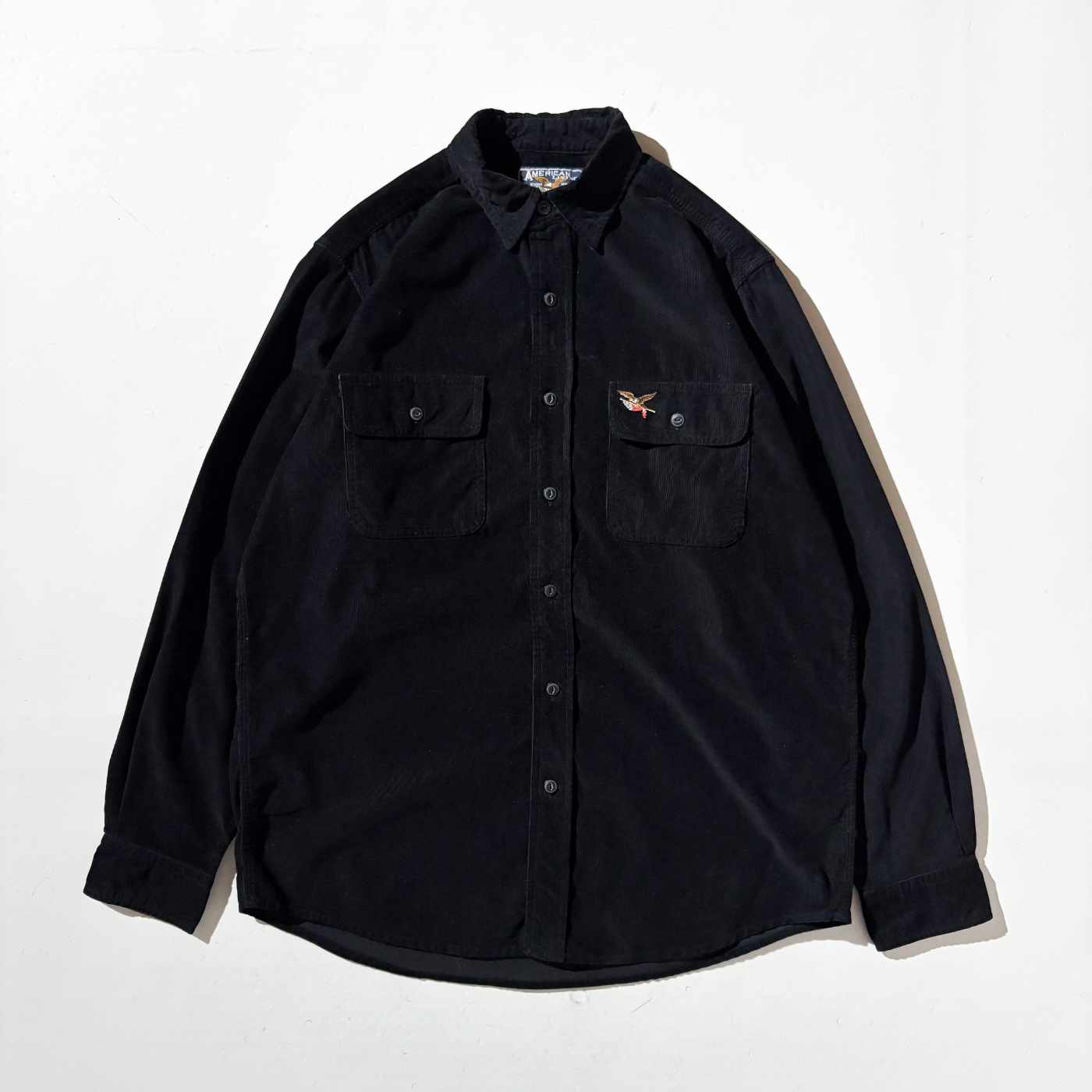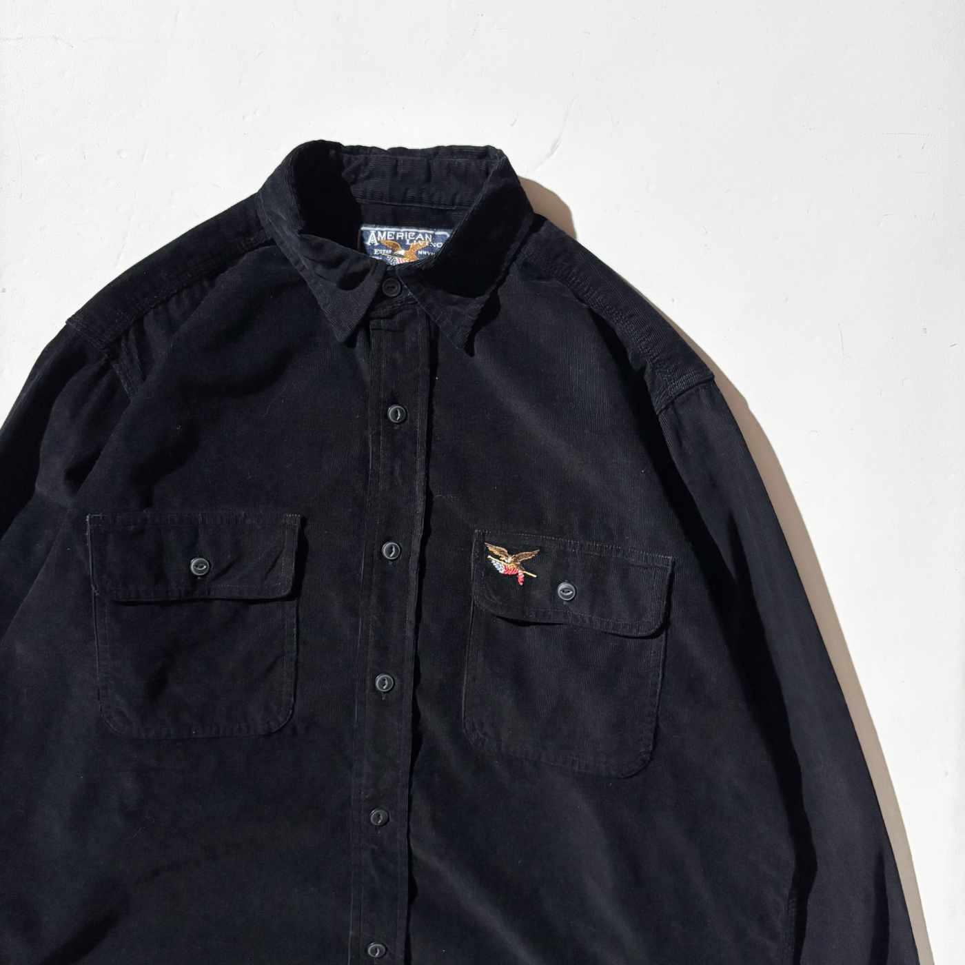 00's~ AMERICAN LIVING コットン コーデュロイ L/Sシャツ(ブラック)