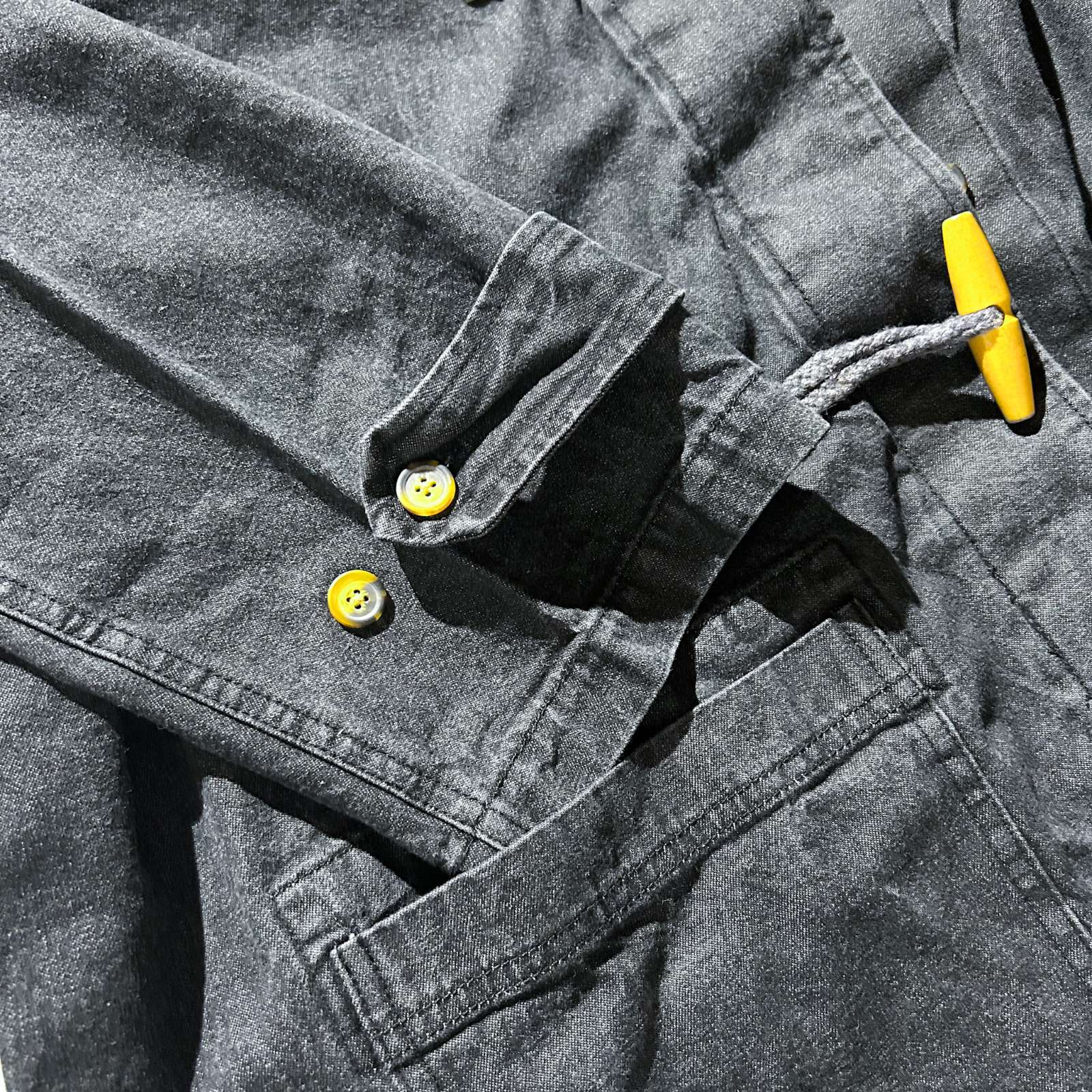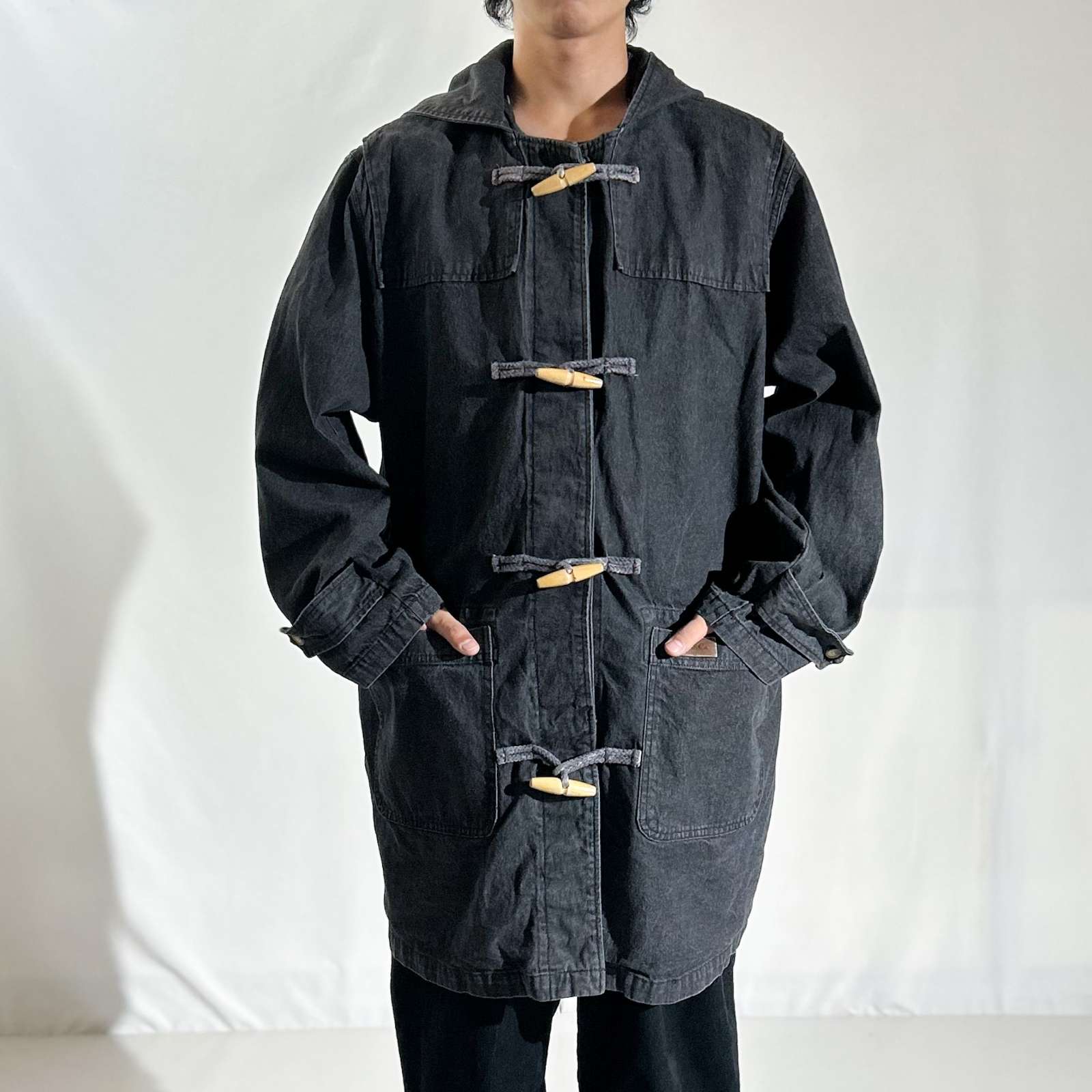 1990年代製〈DENIM & CO〉のデニムダッフルコート。 男女問わず人気の高いアイテムですが、こちらは珍しい“ブラックデニム”仕様。さらに先染めタイプなので、経年変化しやすく自分だけの雰囲気に長く楽しめます。 いざ探すと、下手なヴィンテージ以上に見つからない“グッドレギュラー”の代表格と言っても過言ではありません。 サイズは実寸XL程度で、スウェットやニットの上からでもざっくり羽織れるラフなサイズ感です。