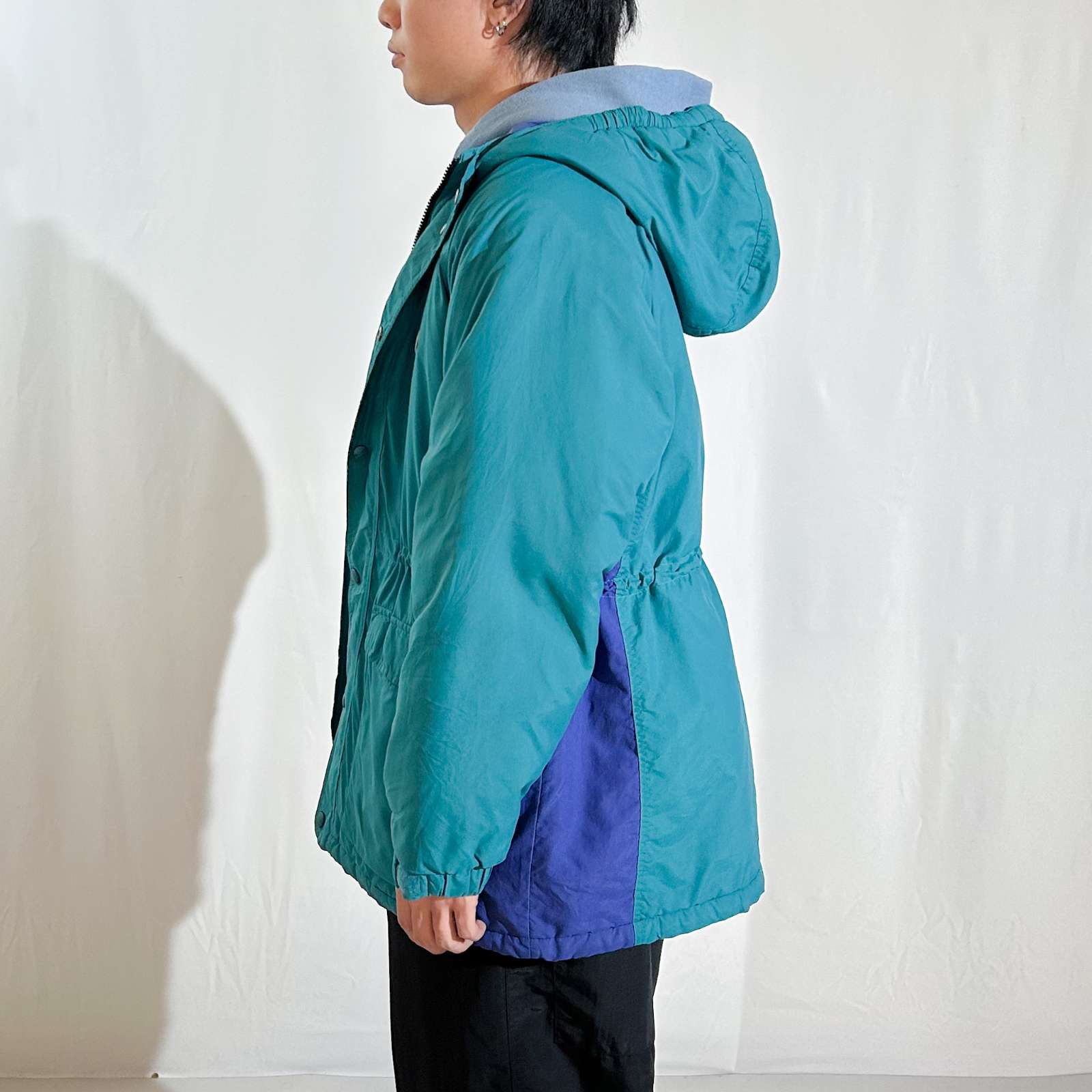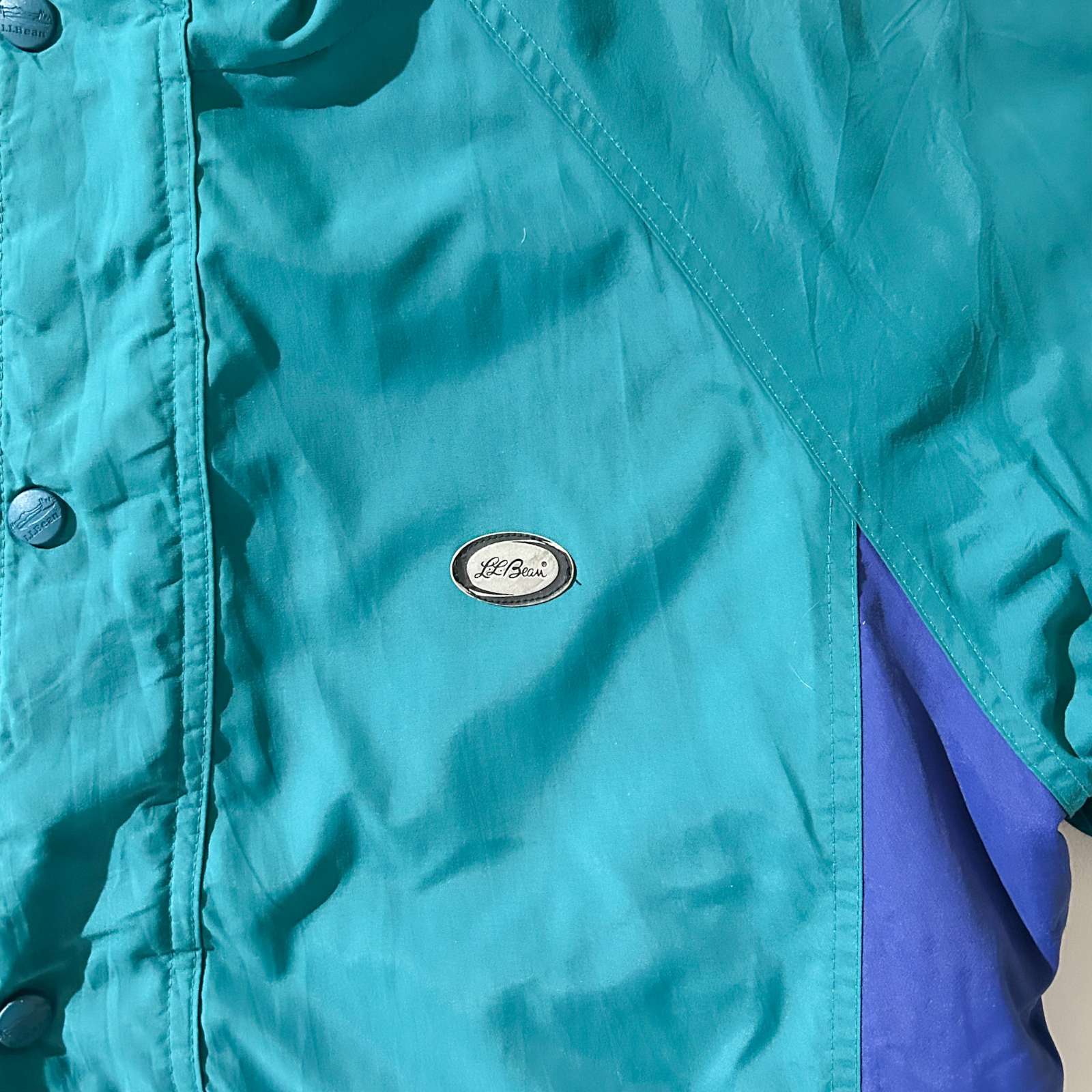 90年代頃のエルエルビーンのマウンテンジャケット。 90年代らしいエメラルドグリーンのようなターコイズブルーのような色味が特徴的。BOYS表記ですが、しっかり袖丈も足りて身幅もゆったりしたサイズ感でした。アメリカの子供はおっきいなぁ…。