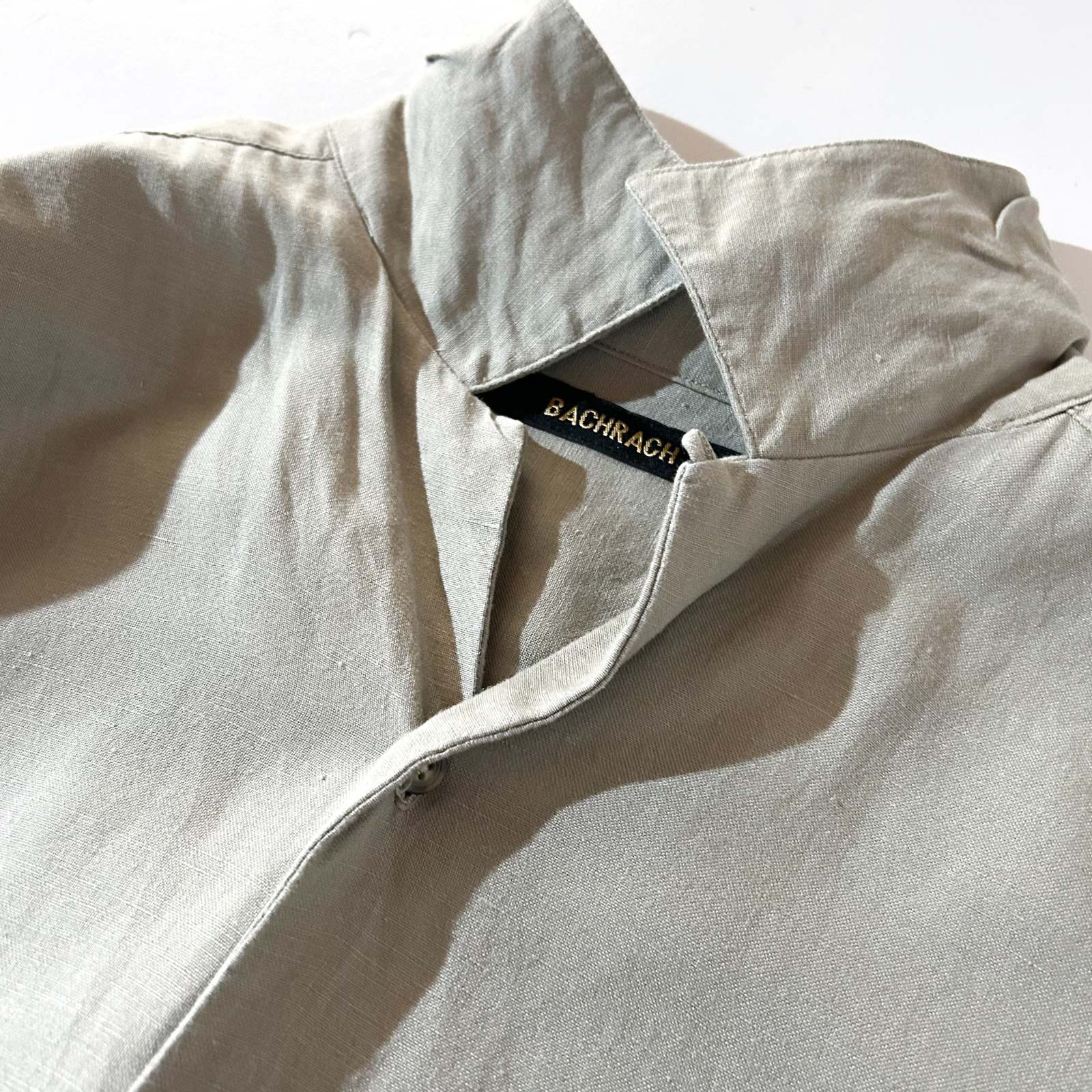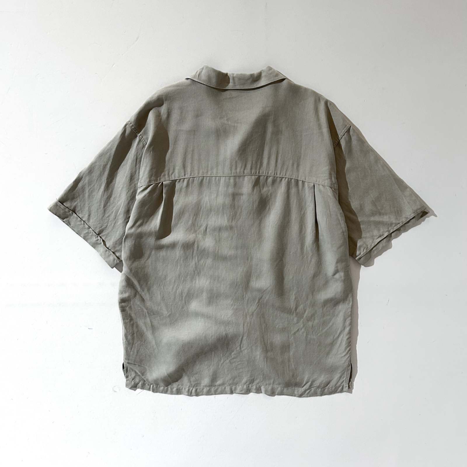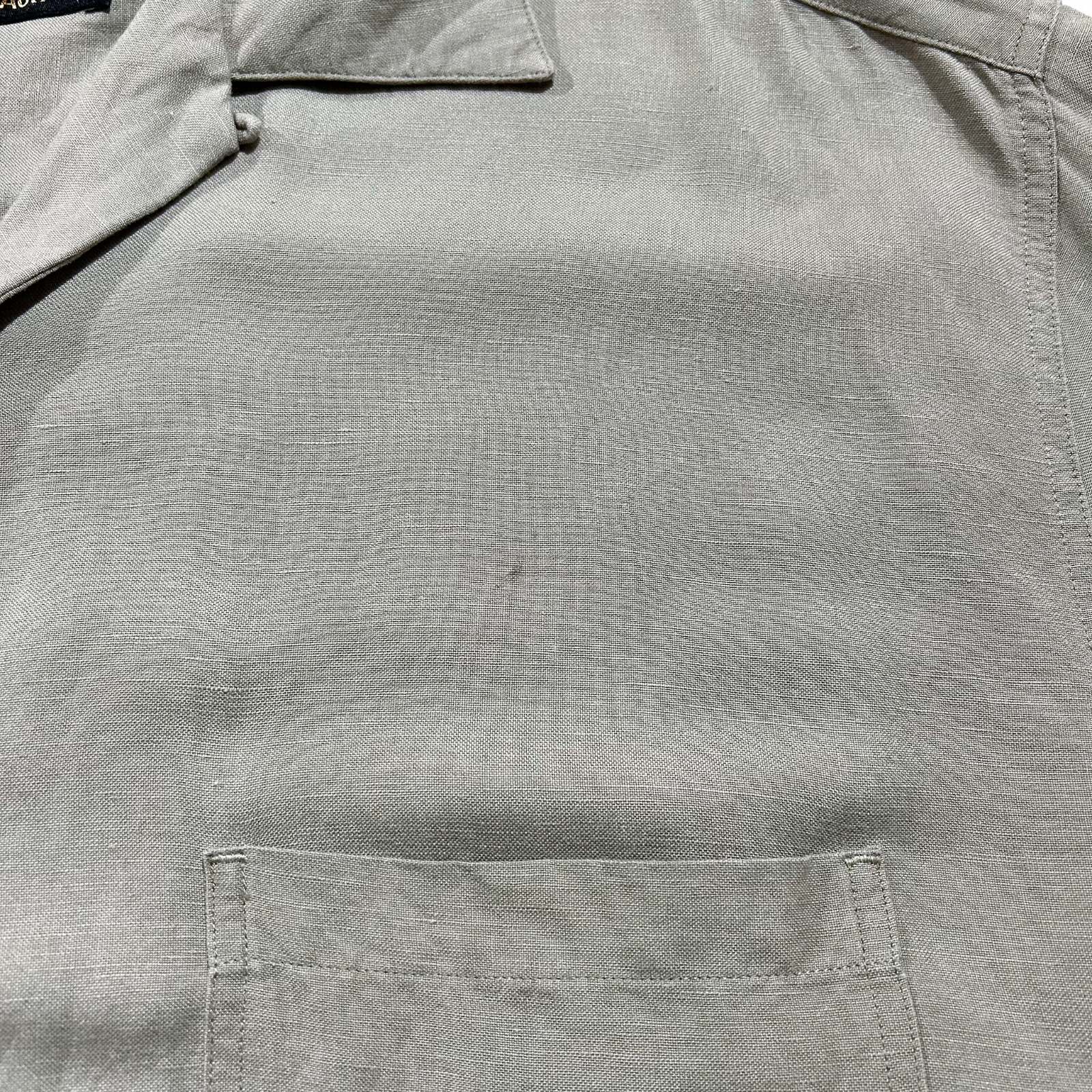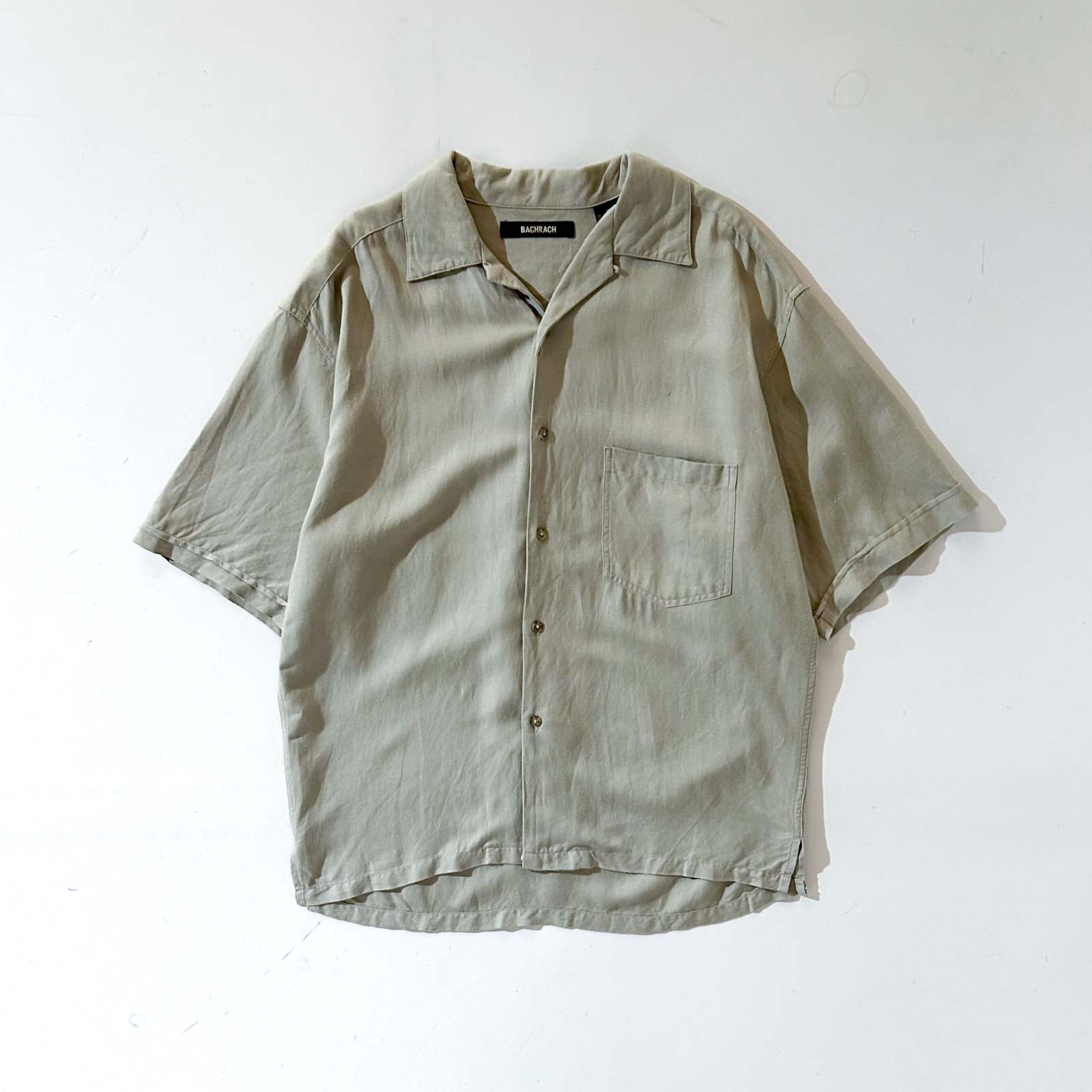 00's BACHRACH リネン×レーヨン オリーブ 無地 オープンカラー S/Sシャツ