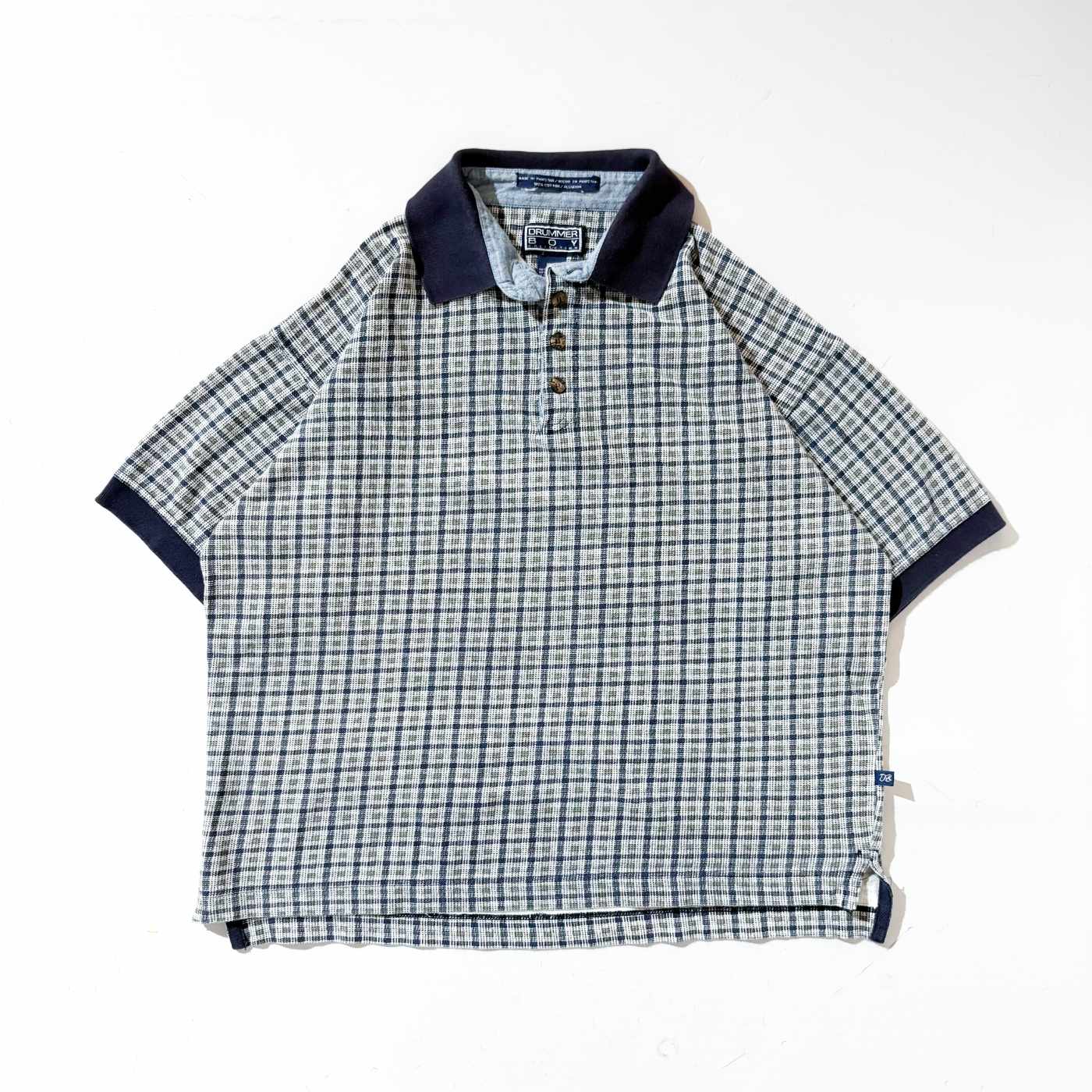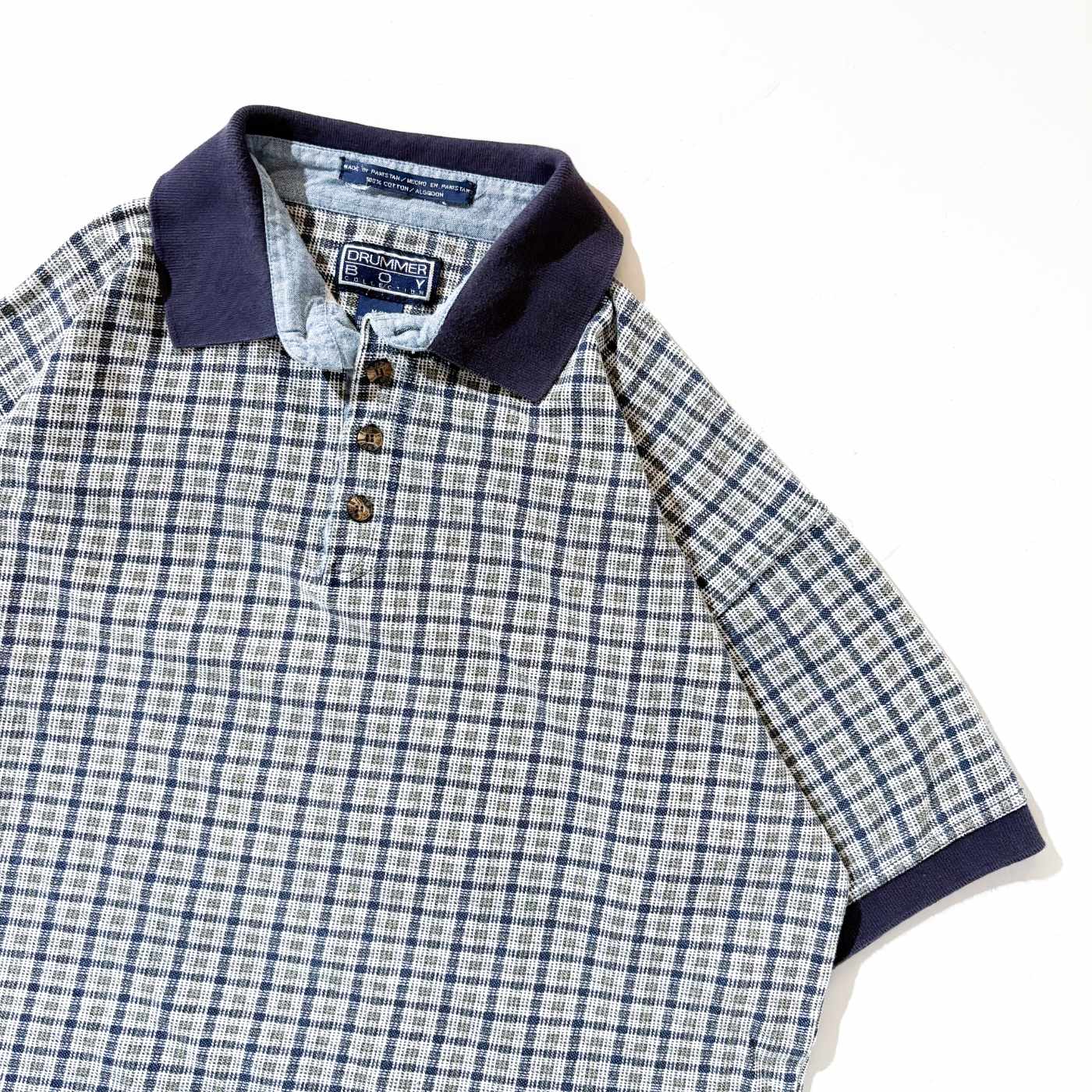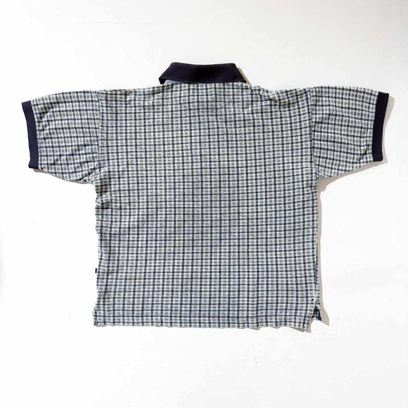 00年代 チェック柄 ブルー 青 半袖ポロシャツ