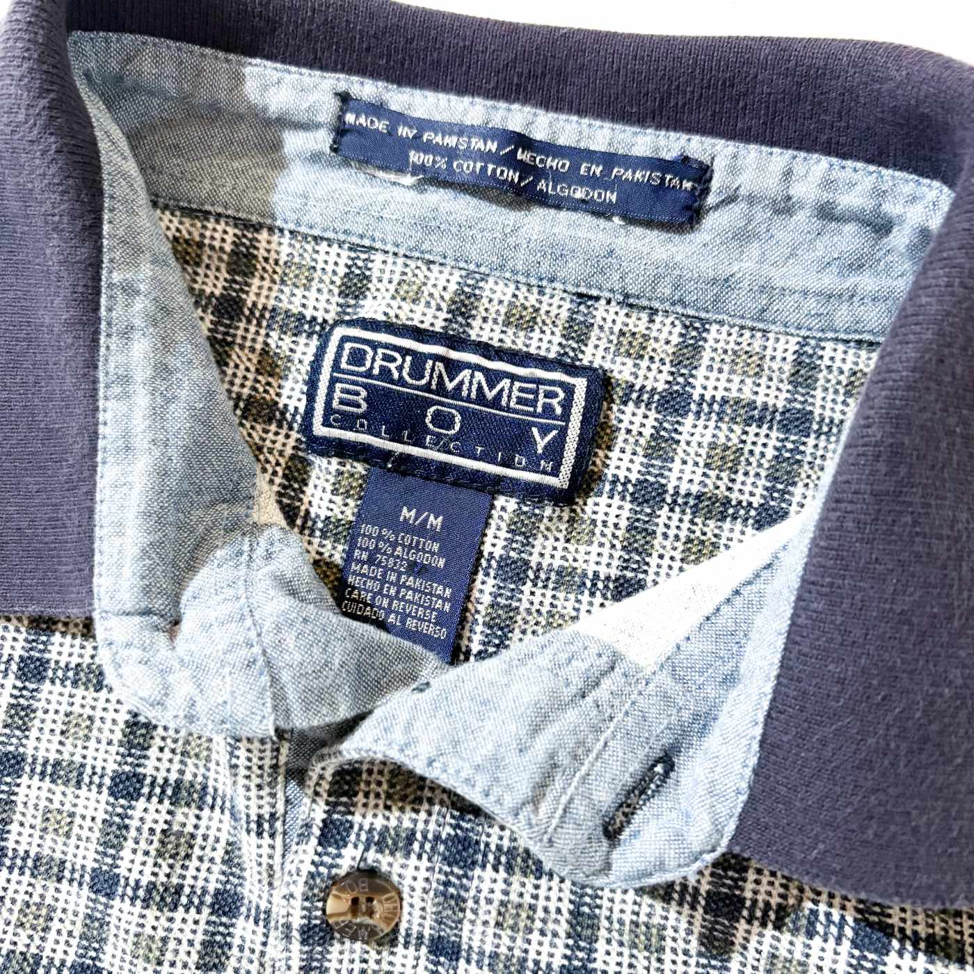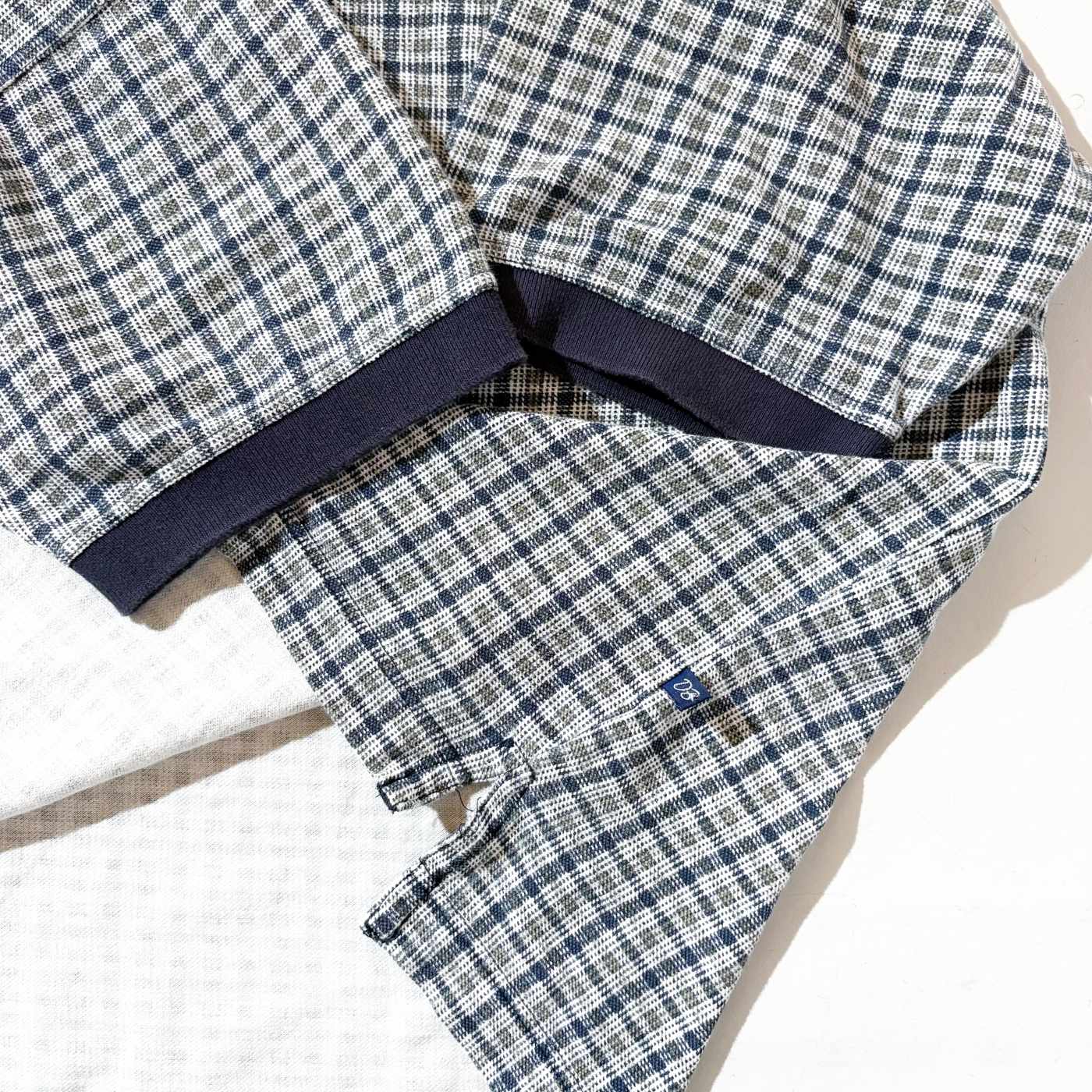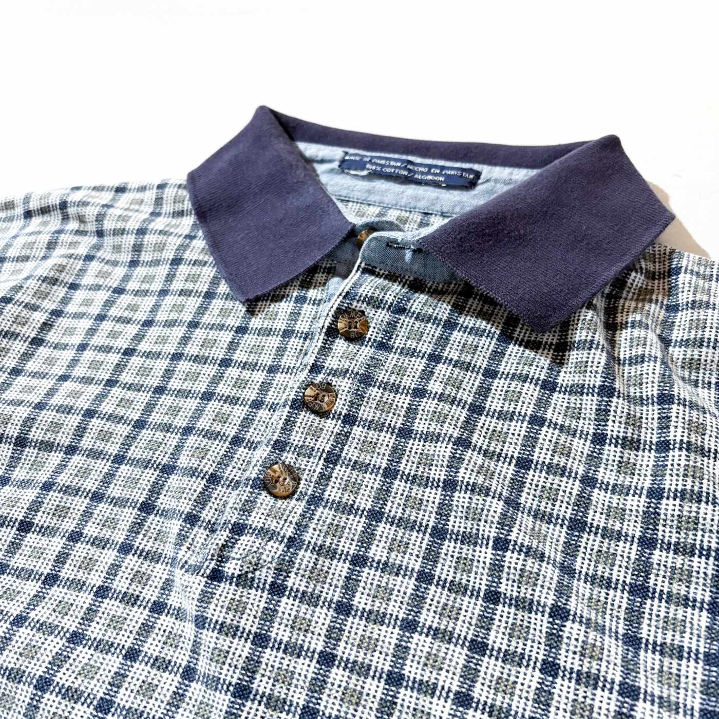 00年代 チェック柄 ブルー 青 半袖ポロシャツ
