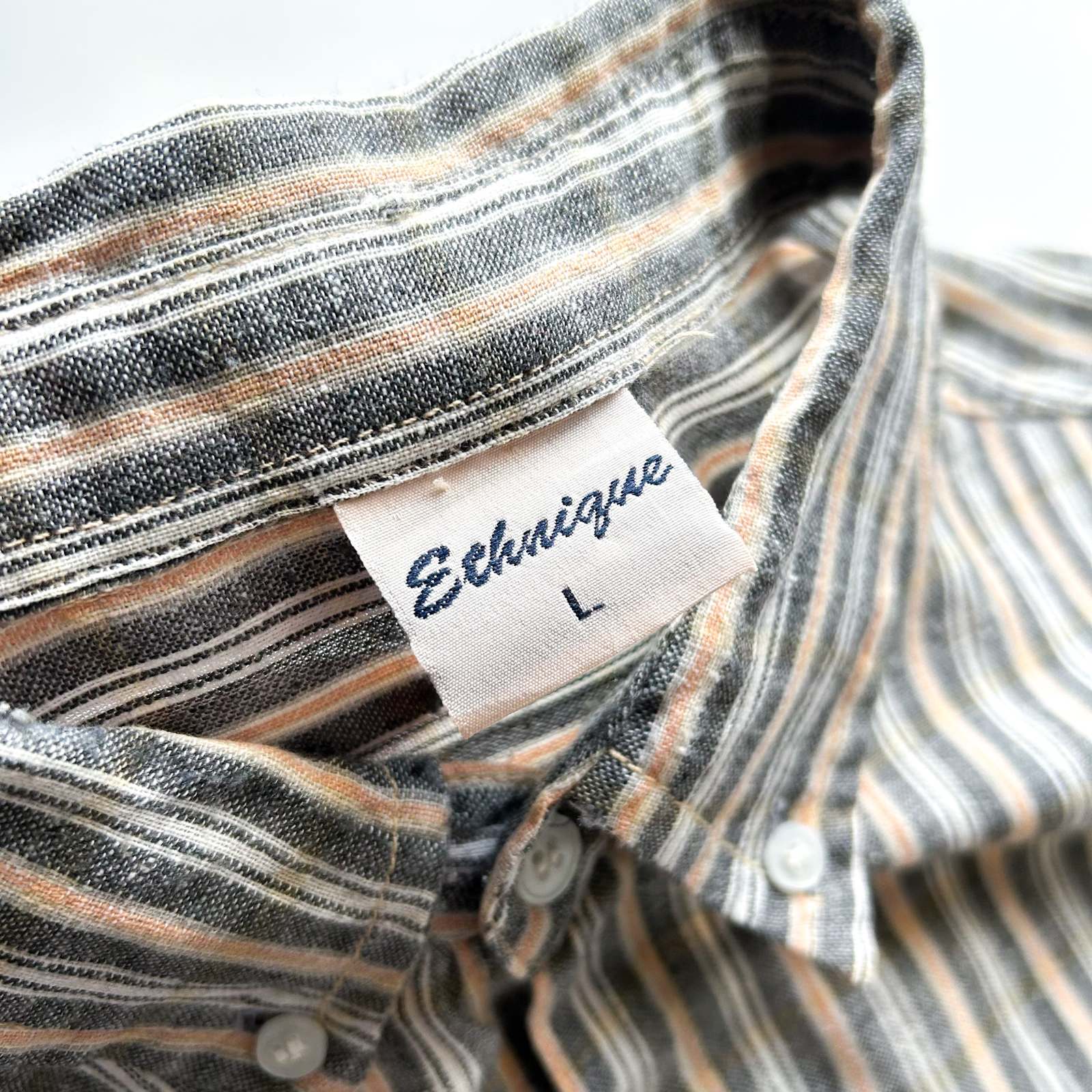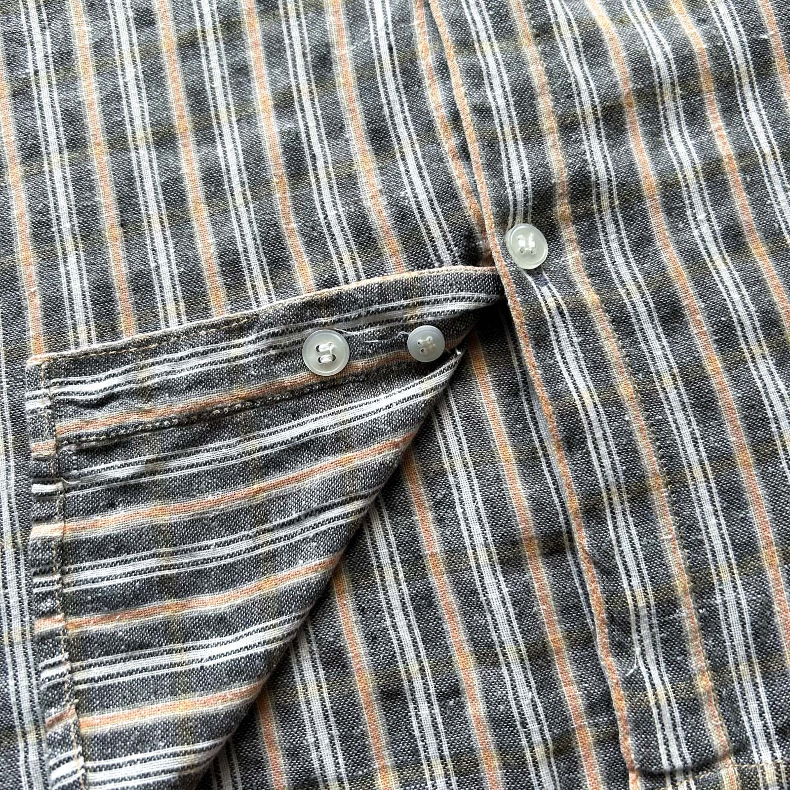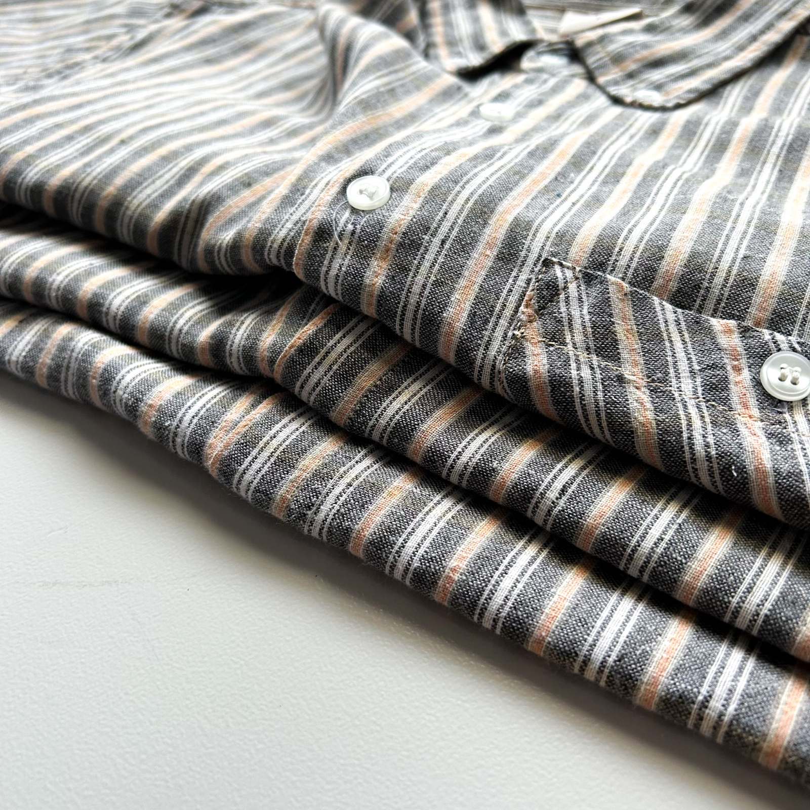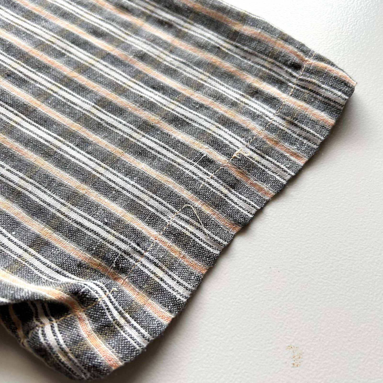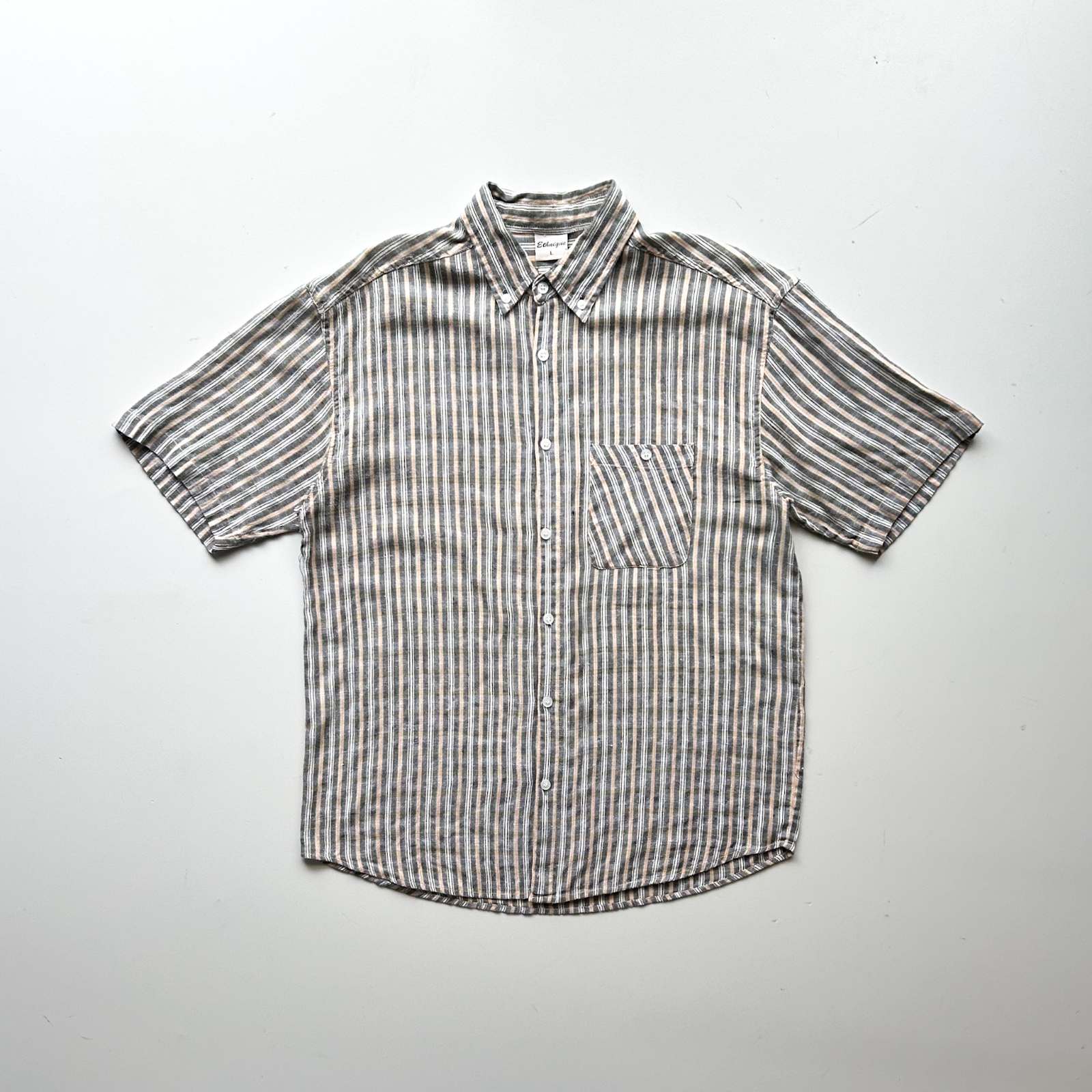 90's~ インドコットン×リネン ストライプ ボタンダウン S/Sシャツ
