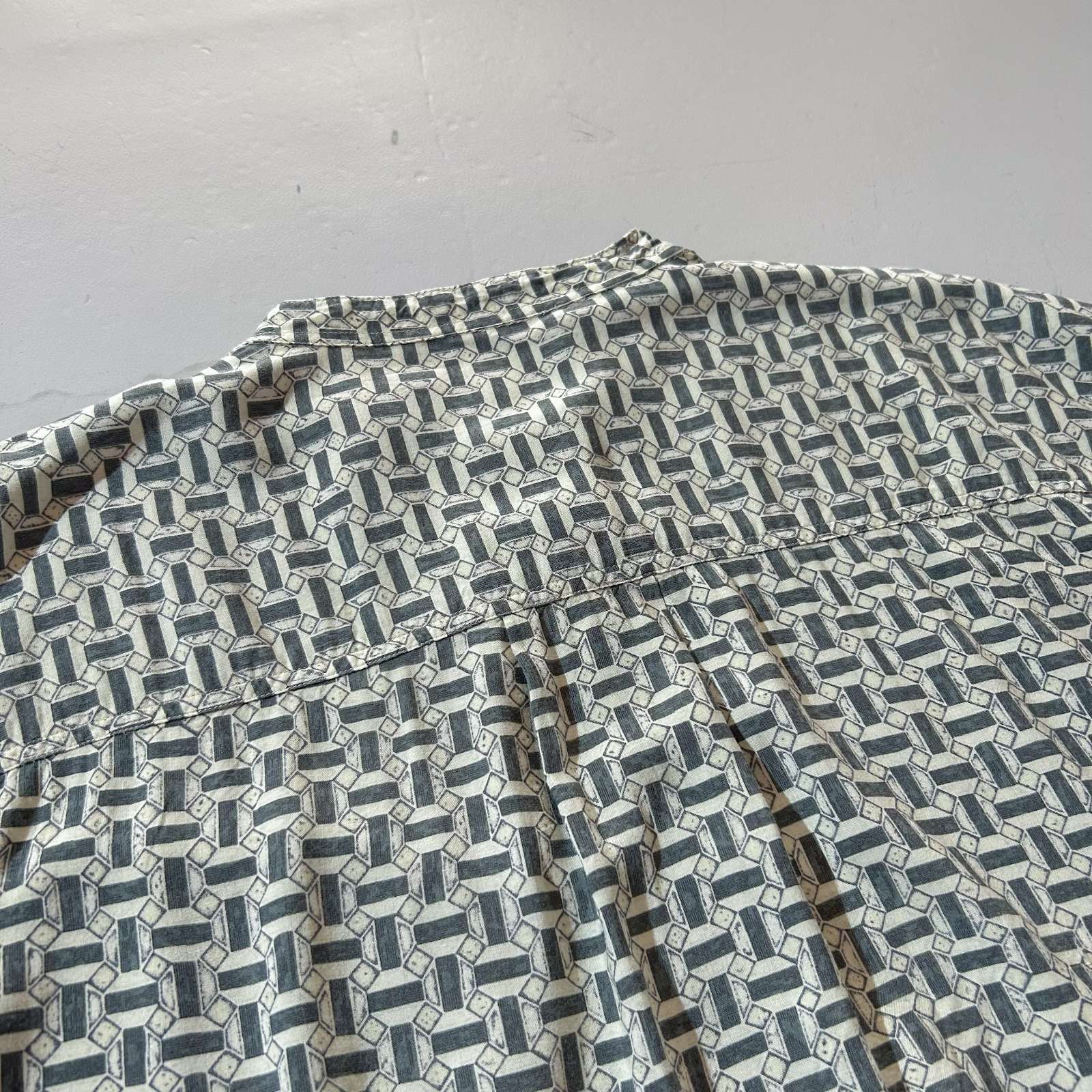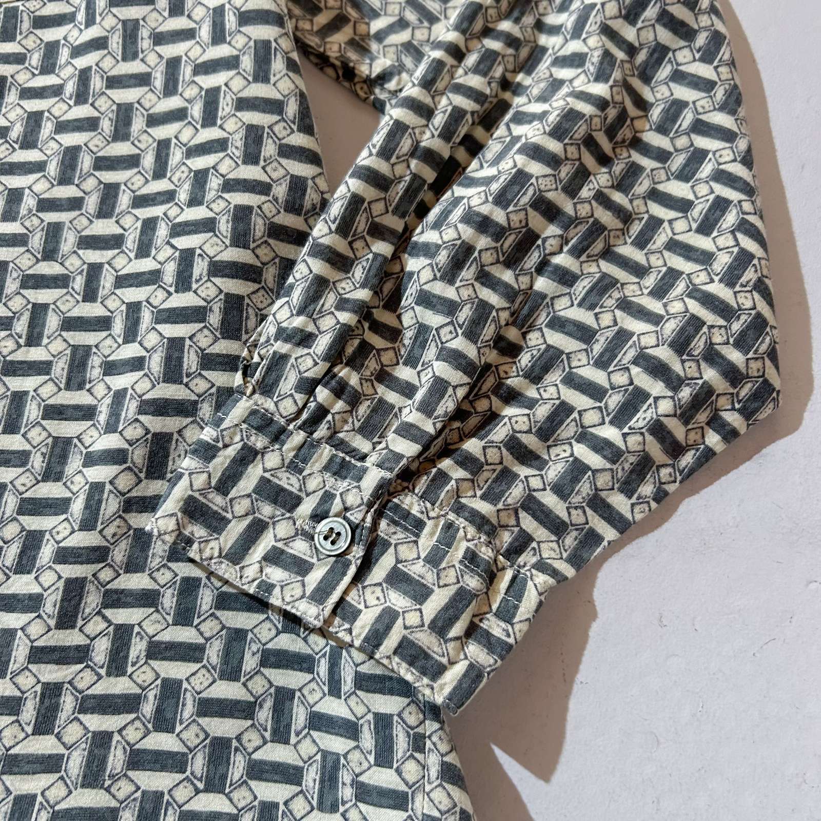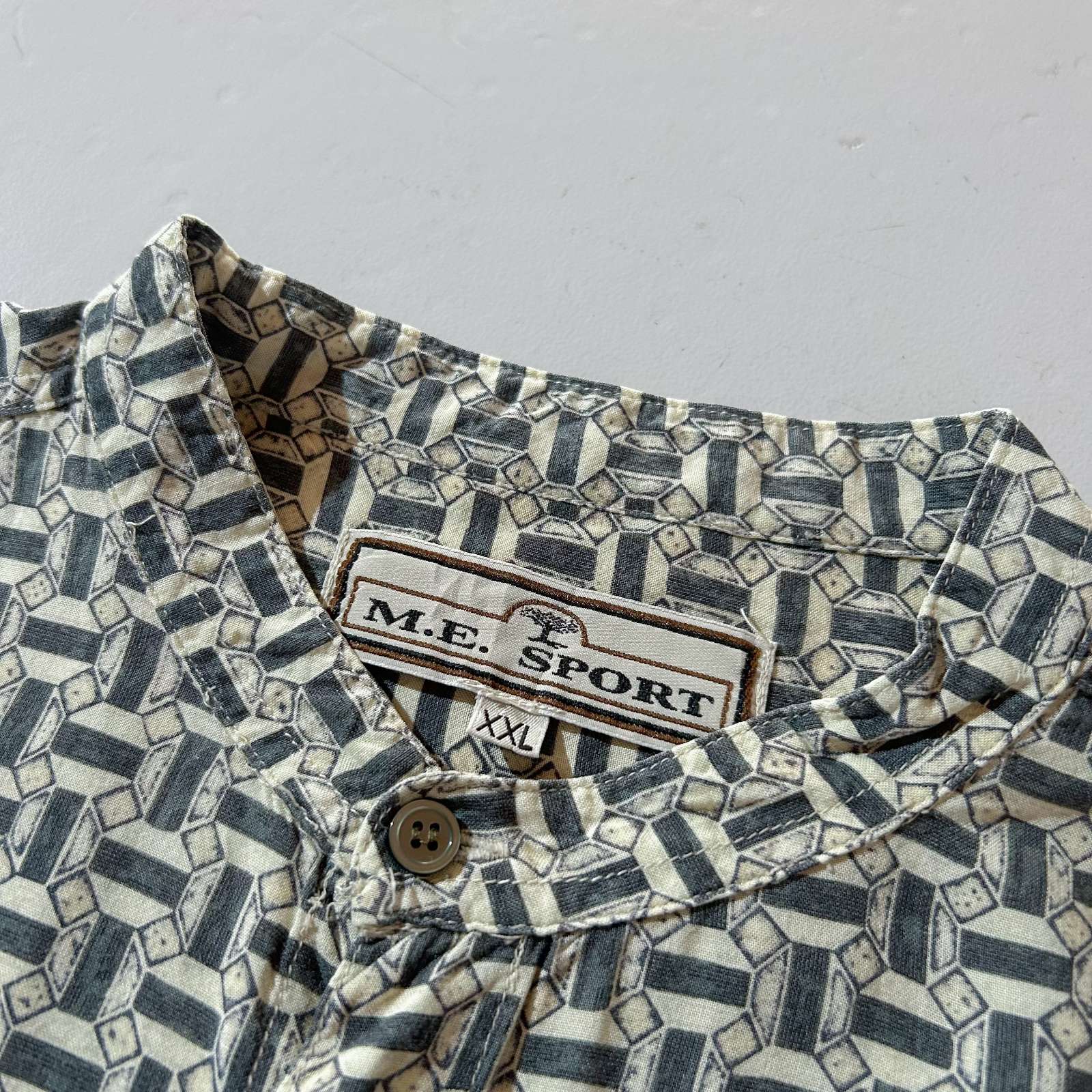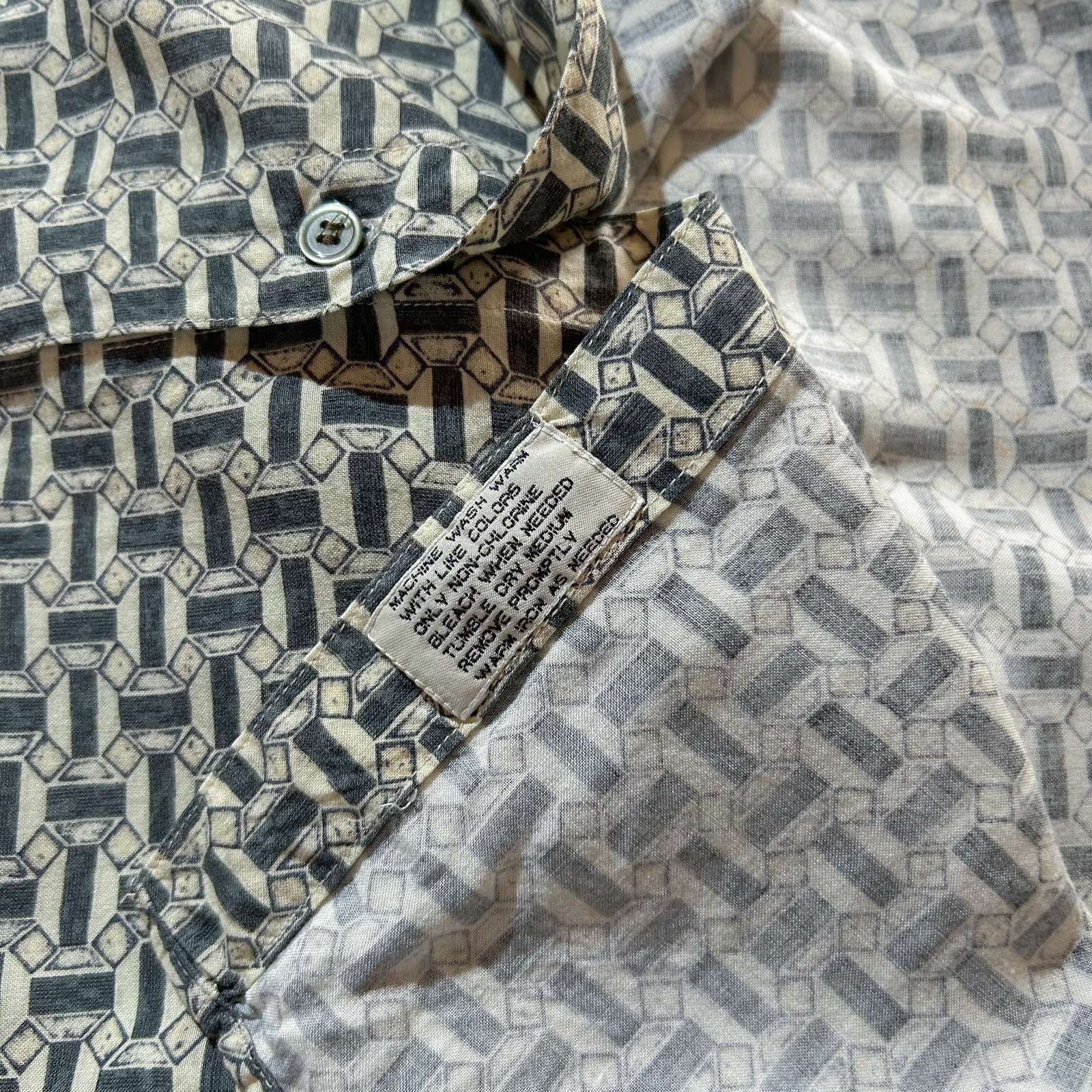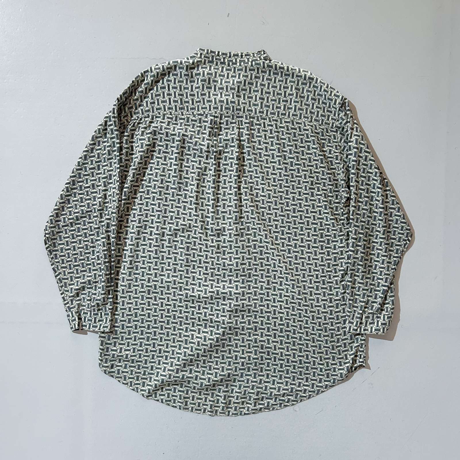 80's M.E.SPORT 総柄 レーヨン バンドカラー L/S シャツ