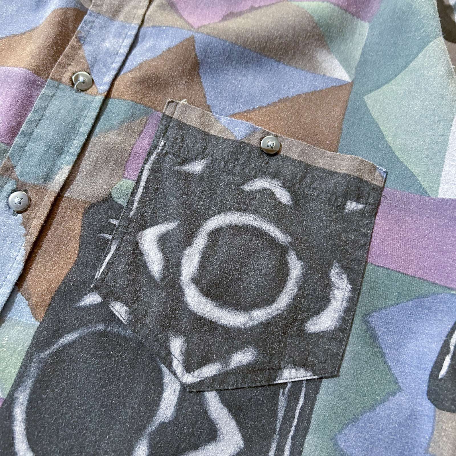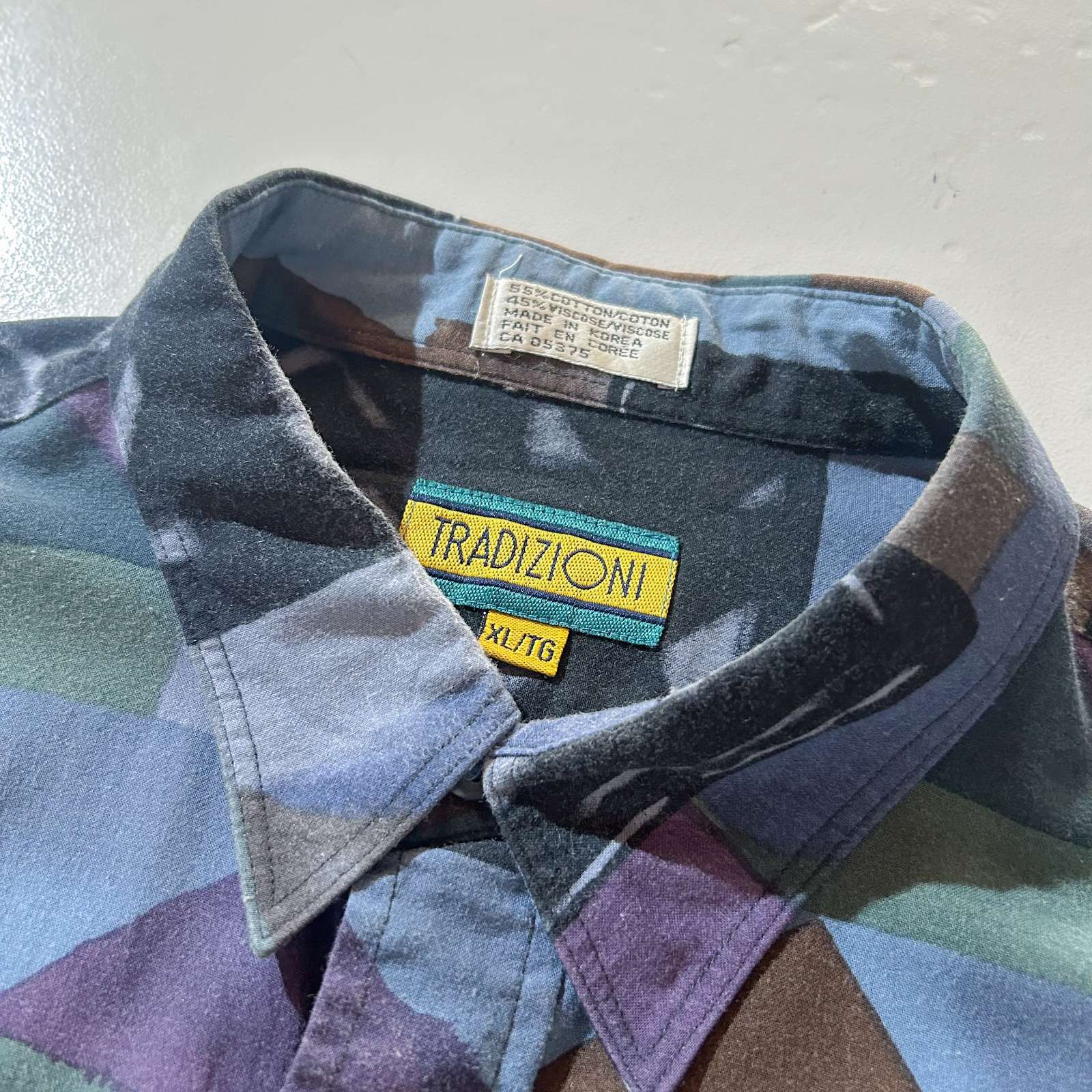 80's TRADIZIONI 総柄 デザイン レーヨン L/S シャツ