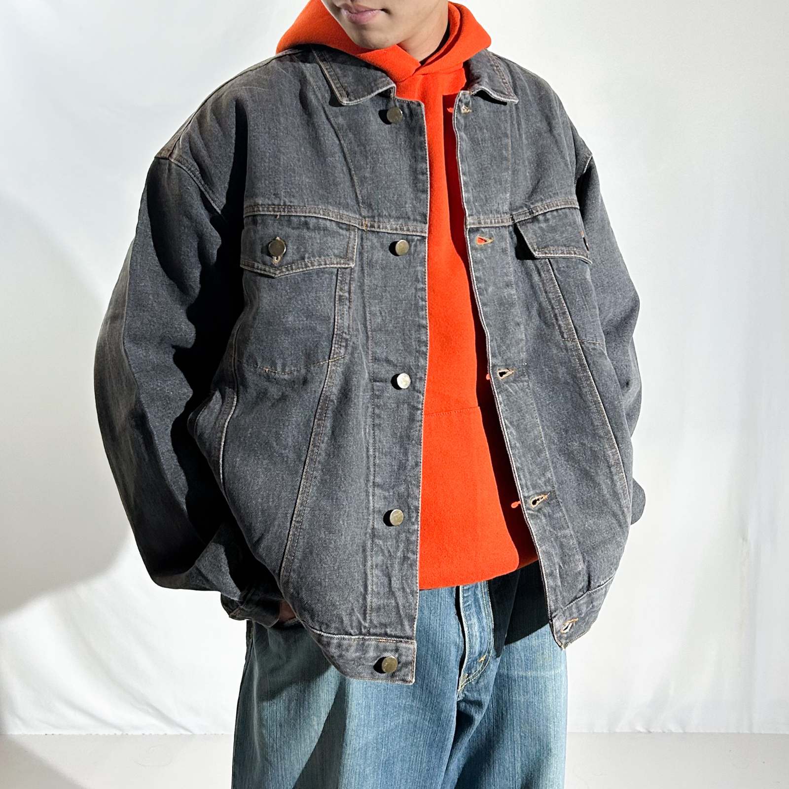 90's~ "made in ITALY" 先染め ブラック デニム ジャケット