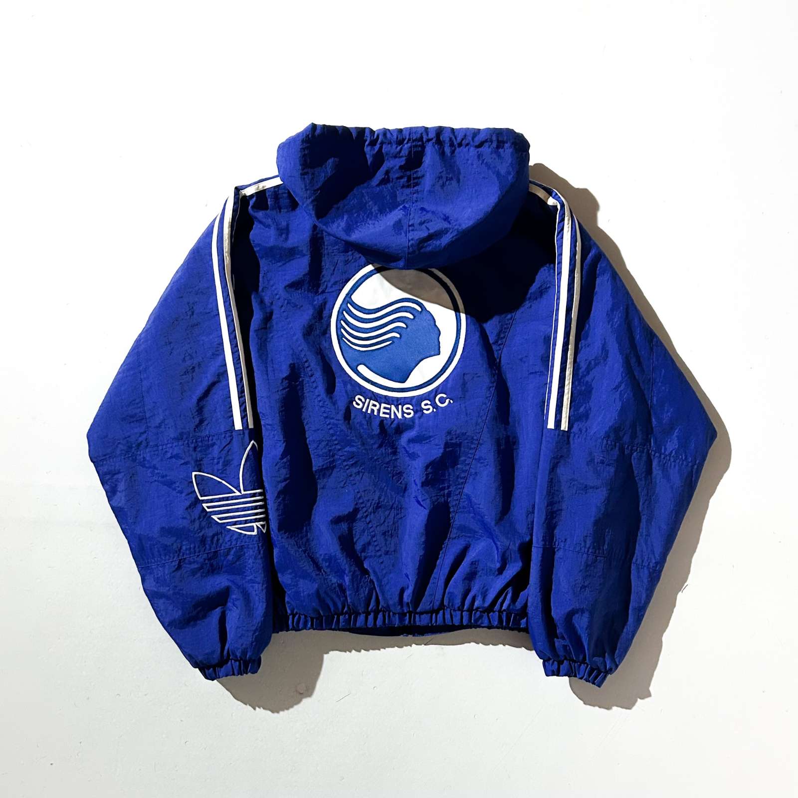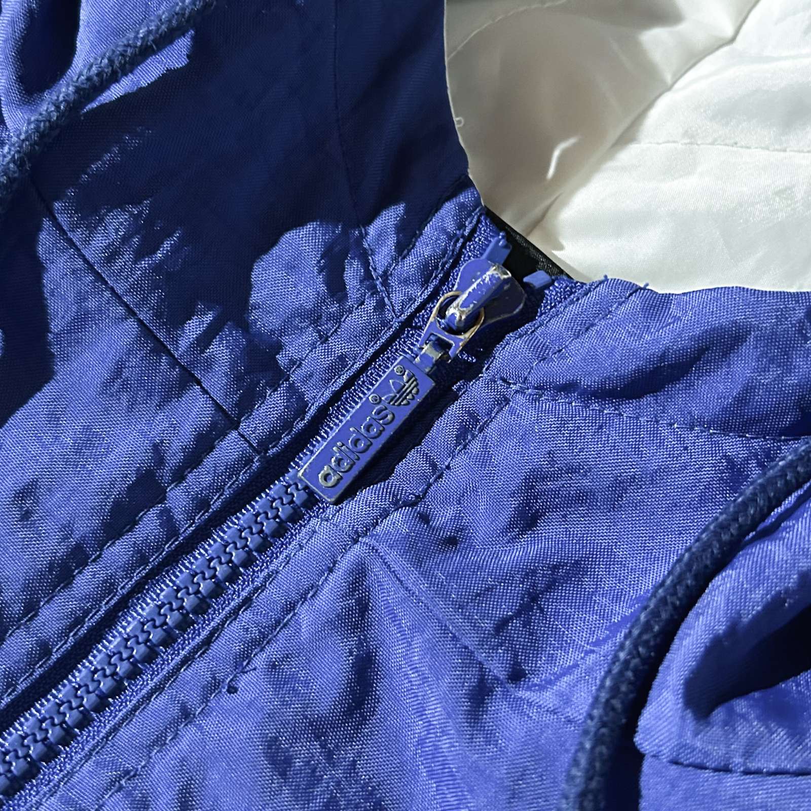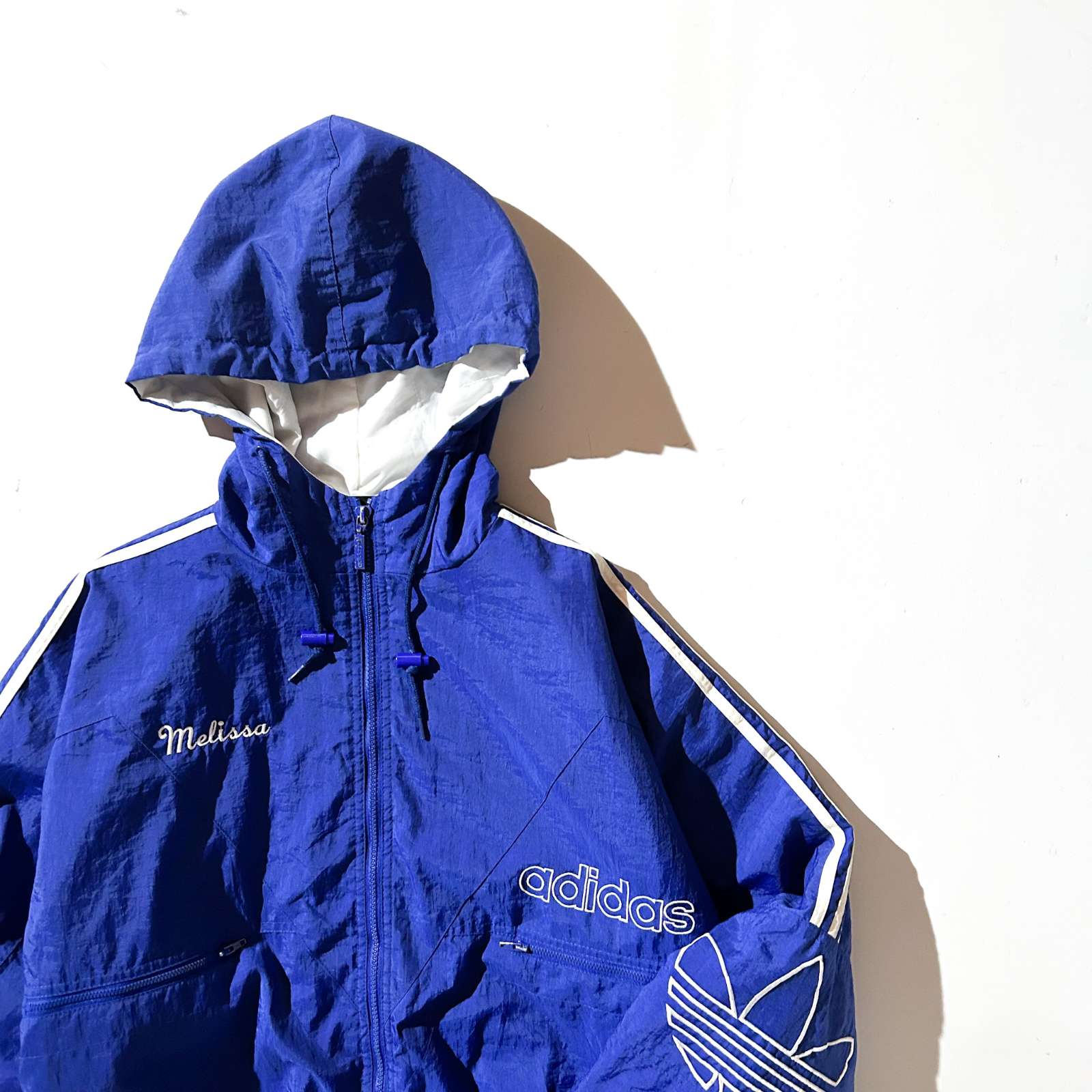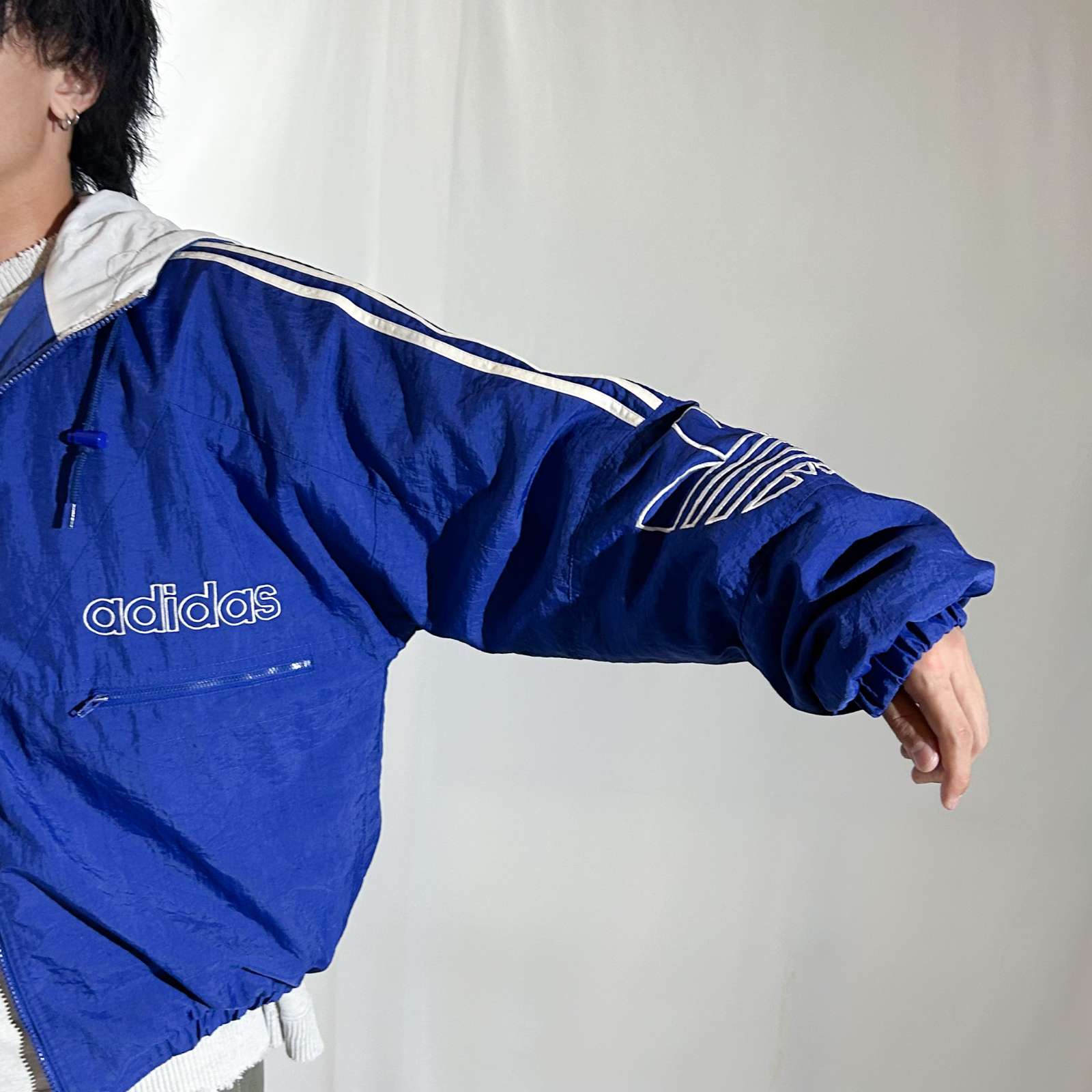 90's adidas 裏キルティング フーデッド ナイロン シェル ジャケット(ブルー)