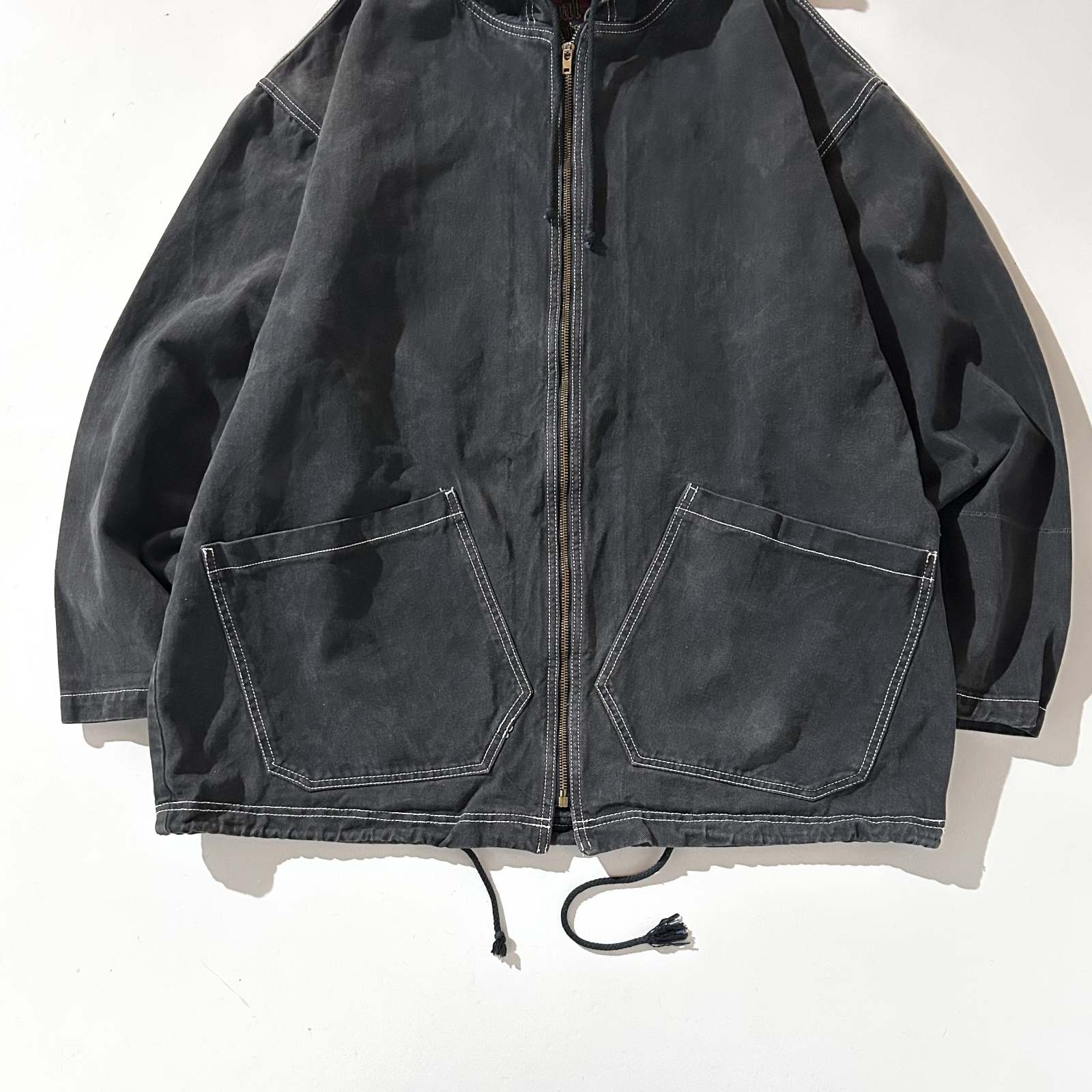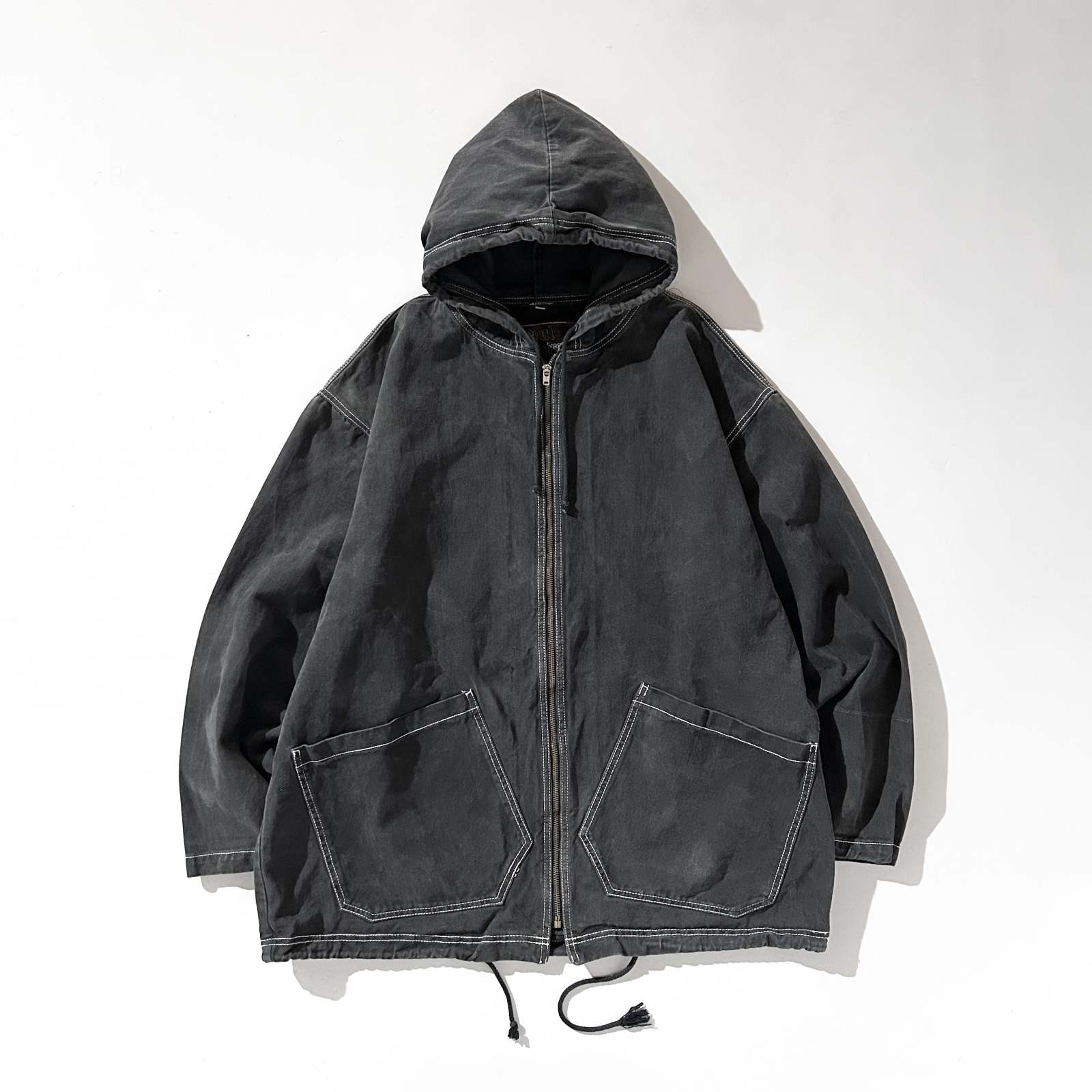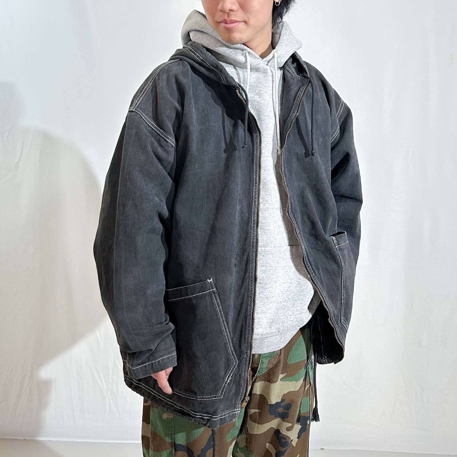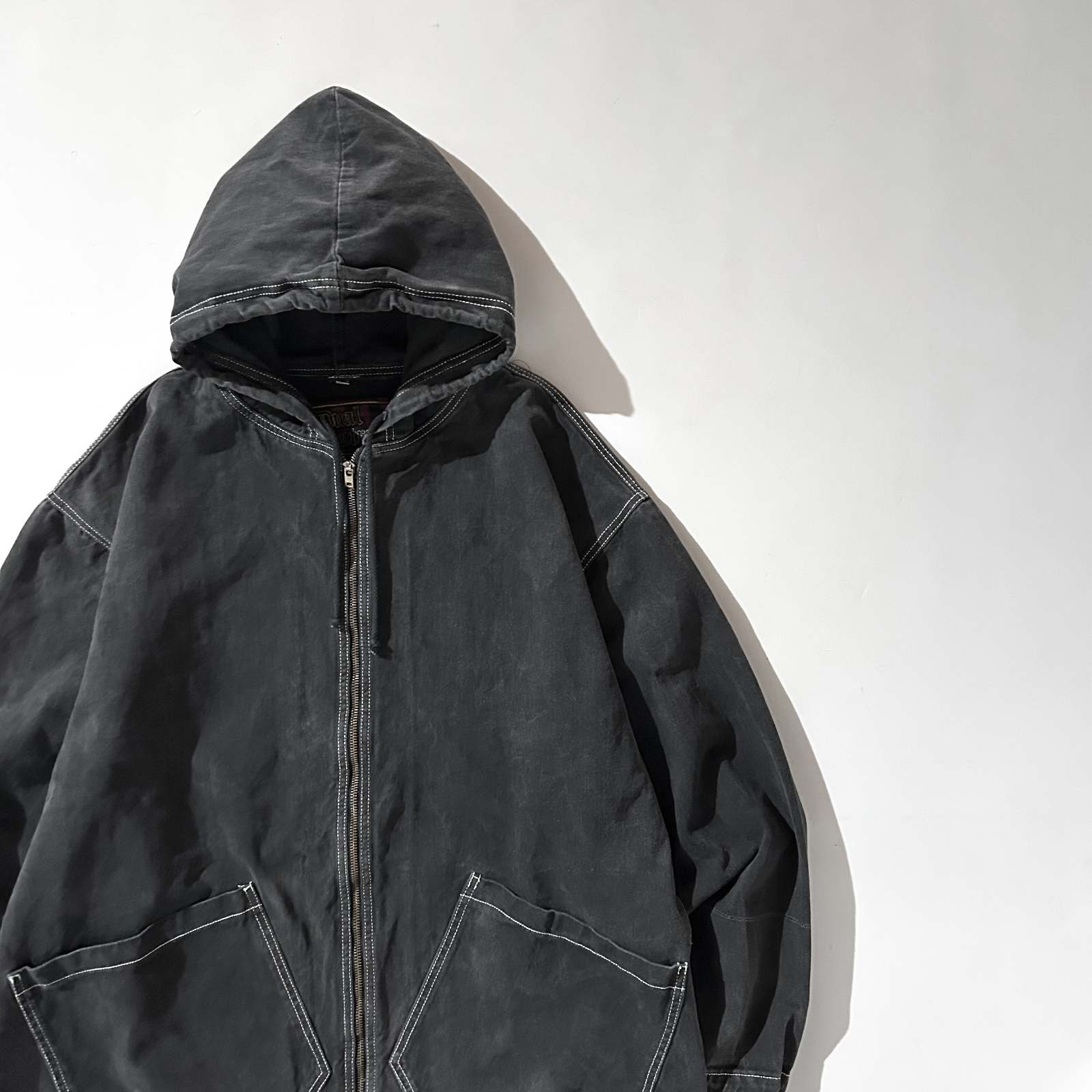 90's~00's Dual Control ブラックデニム フェード フーデッド ジャケット